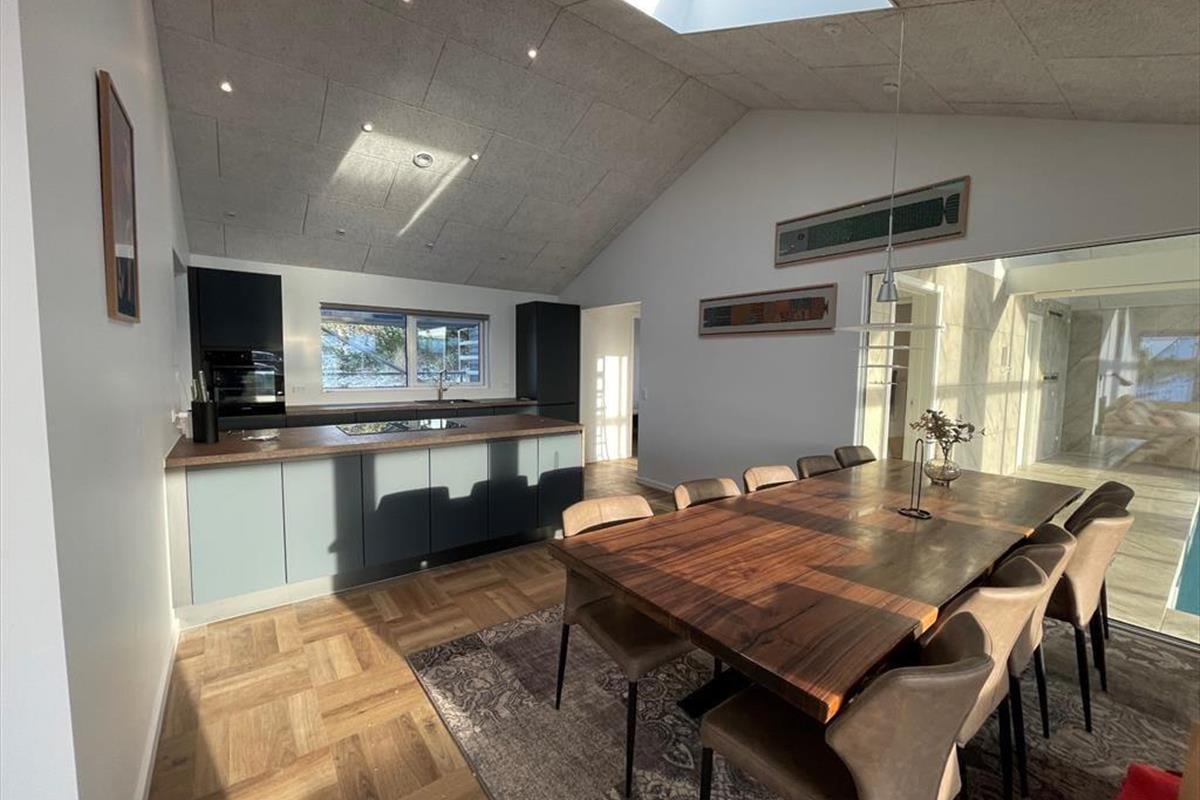 Der Traum von einem Urlaub, bei dem wirklich alle dabei sein können – ohne auf Luxus, Ästhetik und echtes Feriengefühl zu verzichten – wird im Ferienhaus in Mågedalen 20 A Wirklichkeit. Dieses neu gebaute Pool-Ferienhaus aus den Jahren 2025/2026 vereint modernen Komfort, durchdachte Barrierefreiheit und exklusive Wellnessmomente in perfekter Harmonie.