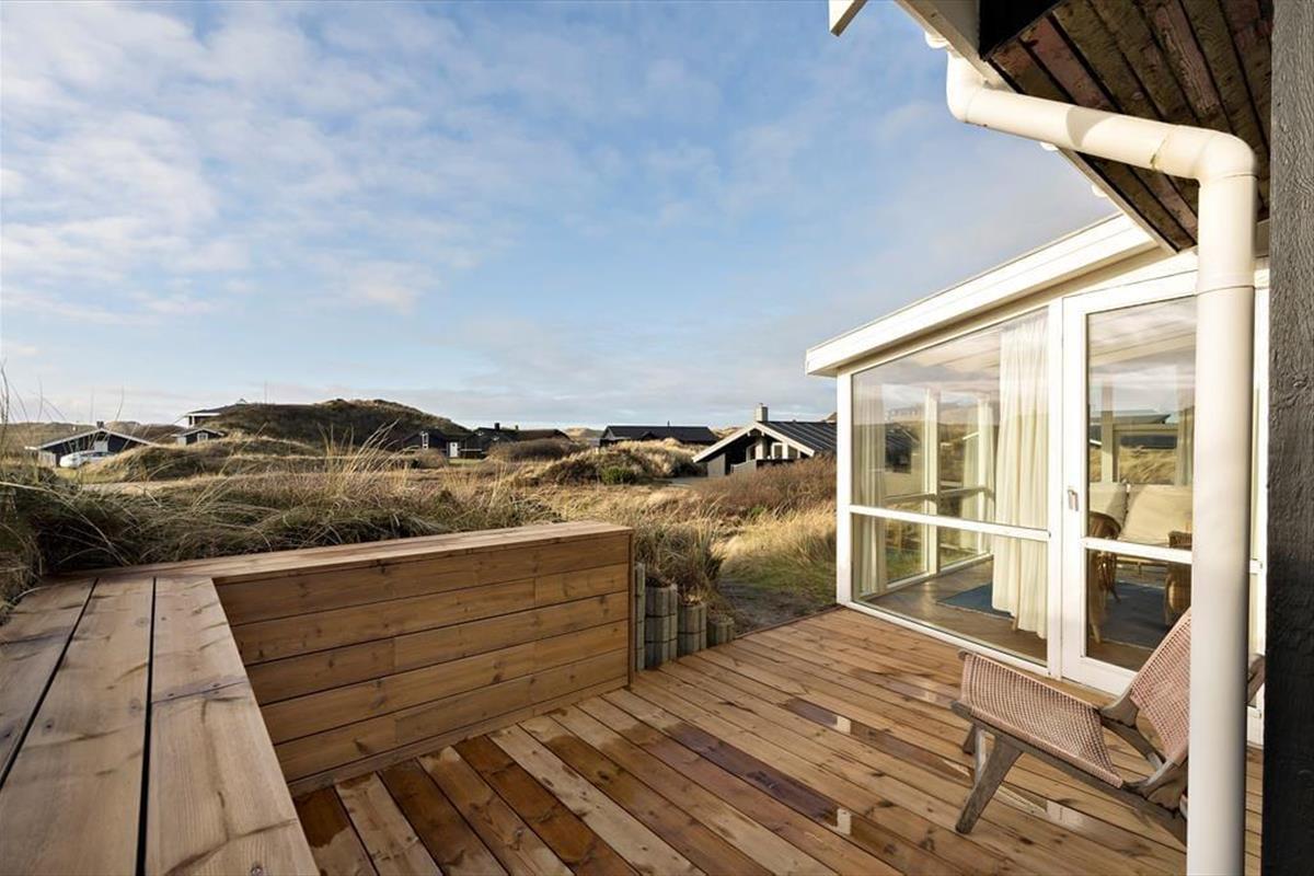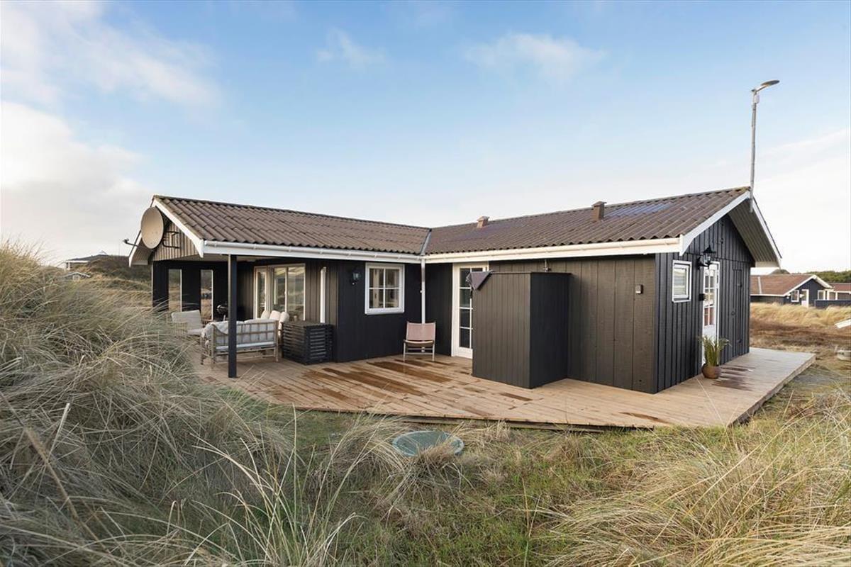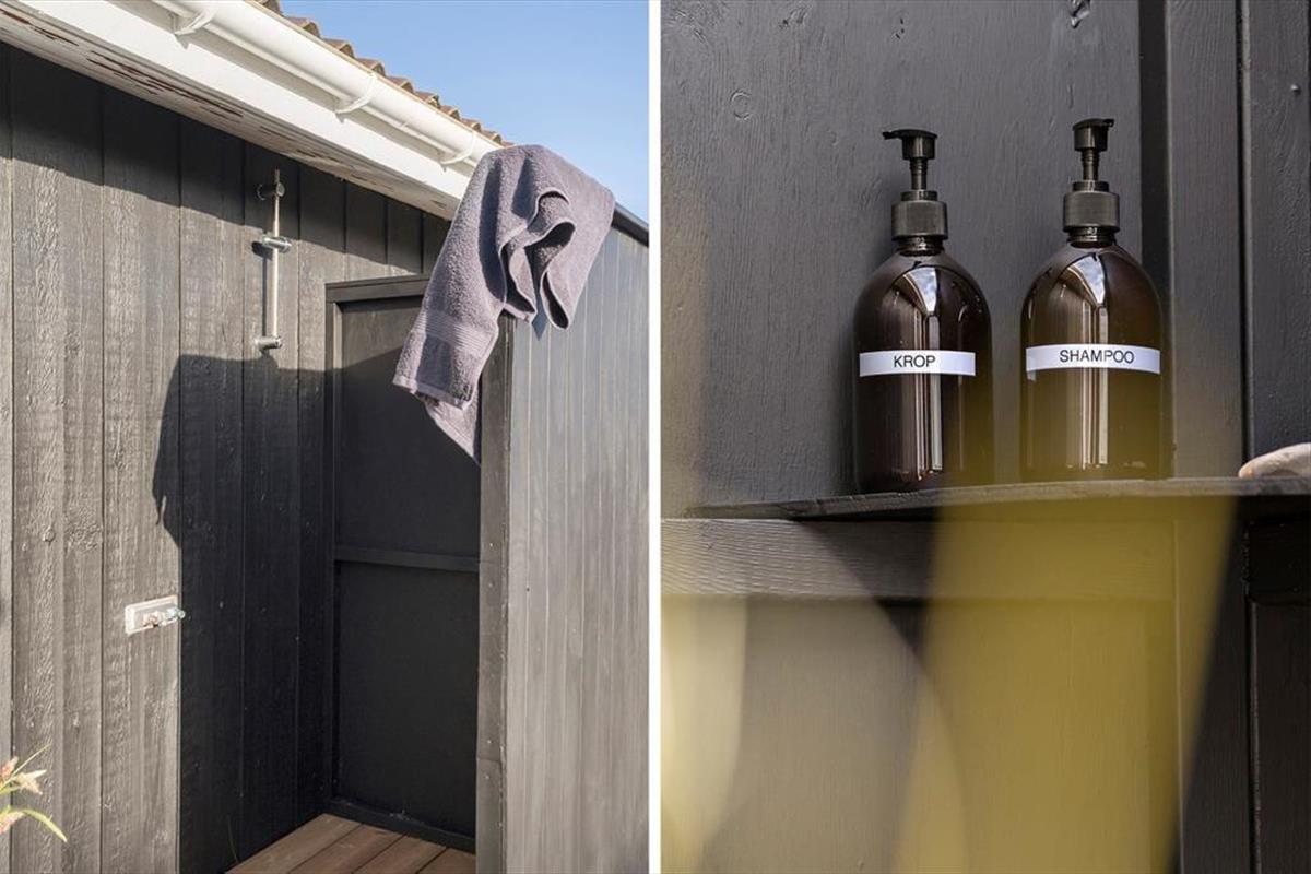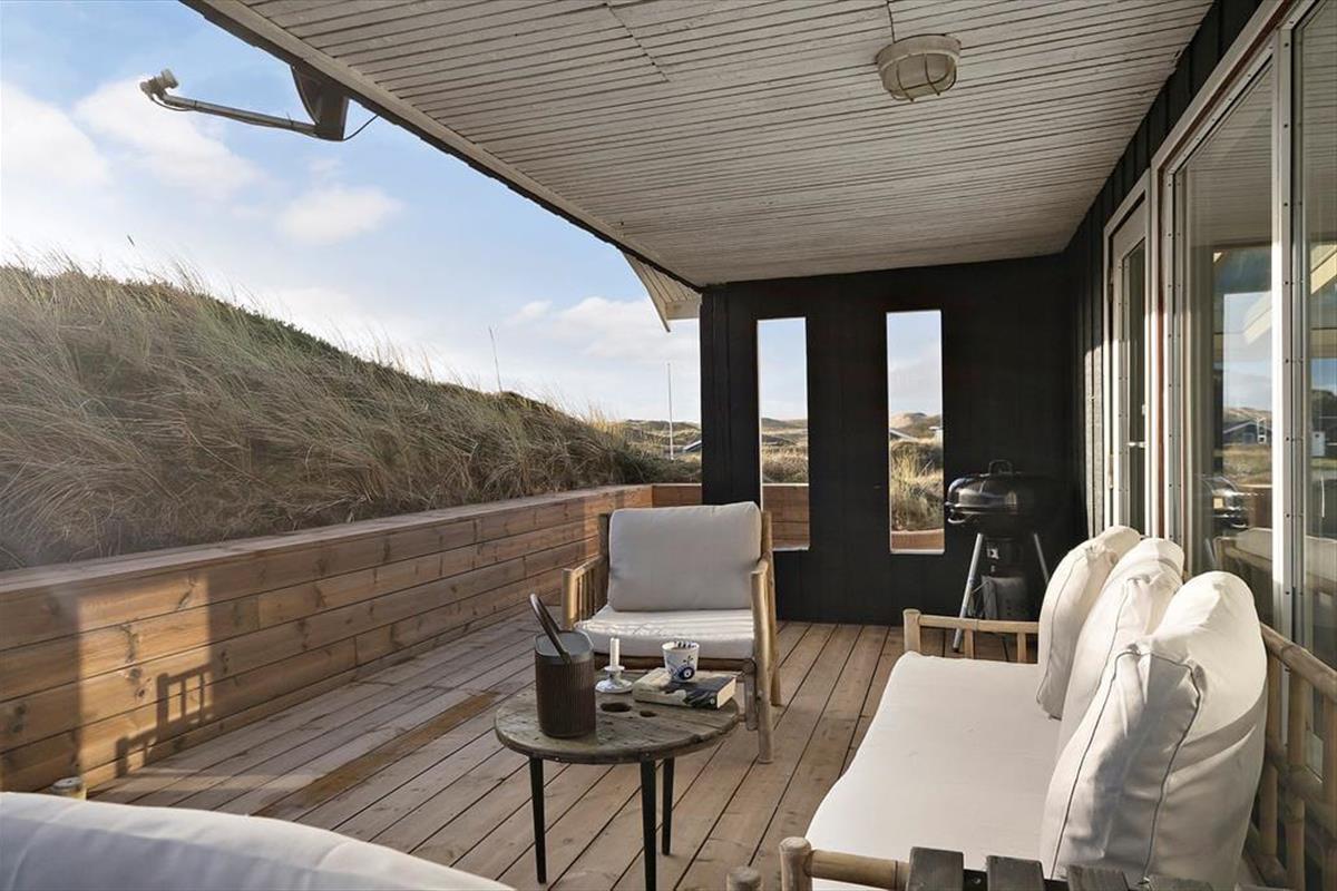Mågedalen 34 bietet fantastisches Freiluft-Befinden mit seiner riesigen Holzterrasse, die sich südlich des Ferienhauses erstreckt. Hier kannst du Sonnenbaden, den neuesten Krimi lesen oder einfach den Blick auf die Natur und die ruhige Dünenlandschaft genießen. Dadurch das die Terrasse teilweise überdacht ist, kannst du dich auch bei reichlich Sonne oder aufziehendem Regen geschützt an der frischen Luft aufhalten. An den Abenden ist es schön unter freiem Himmel zu grillen, und zum Sonnenuntergang bist du mit einem kurzen Spaziergang am Strand, während die Sonne langsam im Westenmeer versinkt. Das große Naturgrundstück rund um das Ferienhaus bietet Platz für Spiel und Entspannung im Freien. Ein besonderes Extra ist die Außendusche. Nach einem Tag am Strand oder einem Sonnenbad im Garten kannst du schnell mal eine erfrischende Dusche nehmen - wunderbar eingerichtet, um Natur und Komfort zu verbinden.