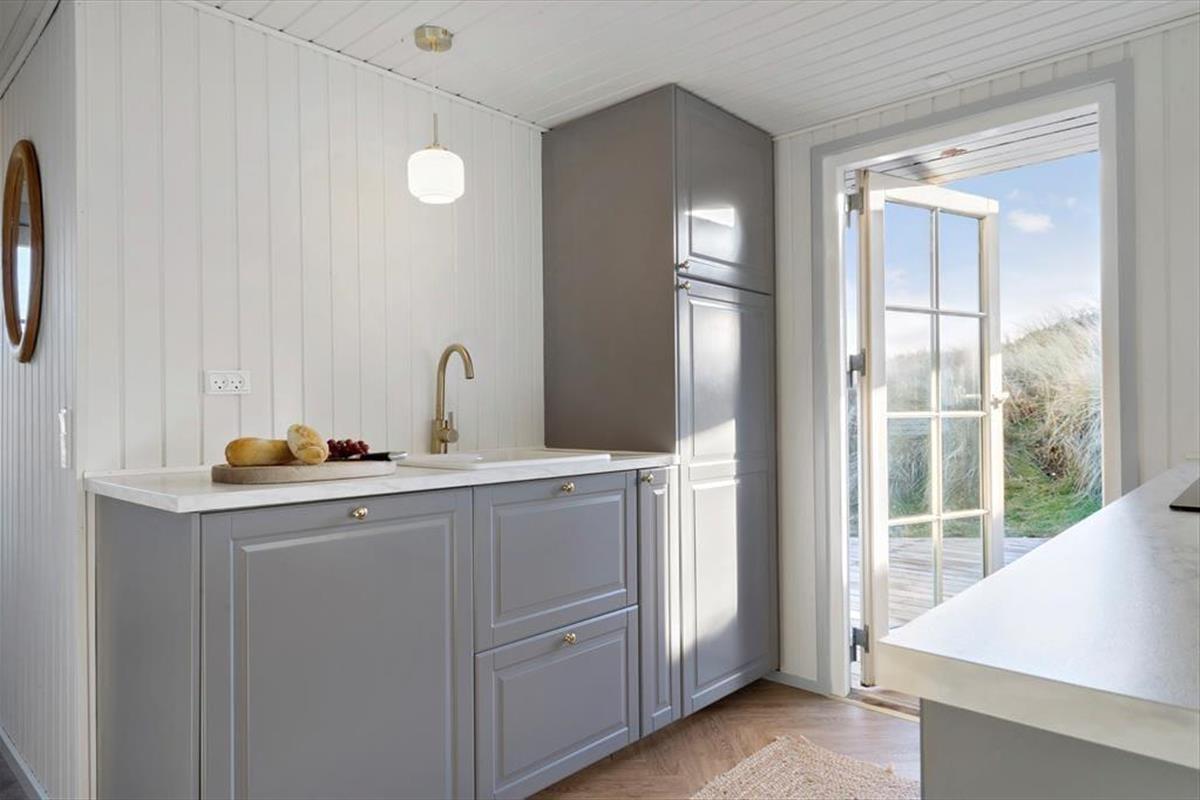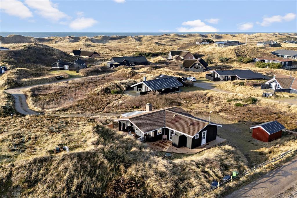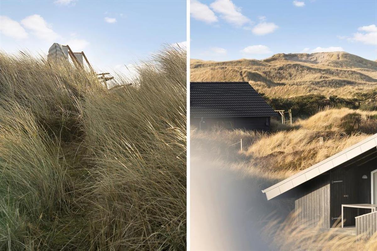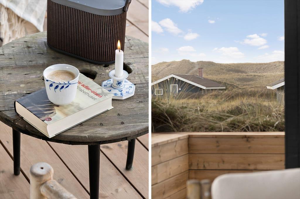 Mågedalen 34 bietet fantastisches Freiluft-Befinden mit seiner riesigen Holzterrasse, die sich südlich des Ferienhauses erstreckt. Hier kannst du Sonnenbaden, den neuesten Krimi lesen oder einfach den Blick auf die Natur und die ruhige Dünenlandschaft genießen. Dadurch das die Terrasse teilweise überdacht ist, kannst du dich auch bei reichlich Sonne oder aufziehendem Regen geschützt an der frischen Luft aufhalten. An den Abenden ist es schön unter freiem Himmel zu grillen, und zum Sonnenuntergang bist du mit einem kurzen Spaziergang am Strand, während die Sonne langsam im Westenmeer versinkt. Das große Naturgrundstück rund um das Ferienhaus bietet Platz für Spiel und Entspannung im Freien. Ein besonderes Extra ist die Außendusche. Nach einem Tag am Strand oder einem Sonnenbad im Garten kannst du schnell mal eine erfrischende Dusche nehmen - wunderbar eingerichtet, um Natur und Komfort zu verbinden.