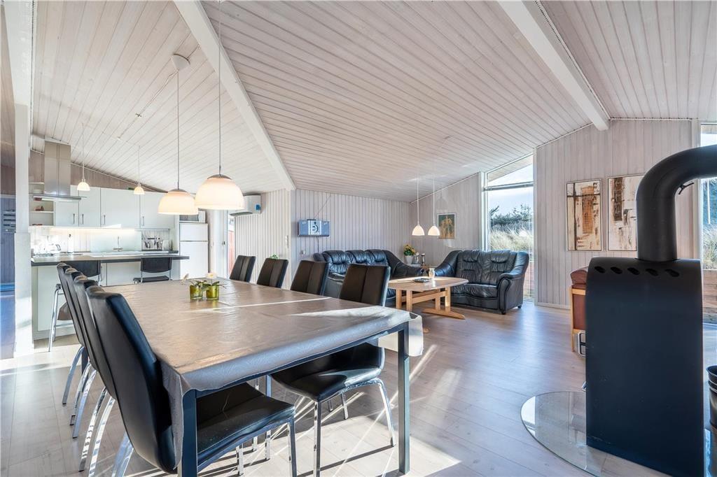 Die gute Raumaufteilung, die schöne Sonnenterrasse und der kurze Weg zum Houvig Strand sind nur drei der vielen Vorzüge dieses großen, hochwertigen Ferienhauses mit Blick auf die Dünen und den Stadil Fjord.