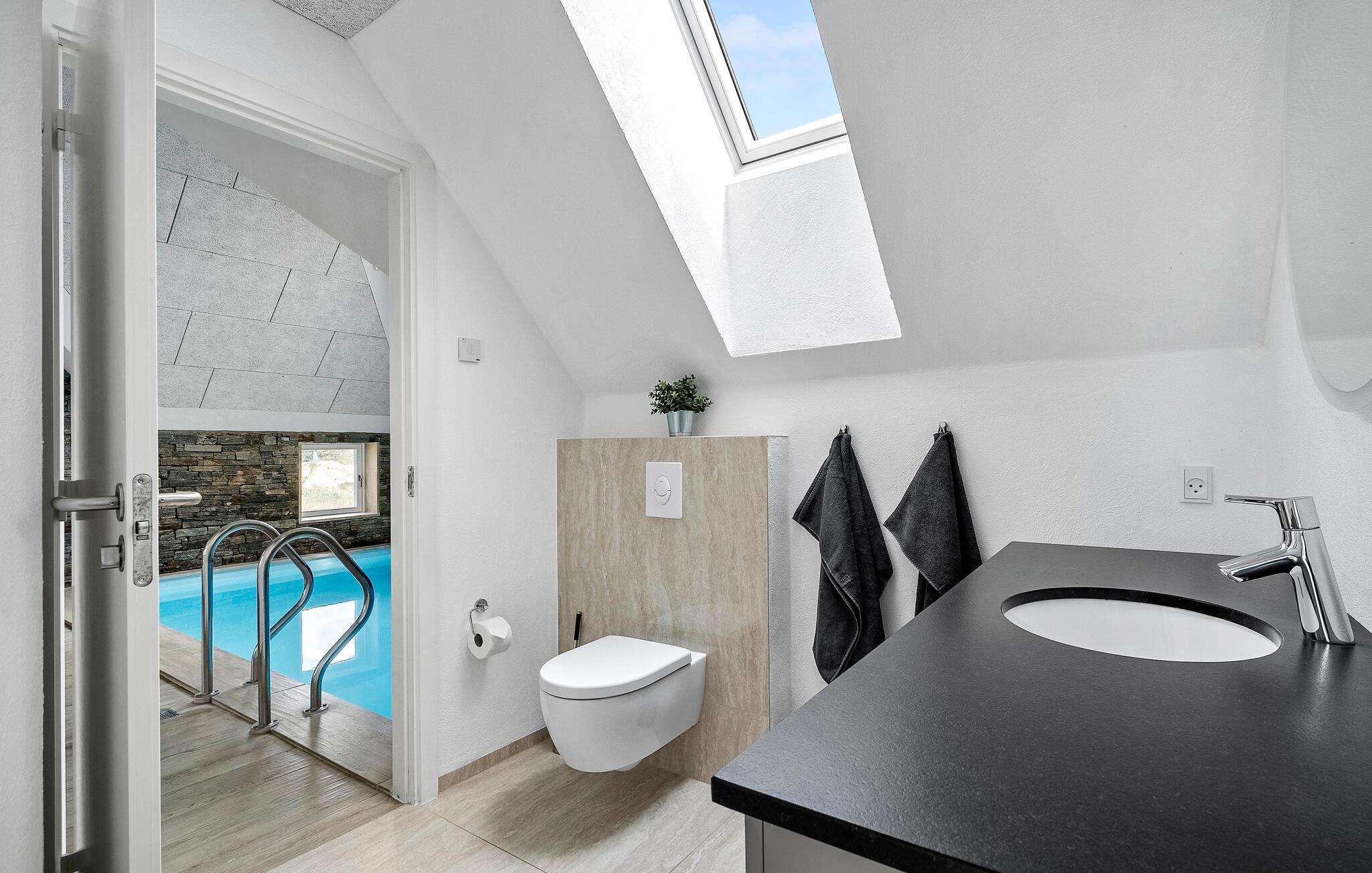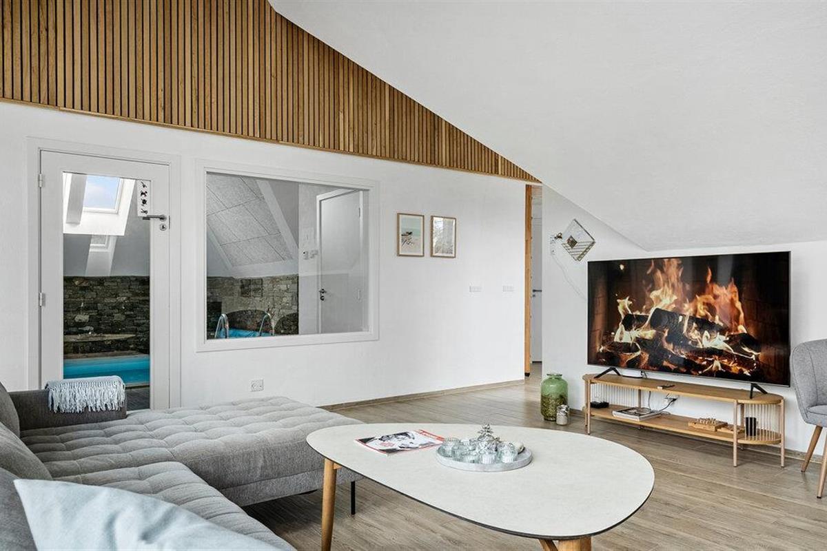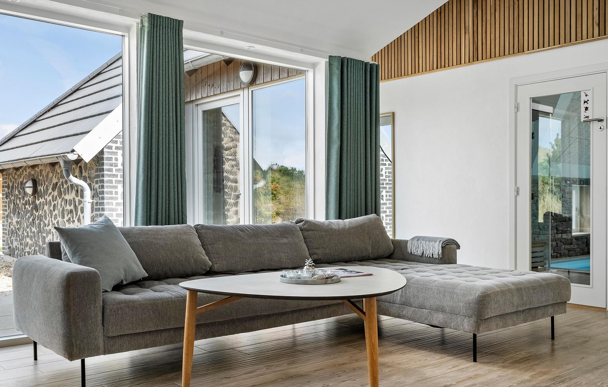 Dit schilderachtig gelegen huis belooft je een vakantie in een klasse apart. Grote ramen, mooie houten elementen en een elegante inrichting creëren een uitnodigende sfeer waarin je snel nieuwe energie kunt opdoen. Luister naar je favoriete muziek of kijk een gezellige avond met het gezin naar een film. Als je het sportiever wilt, spring dan in het binnenzwembad of ontspan in de sauna.