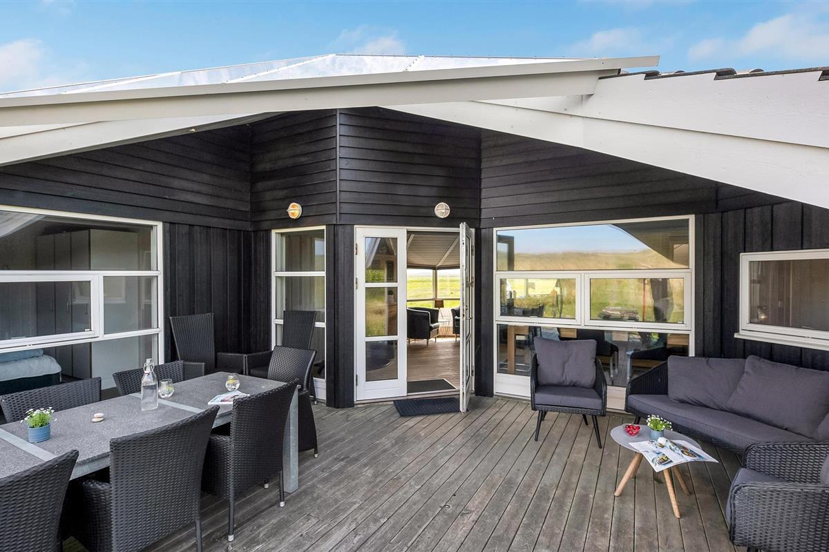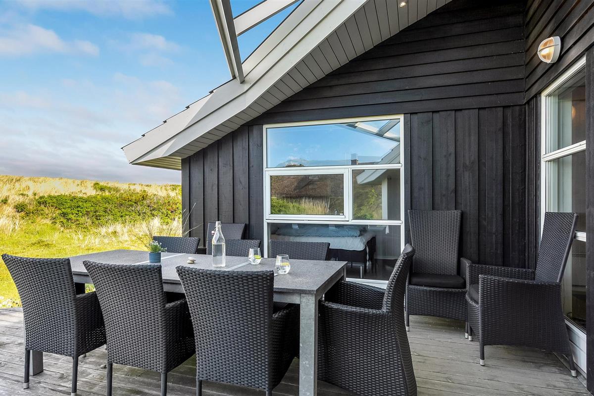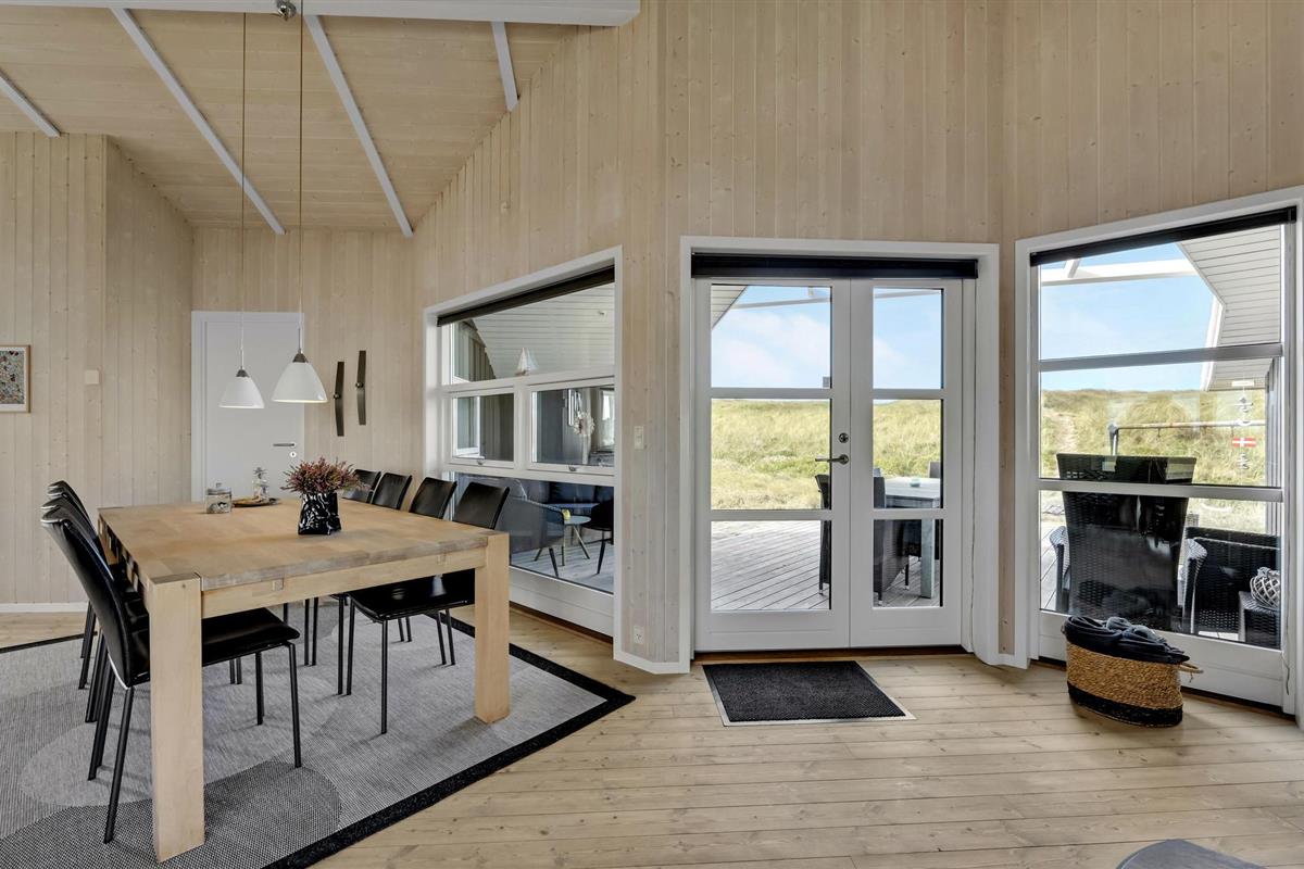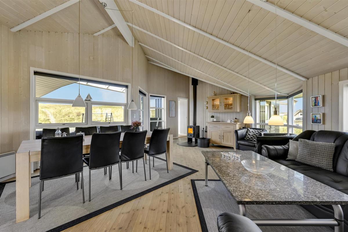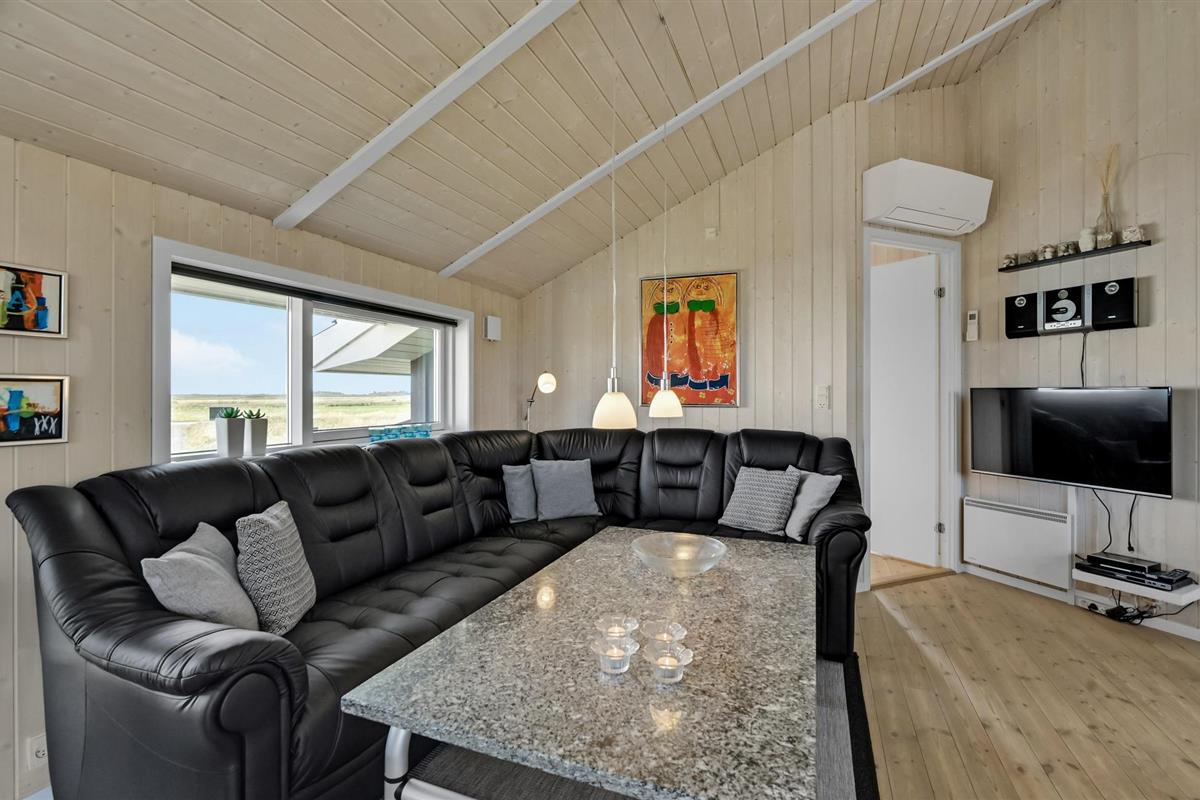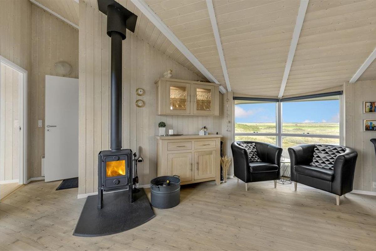Dit gezellige en goed onderhouden vakantiehuis ligt in de 1e duinenrij en op een steenworp afstand van de bulderende Noordzeegolven, die in elk seizoen zo indrukwekkend zijn. Vanuit het huis heeft u een goed uitzicht op de prachtige duinen. Op slechts enkele meters van het huis leidt het pad door de duinen rechtstreeks naar het strand en de zee. Het huis is goed uitgerust met alles wat u nodig heeft voor een geslaagde vakantie. De woonkamer is licht en vriendelijk en hier staat zowel een houtkachel als een warmtepomp als tweede warmtebron. De keuken is open naar het eetgedeelte. In een van de twee badkamers bevindt zich zowel een spa als een sauna. Er zijn vier goede slaapkamers in het huis, waarvan sommige uitzicht hebben op de duinen. Vanaf het terras, dat gedeeltelijk overdekt is, heeft u een fantastisch uitzicht op de duinen. Het populaire vakantieoord Søndervig ligt niet ver van het vakantiehuis. Hier vindt u winkels, restaurants en vele andere activiteiten.