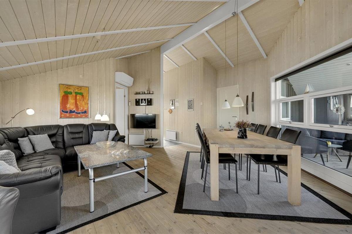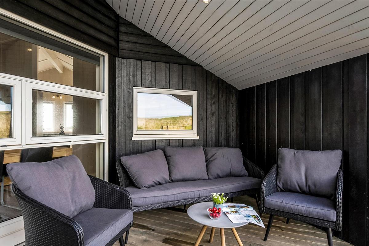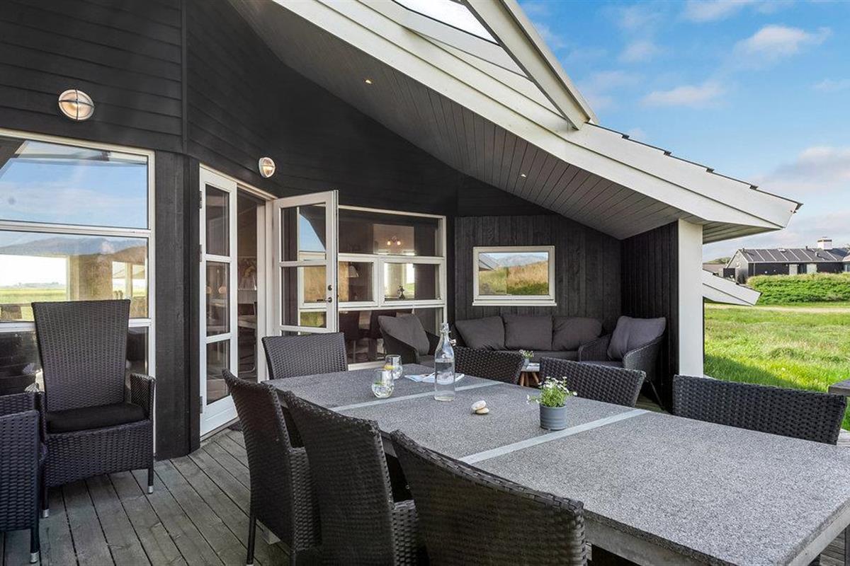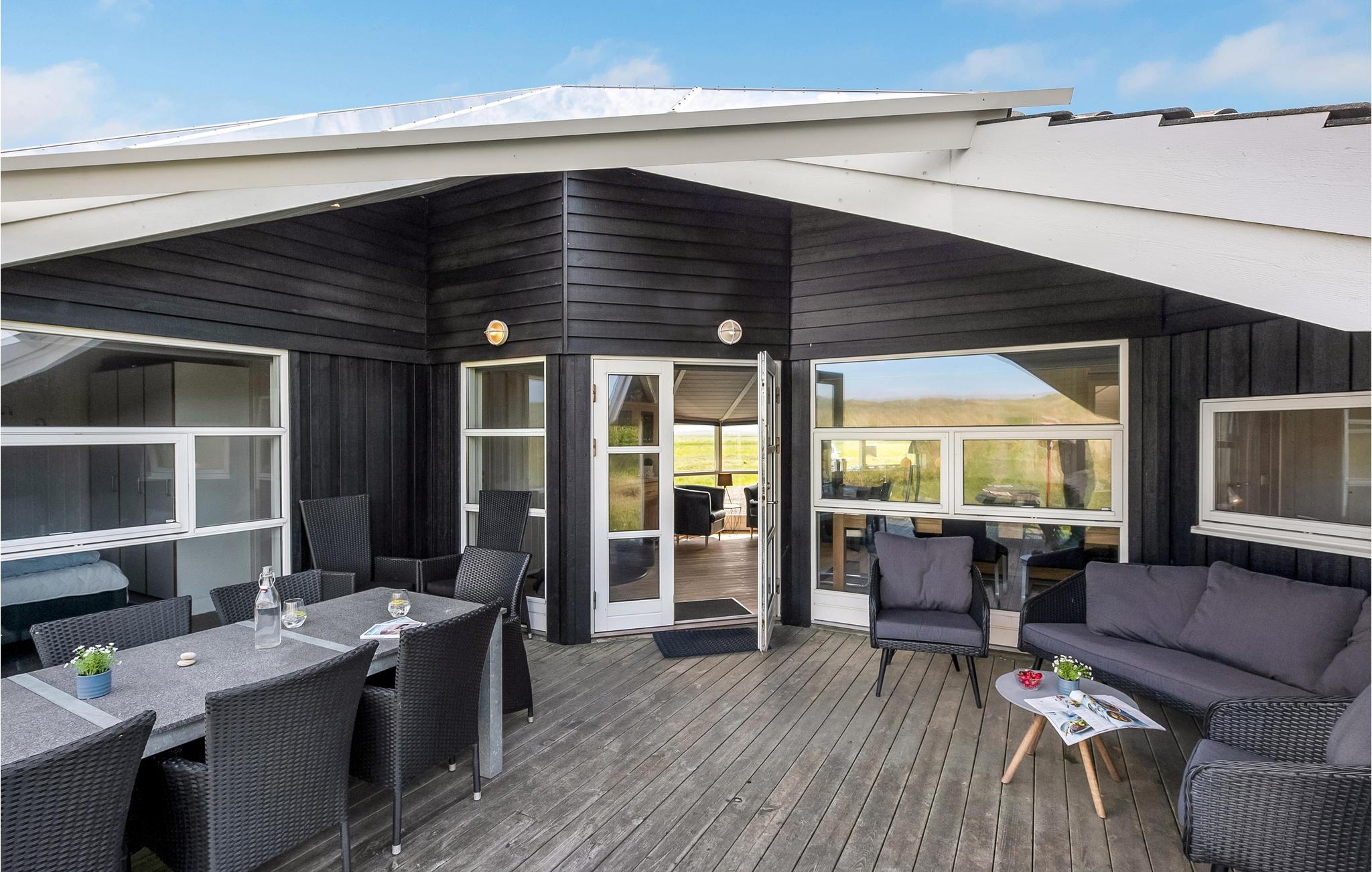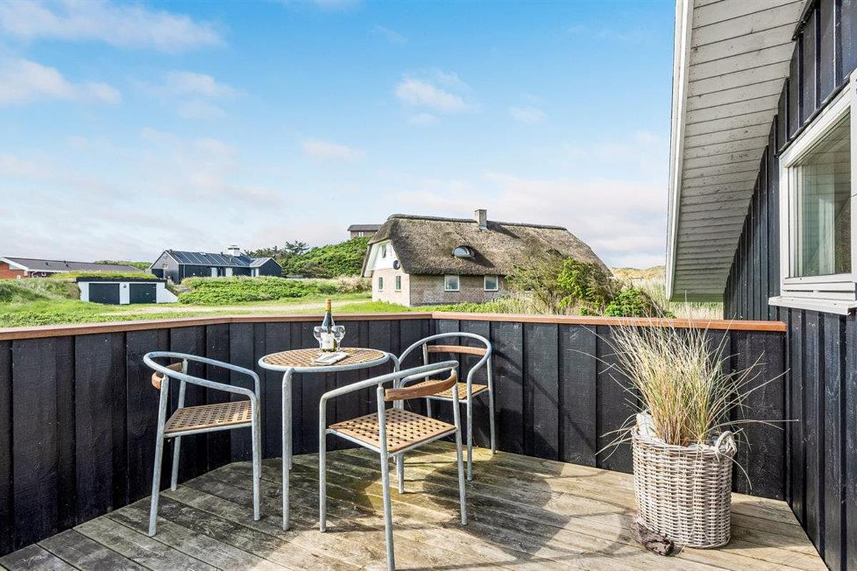 Dit gezellige en goed onderhouden vakantiehuis ligt in de 1e duinenrij en op een steenworp afstand van de bulderende Noordzeegolven, die in elk seizoen zo indrukwekkend zijn. Vanuit het huis heeft u een goed uitzicht op de prachtige duinen. Op slechts enkele meters van het huis leidt het pad door de duinen rechtstreeks naar het strand en de zee. Het huis is goed uitgerust met alles wat u nodig heeft voor een geslaagde vakantie. De woonkamer is licht en vriendelijk en hier staat zowel een houtkachel als een warmtepomp als tweede warmtebron. De keuken is open naar het eetgedeelte. In een van de twee badkamers bevindt zich zowel een spa als een sauna. Er zijn vier goede slaapkamers in het huis, waarvan sommige uitzicht hebben op de duinen. Vanaf het terras, dat gedeeltelijk overdekt is, heeft u een fantastisch uitzicht op de duinen. Het populaire vakantieoord Søndervig ligt niet ver van het vakantiehuis. Hier vindt u winkels, restaurants en vele andere activiteiten.