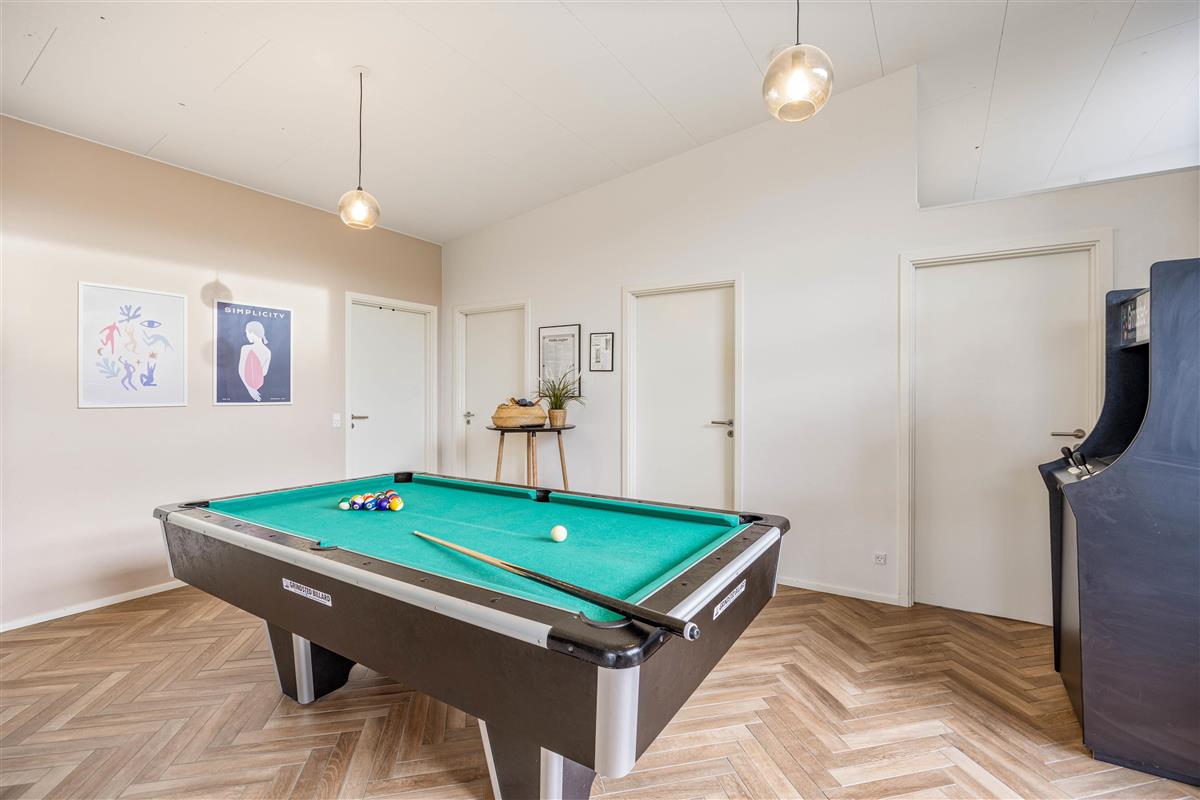 The stylish environment offers both relaxation and entertainment for all ages. The larger of the two bathrooms features a whirlpool, with access to the sauna. This area creates a private wellness corner where you can recharge and fully enjoy the peaceful holiday atmosphere. For entertainment, the central games room is equipped with a pool table.