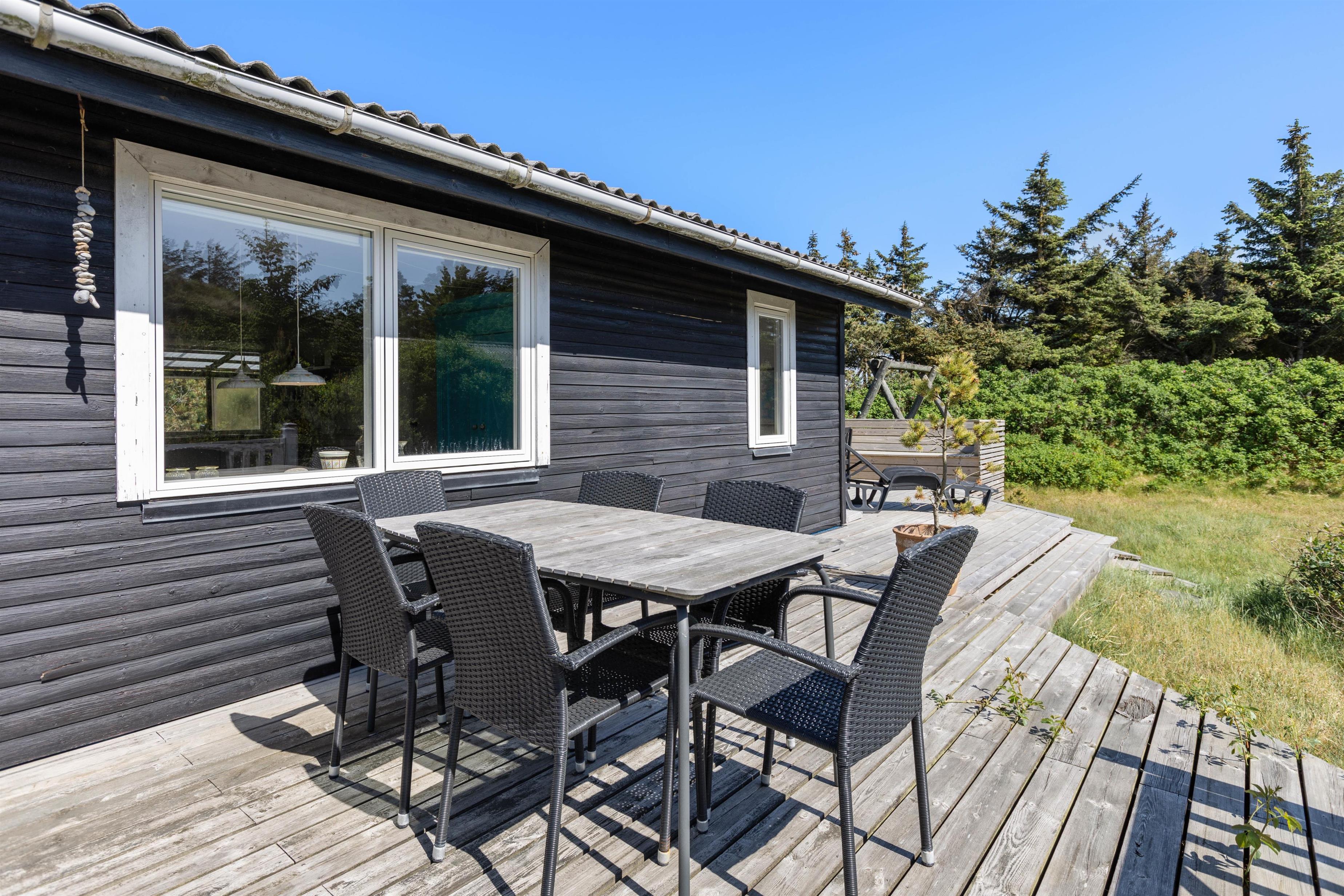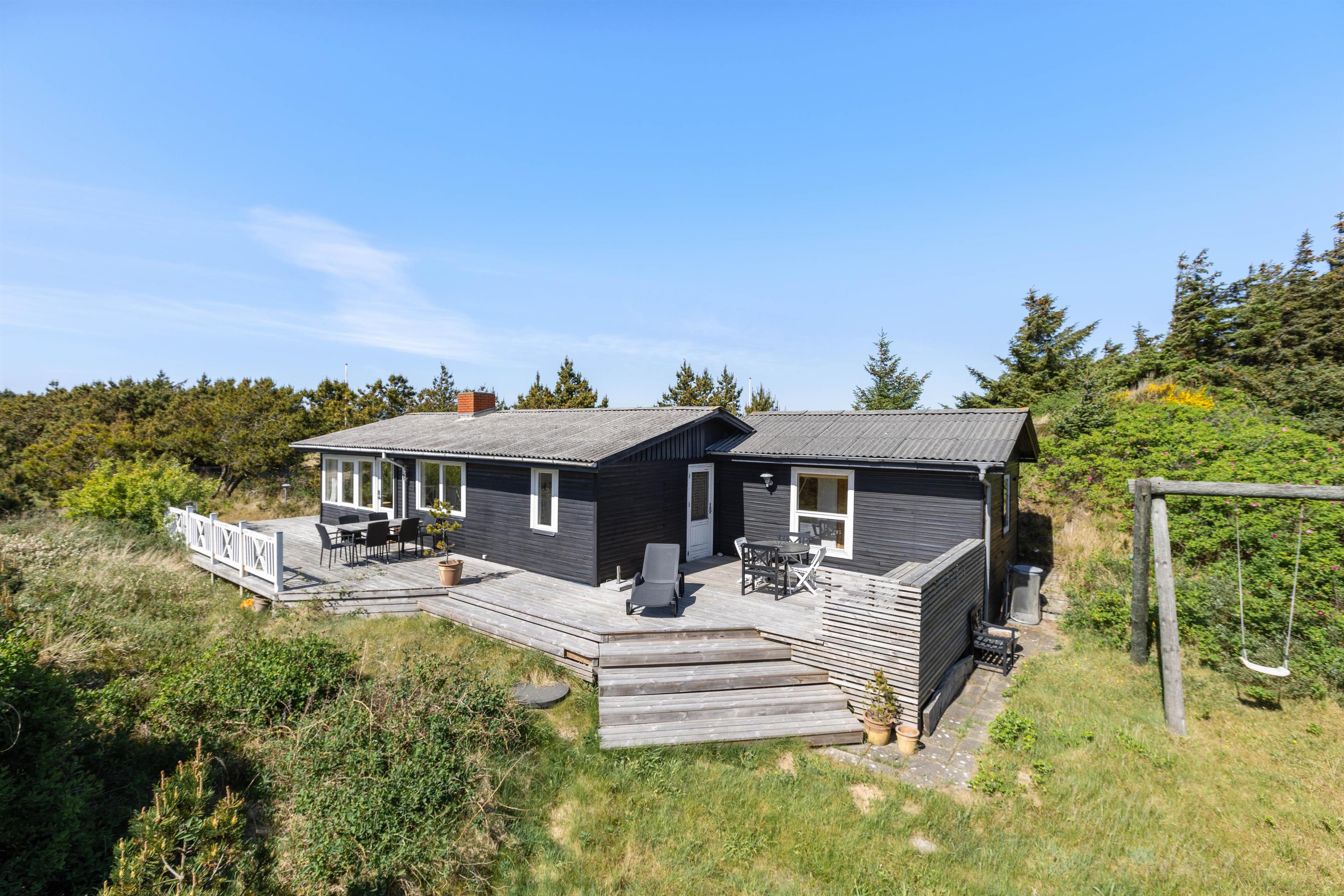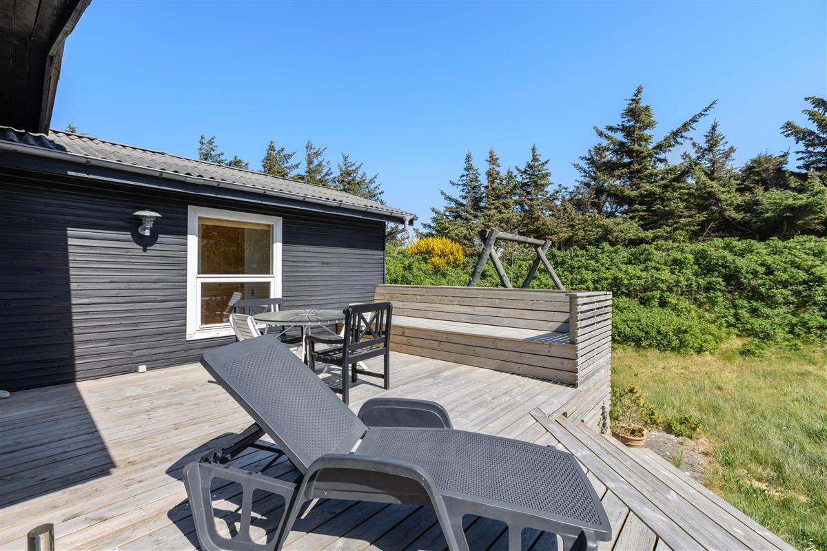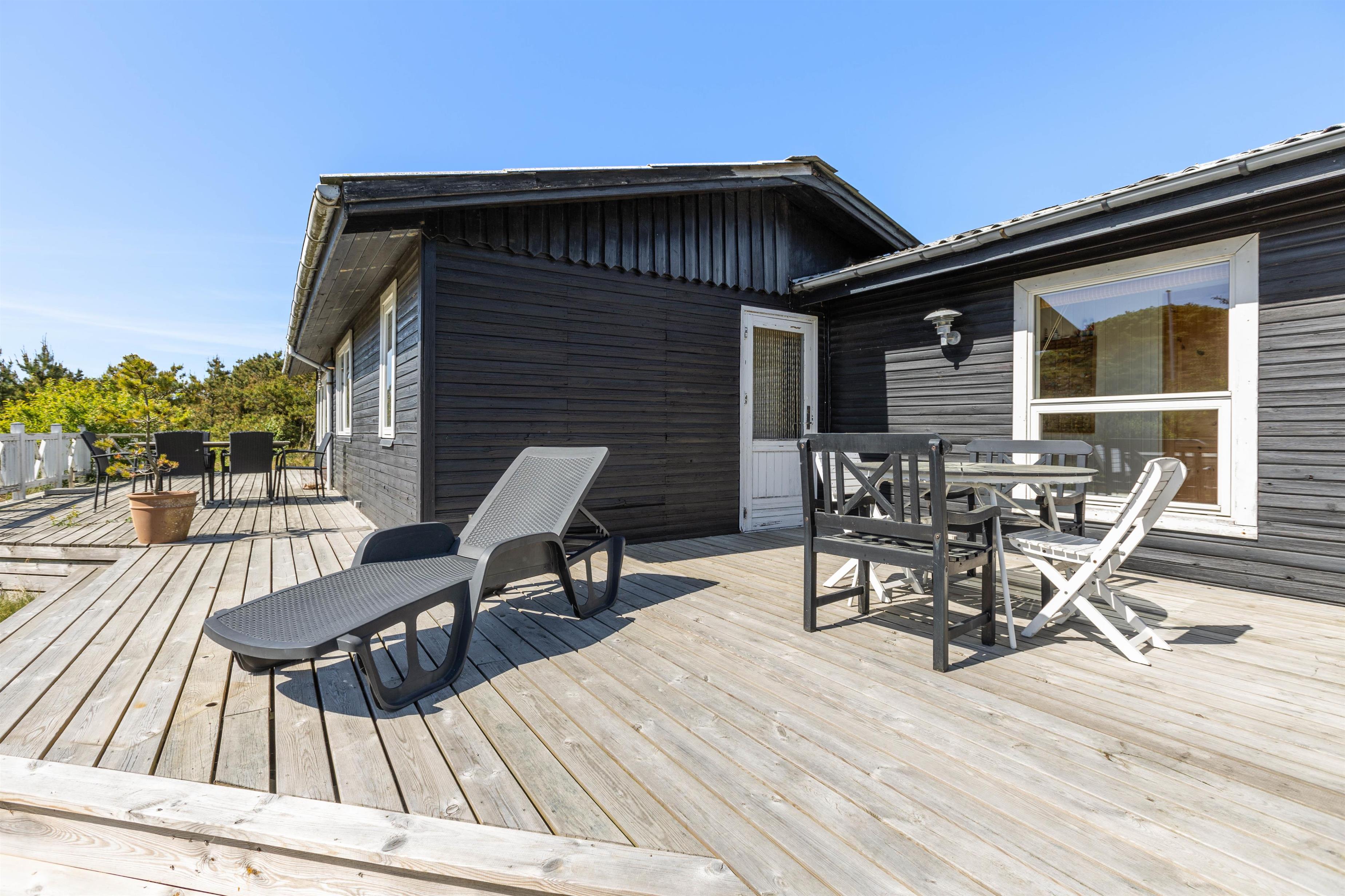 The house sits on an attractive, sheltered natural plot. The grounds are bordered by marram grass and bushes. In summer, you can relax on the terrace with a book on the sun lounger or end the day with a barbecue. Garden furniture and a barbecue are included in the basic equipment.