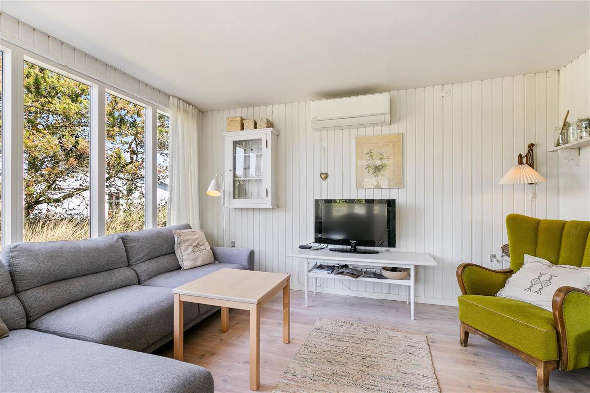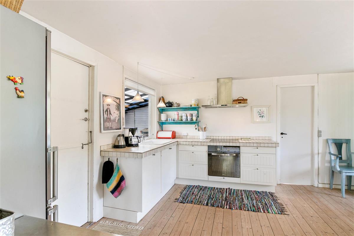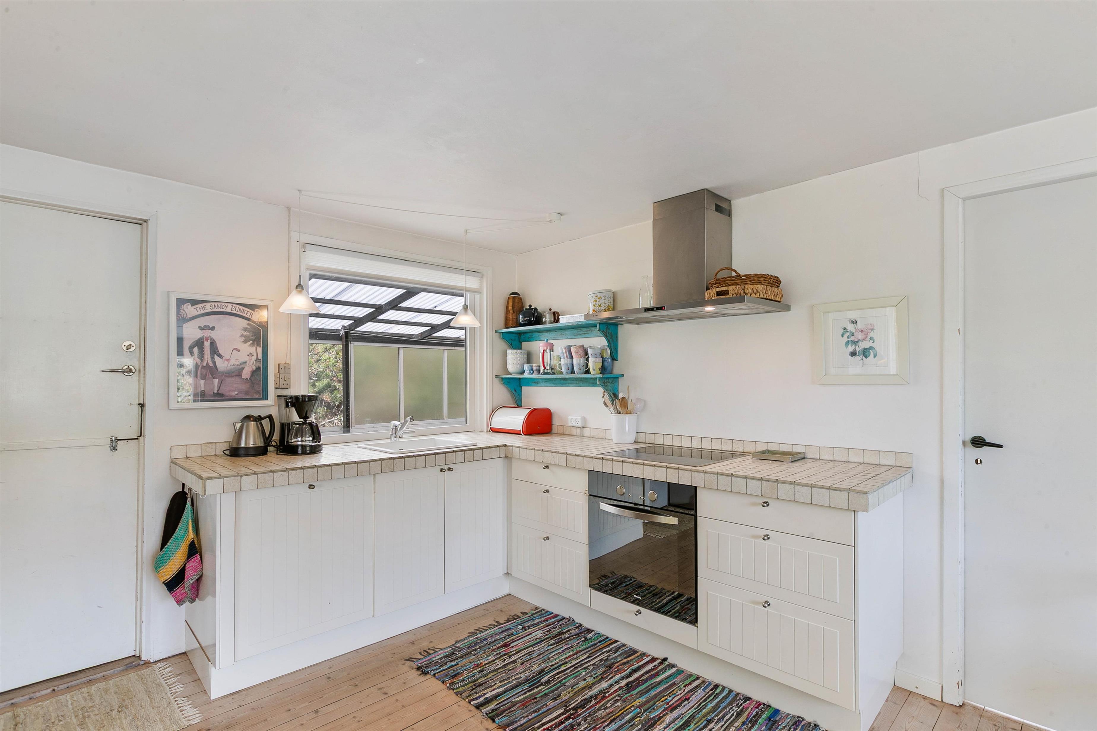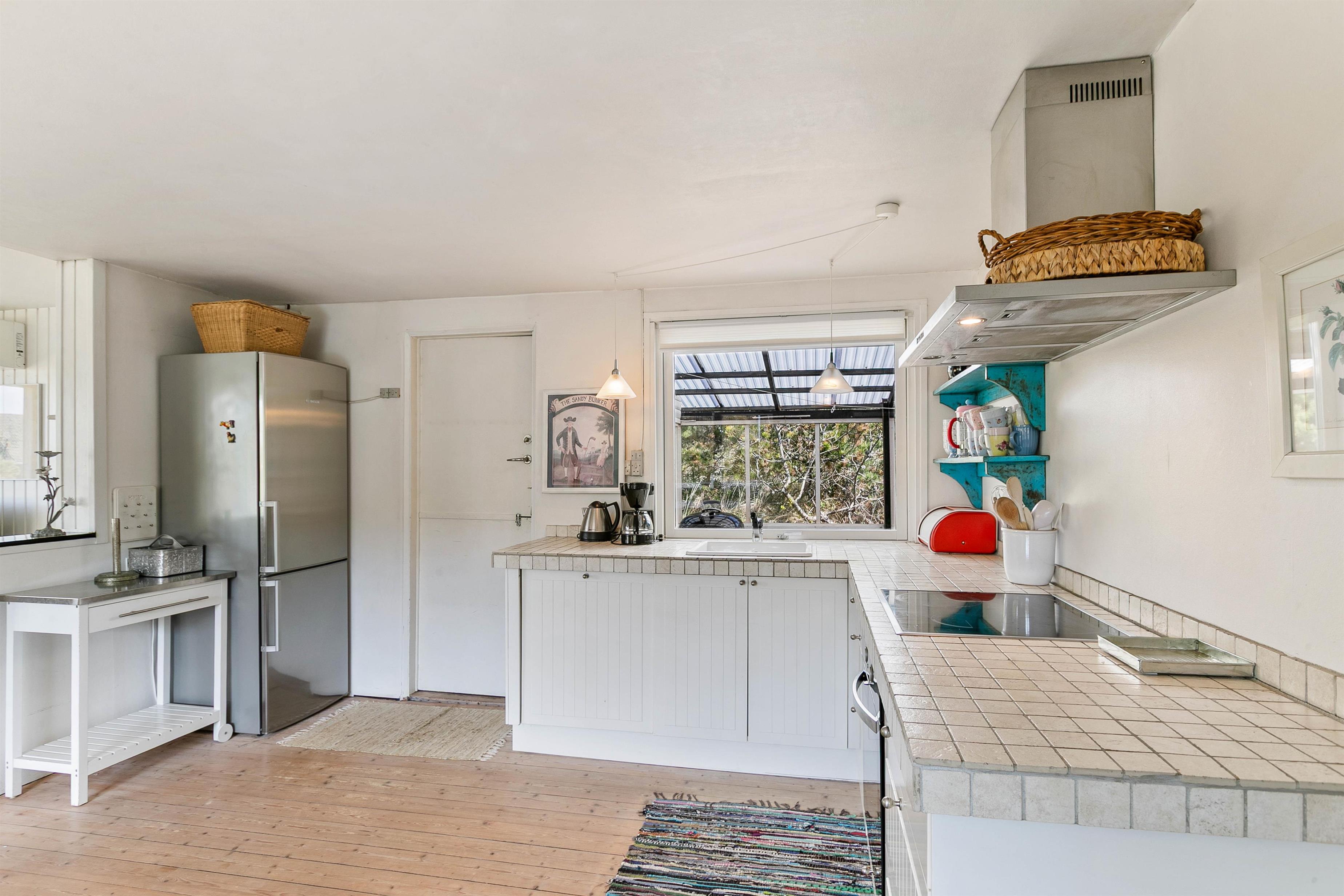 You don't need to travel to southern Europe to escape everyday stress. In Houvig on the Danish west coast, you can experience a genuine holiday atmosphere and enjoy quality time with your small family in this delightful home. The holiday home features bright, personal décor – you'll feel at home straight away. The heart of the house is the living area, which connects to the kitchen. Here you'll find the wood-burning stove, creating a cosy atmosphere for evening card games or watching films.