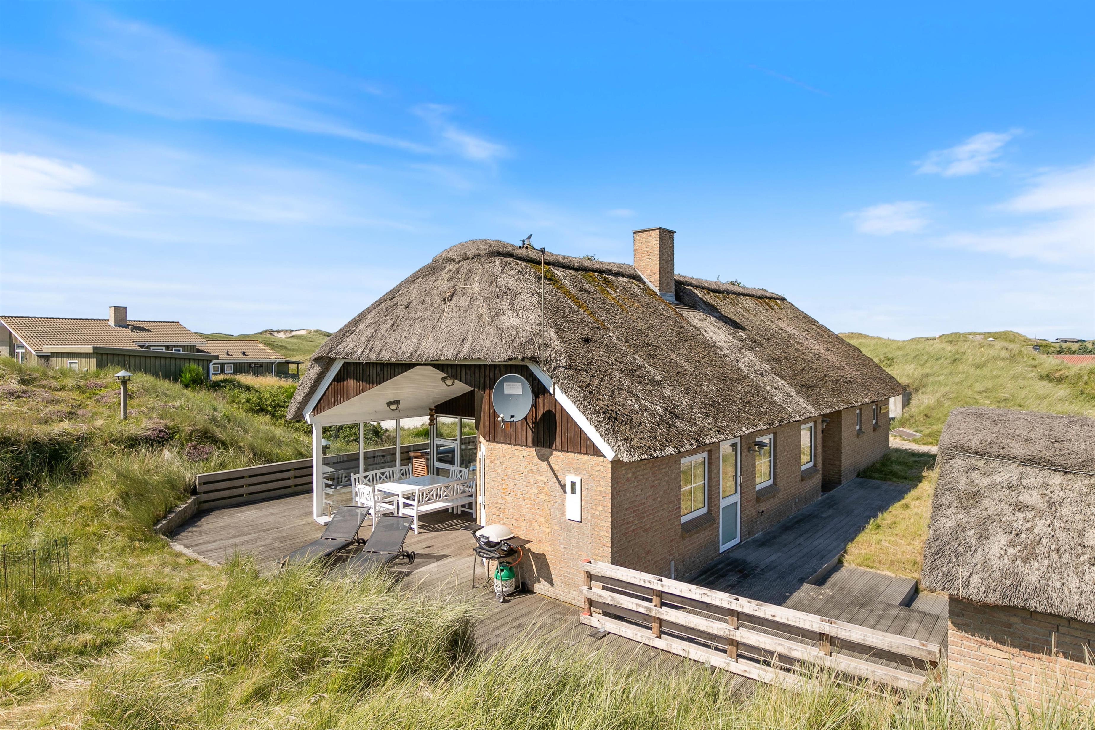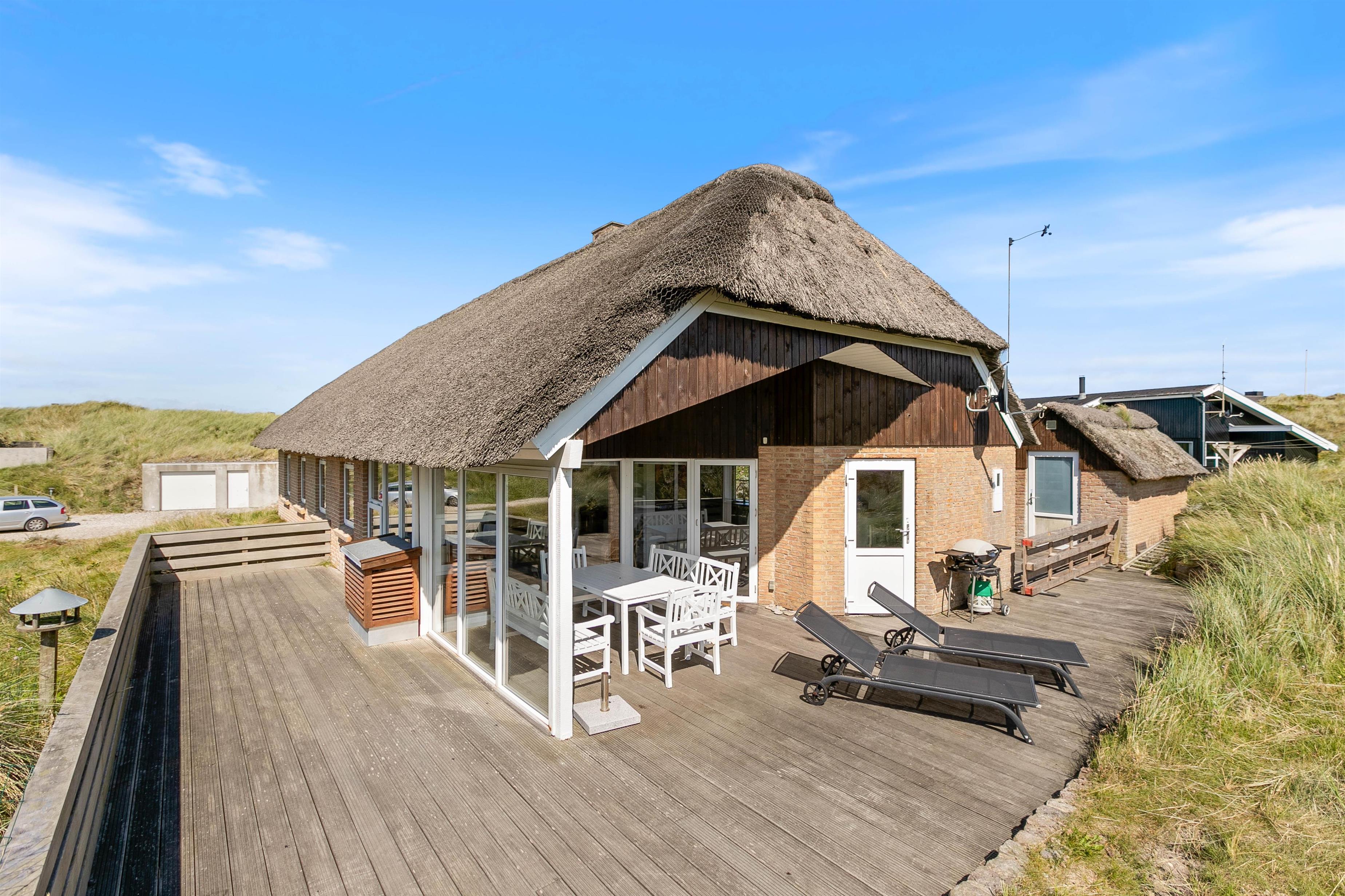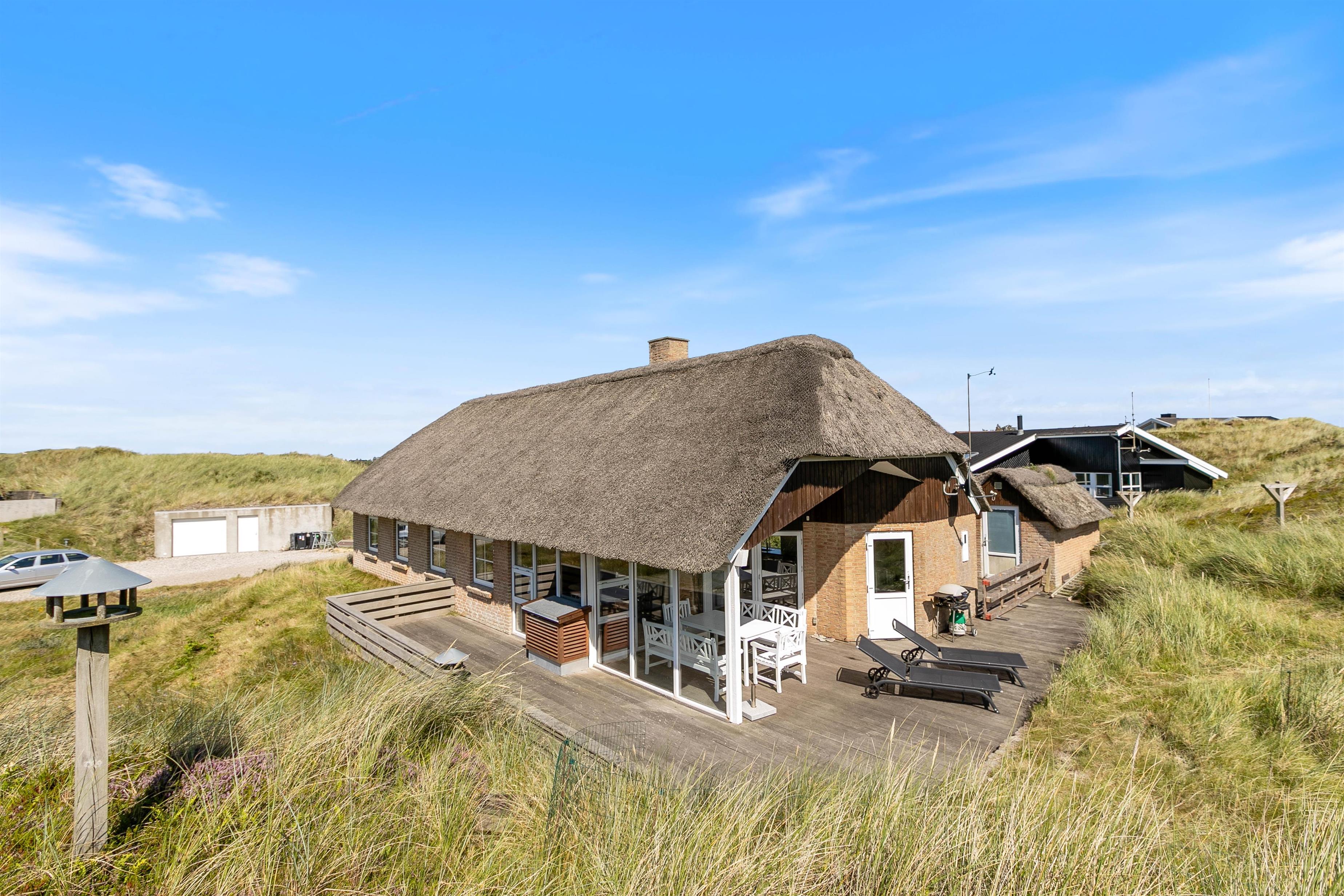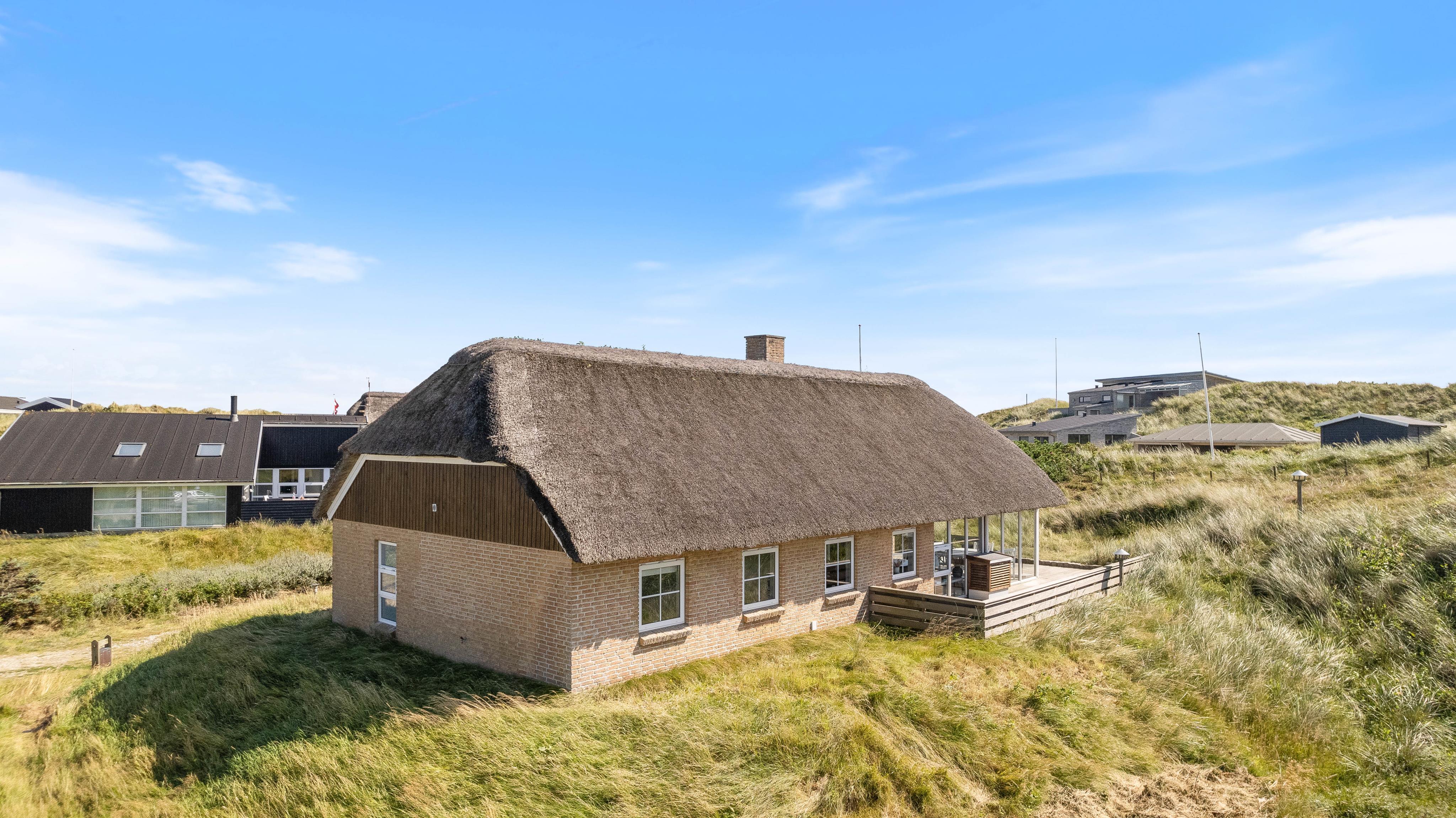 Located at Klitdalen 95, this beautiful thatched cottage sits atop a dune, just 150 metres from the magnificent North Sea beach. Its premium location, offering views across the surrounding dune landscape and immediate proximity to the sea, makes this house the ideal holiday retreat for those seeking a seaside escape without compromising on comfort and wellness facilities.