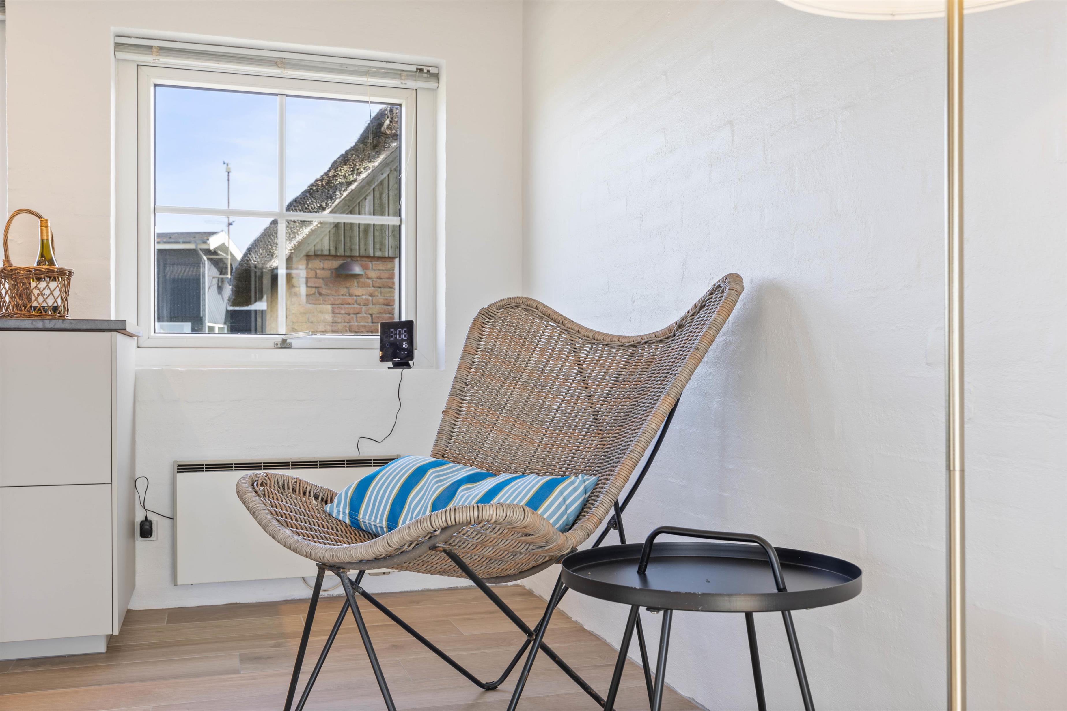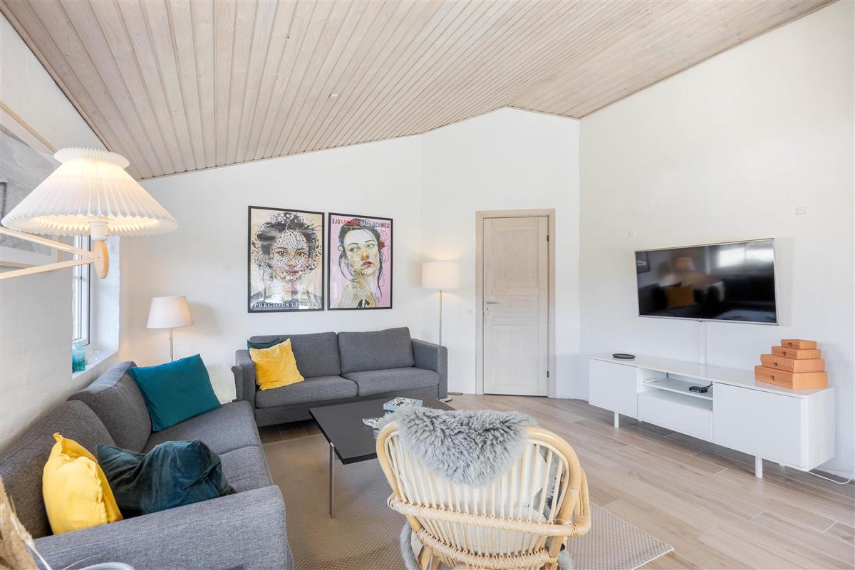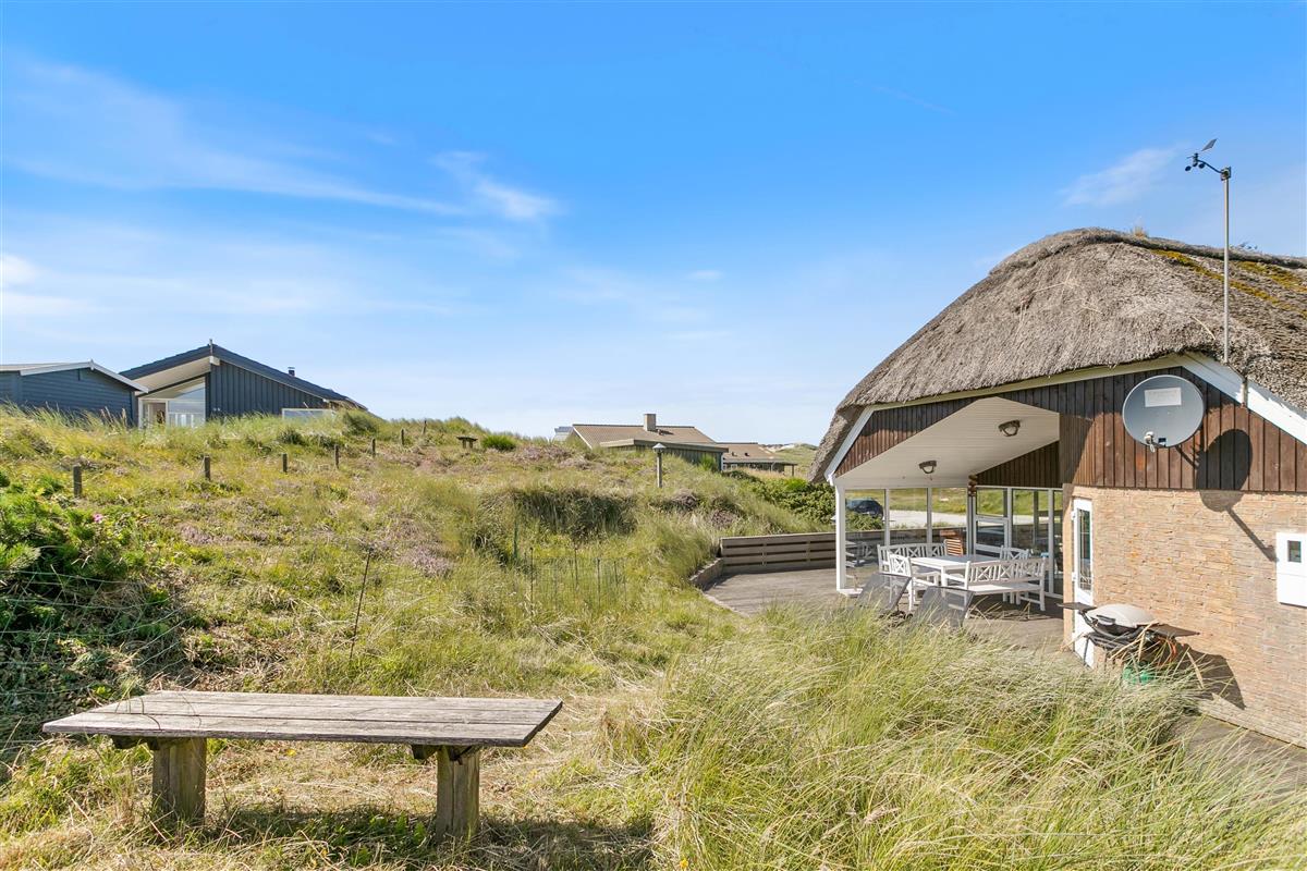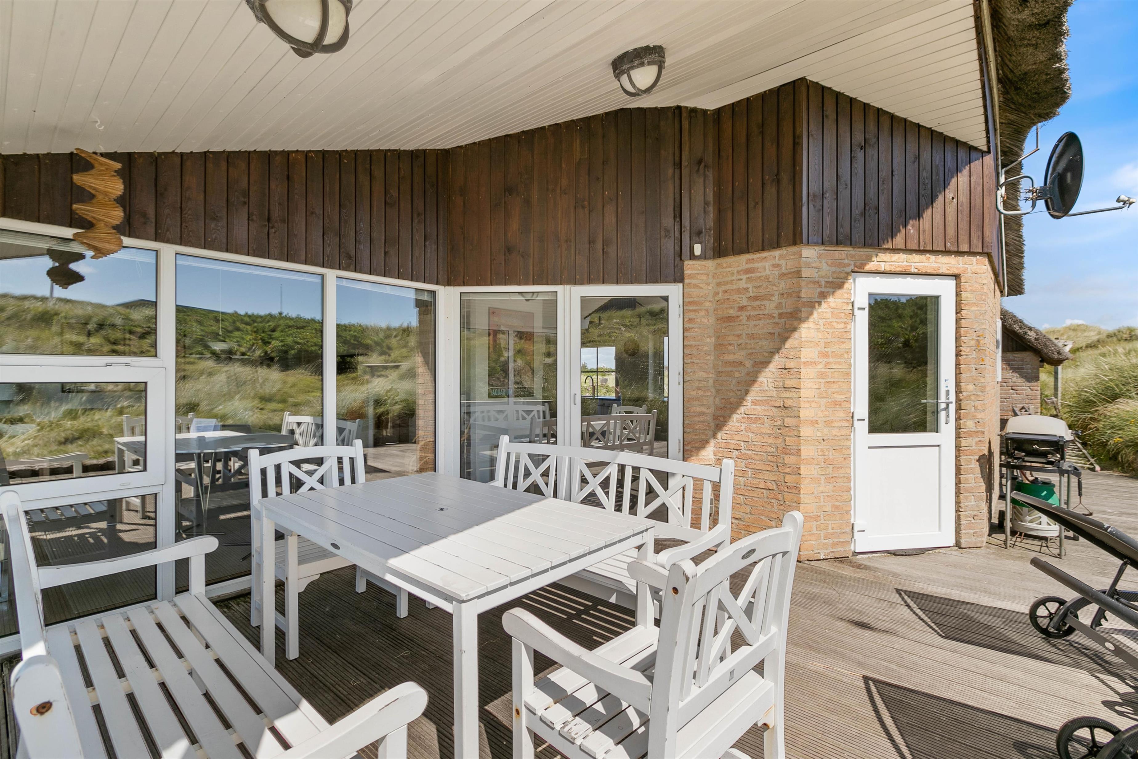 The living room opens onto a partially covered terrace furnished with comfortable garden furniture. The view over the surrounding dune landscape is simply fantastic. While sunbathing, you can hear the sound of the sea and watch snow-white seagulls against the deep blue sky. A warm summer's day is best concluded with a relaxing barbecue as the sun sets behind the dunes, painting the sky red, while your dog curls up beside you, perhaps still dreaming of chasing seagulls.