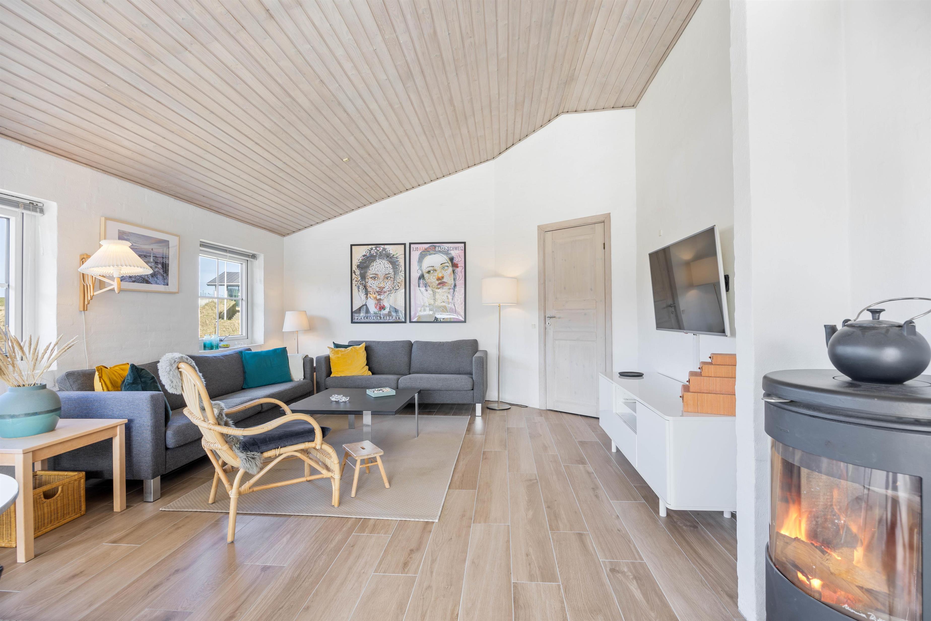 One of the two modern bathrooms features a whirlpool and sauna. The combination of the beach proximity and excellent spa facilities is simply unbeatable. Imagine ending a long day in the fresh North Sea air with a relaxing soak in the whirlpool followed by a sauna session. You might even have time afterwards to watch an exciting film on the large flat-screen TV from the comfortable sofa, while the crackling wood-burning stove provides a cosy warmth.