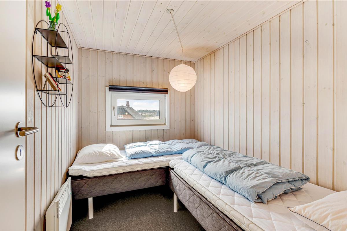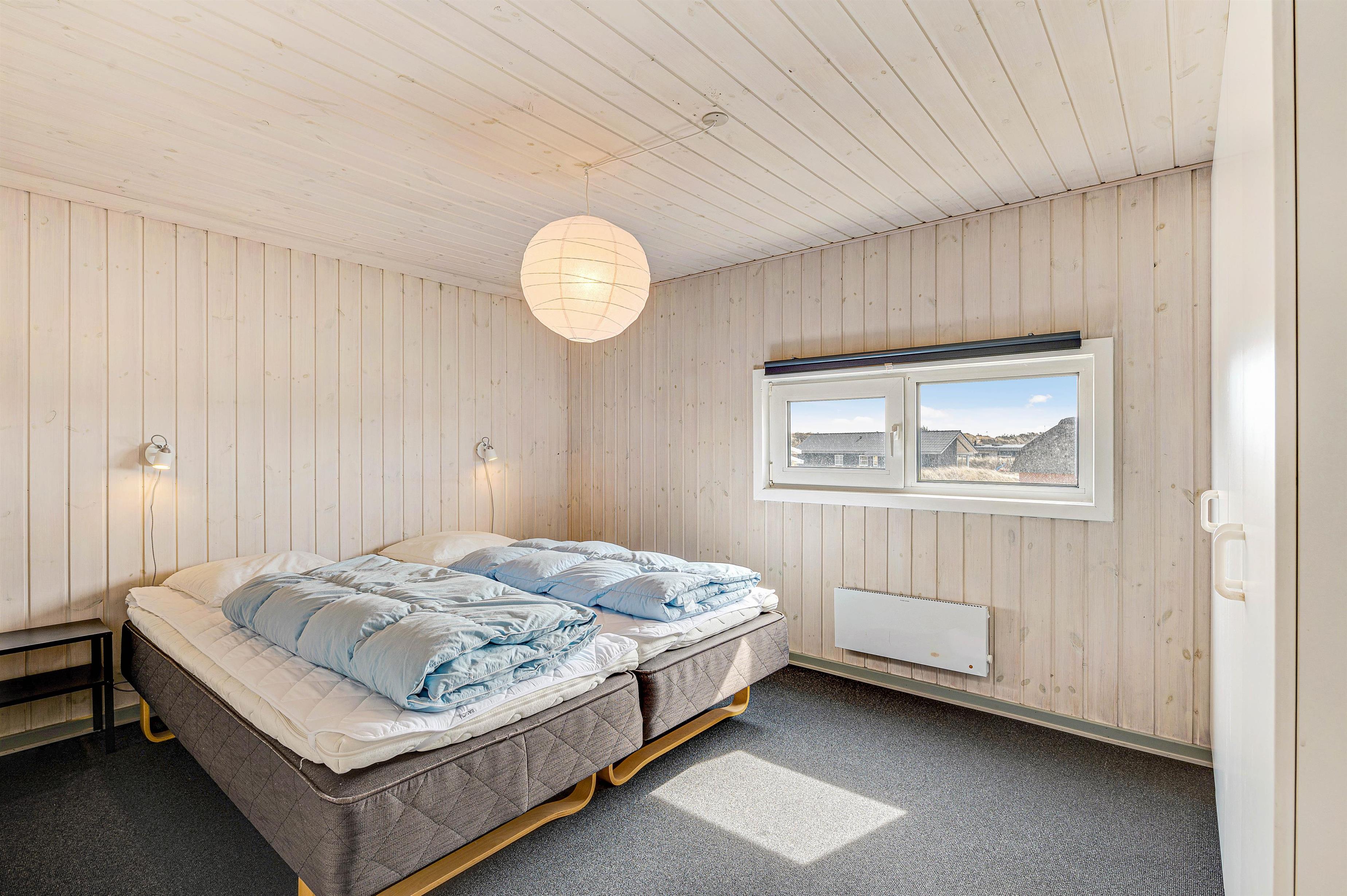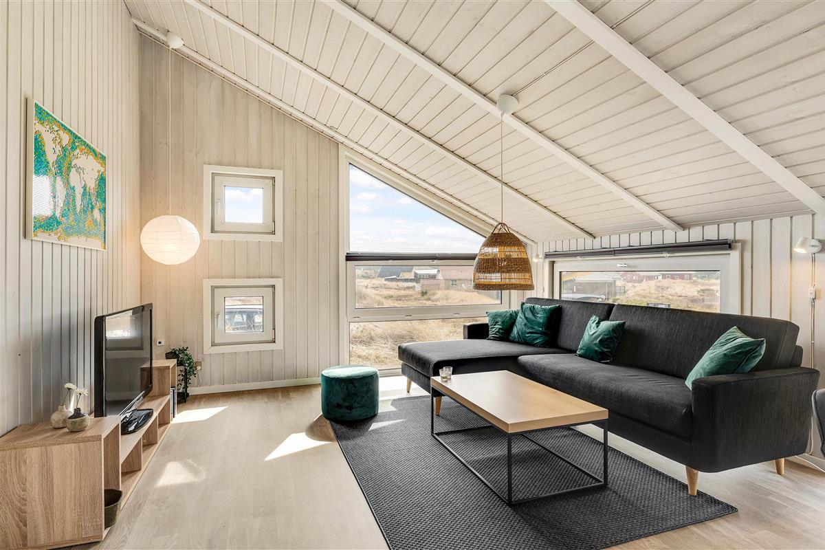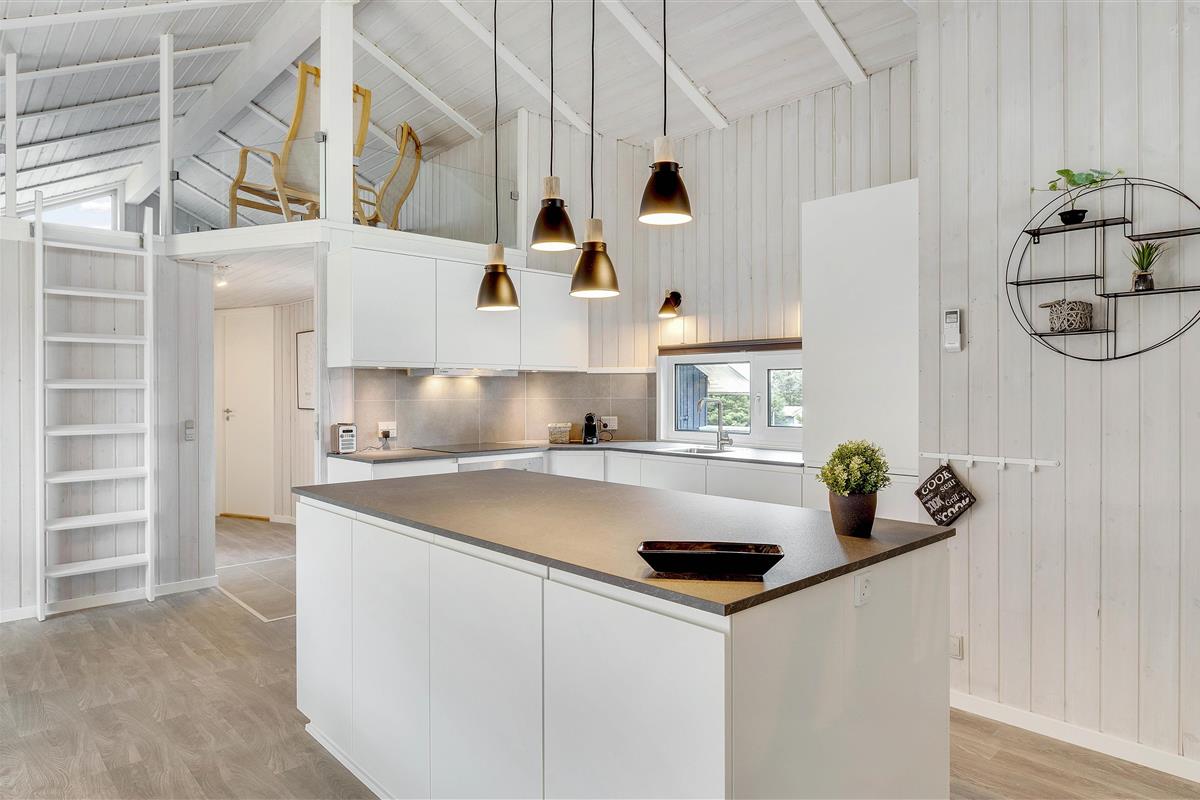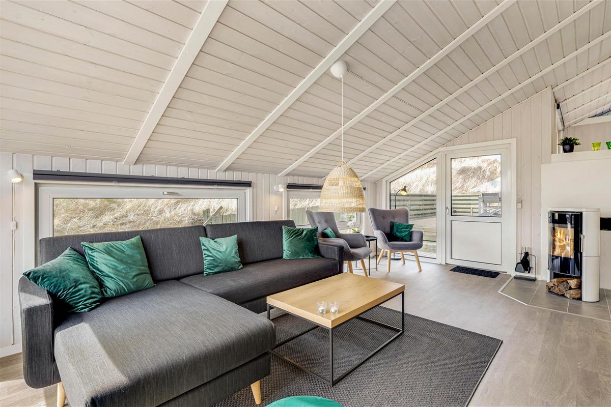 Located at Mågedalen 97 in the Houvig holiday region, this holiday home charms with its classic style. Wood-panelled walls extending to the roof create an authentic holiday atmosphere. The spacious dining area with integrated kitchen will be one of the home's focal points. The well-equipped kitchen is perfect for preparing delicious meals together, while the dining table offers an ideal spot for evening games or planning your holiday activities.