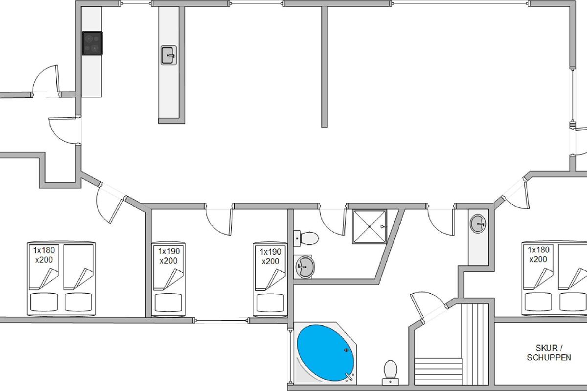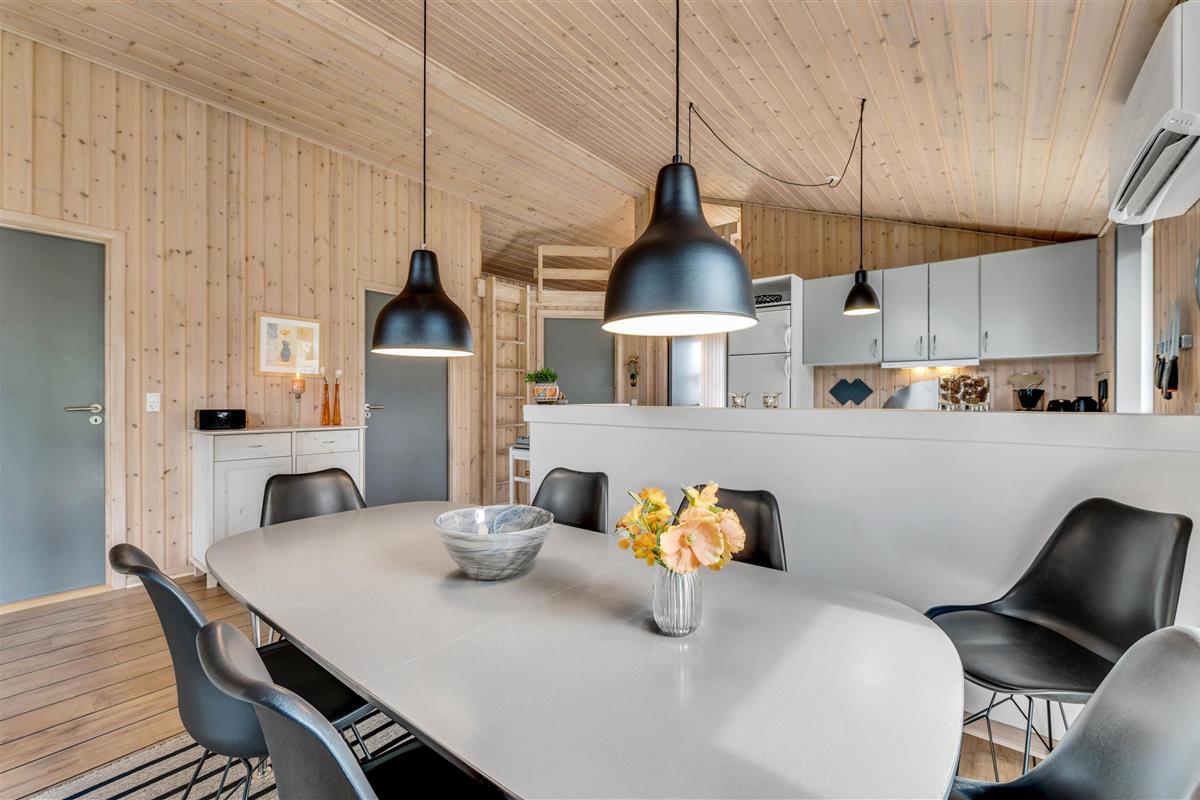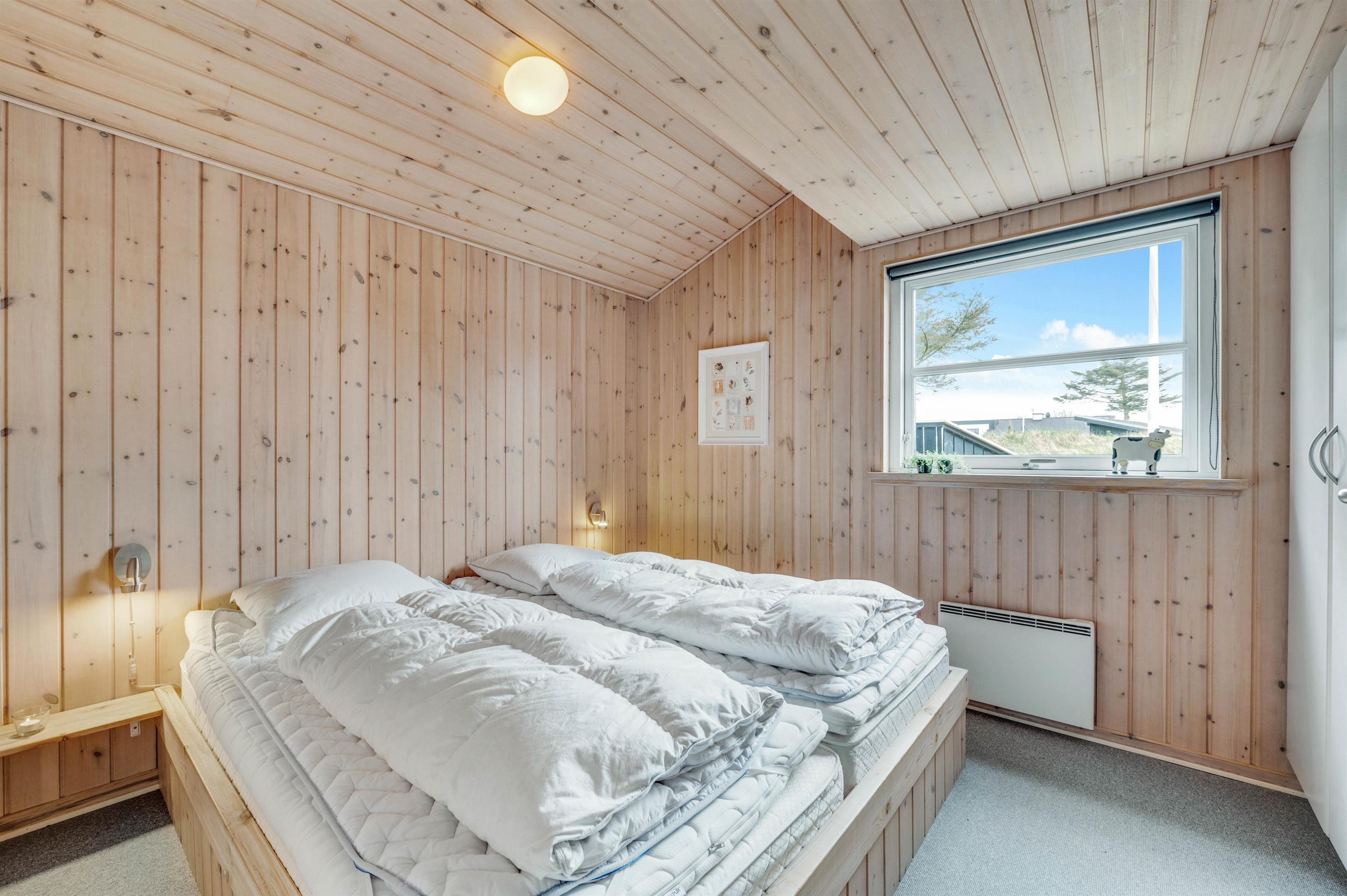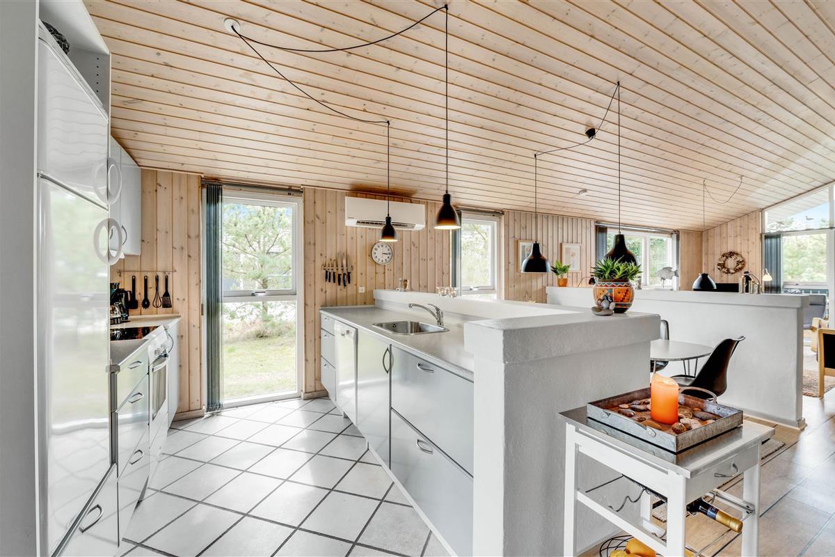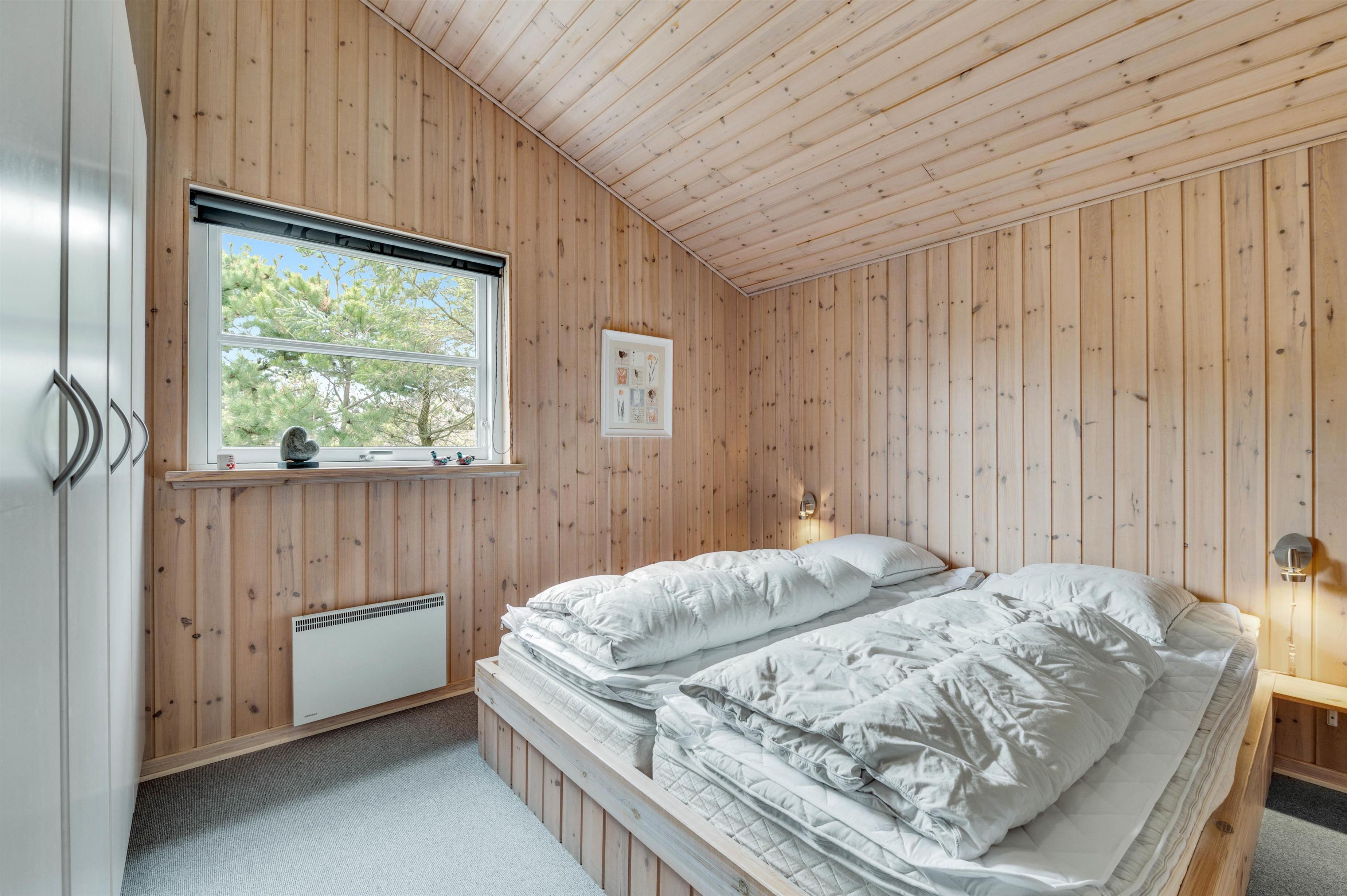 This holiday home is situated on a peaceful natural plot in Houvig, close to the North Sea. The house is surrounded by trees, offering privacy while relaxing on the fenced terrace. On cooler days, the wood-burning stove provides a cosy gathering point for the whole family.
