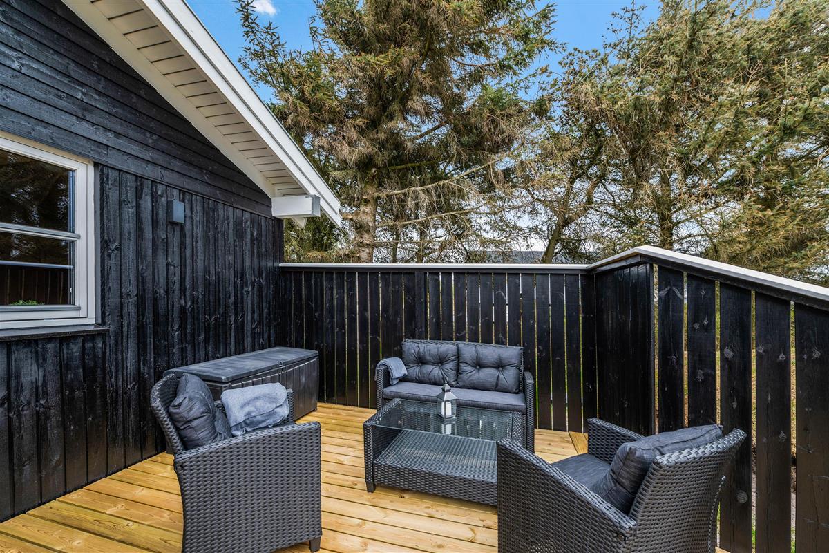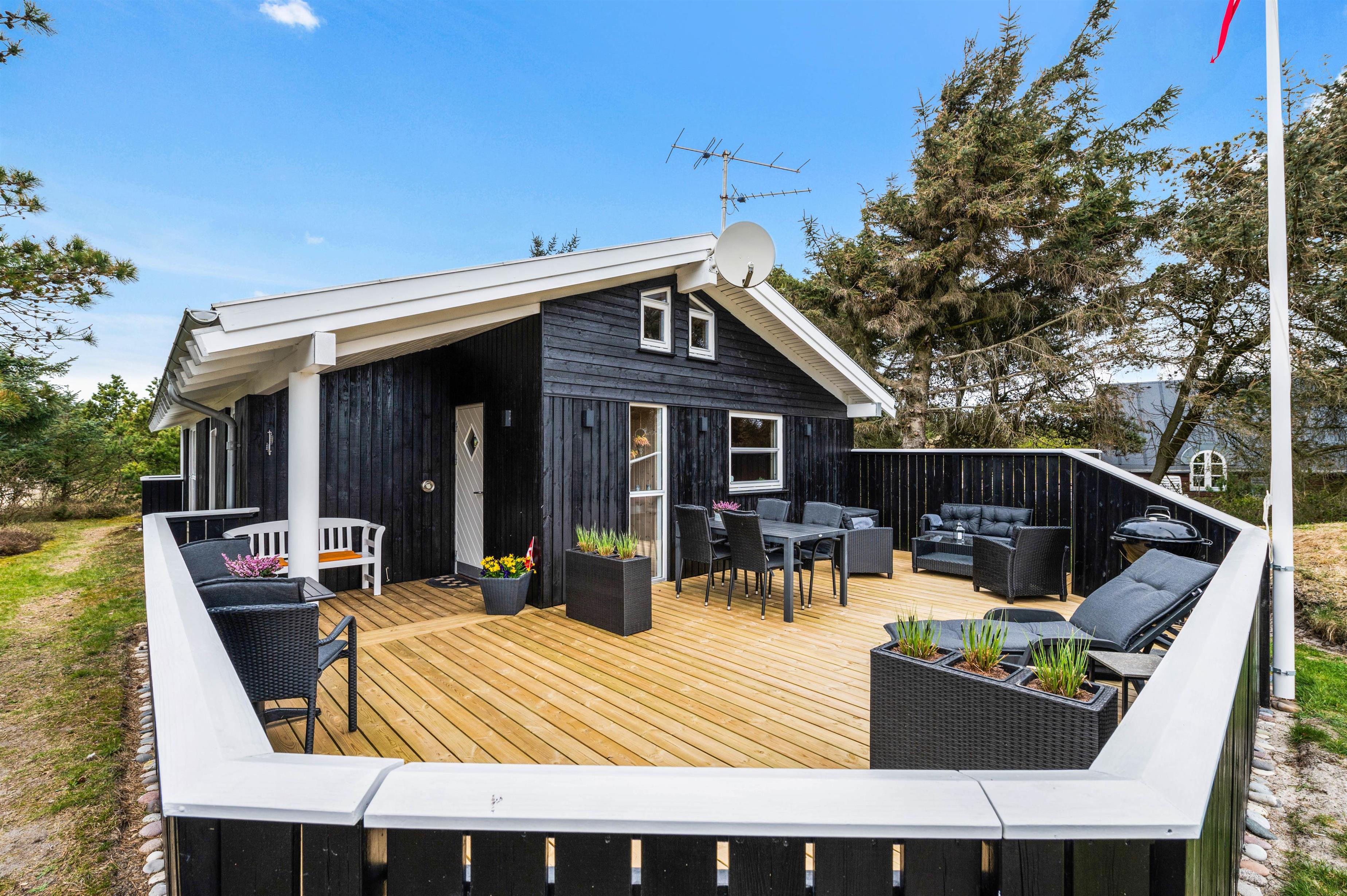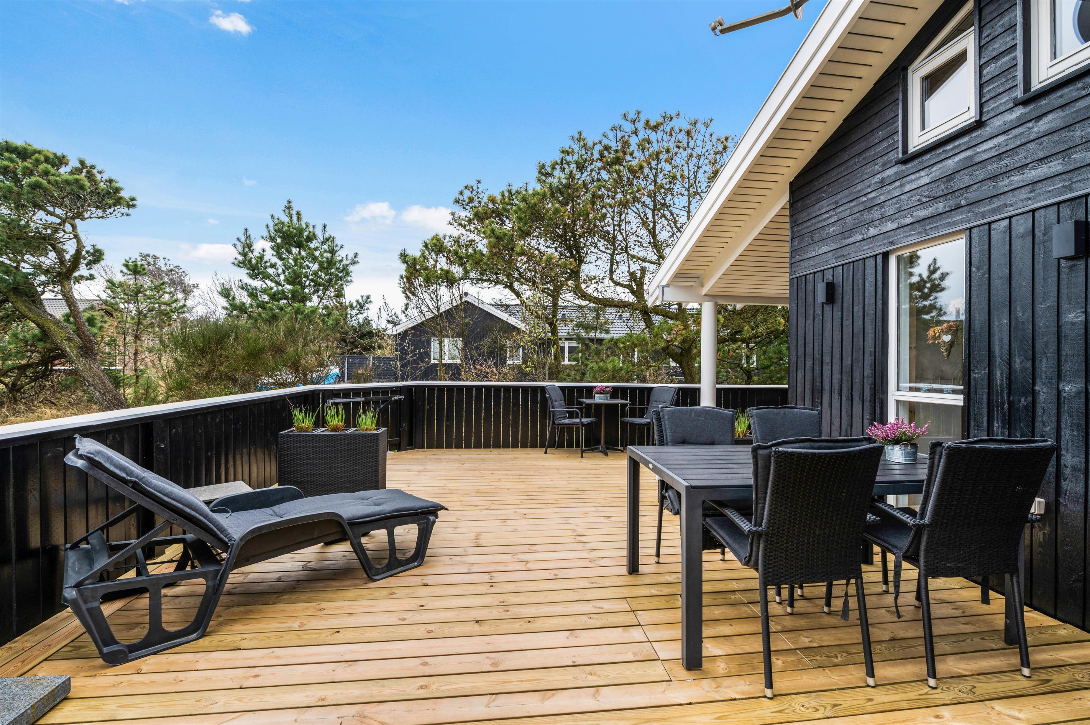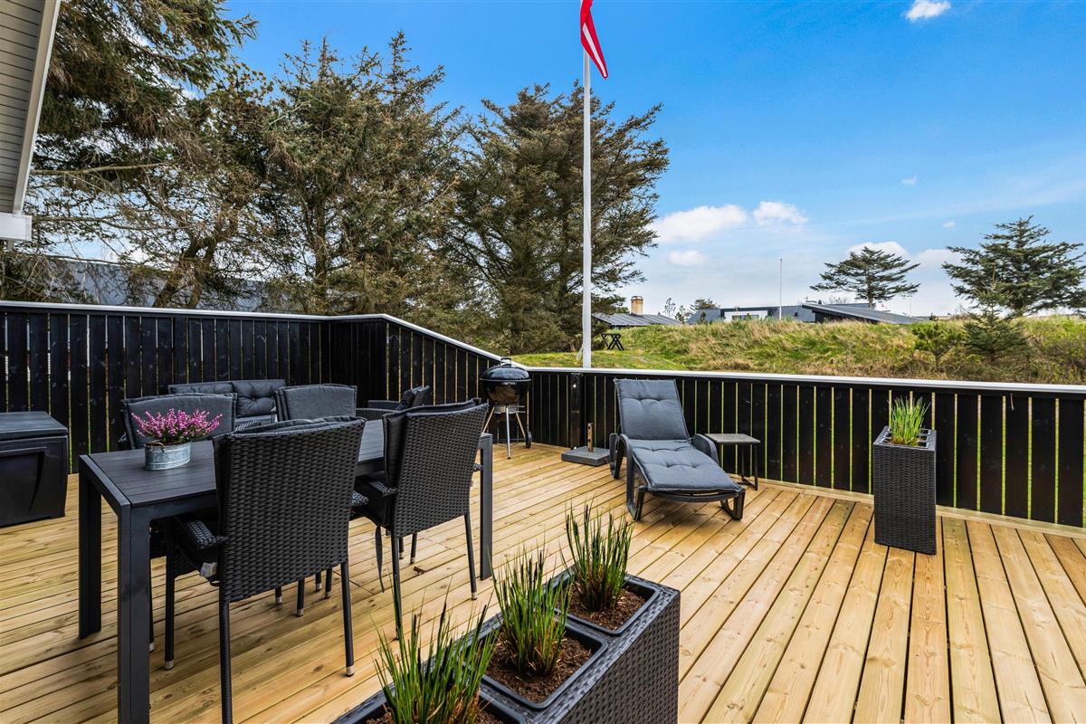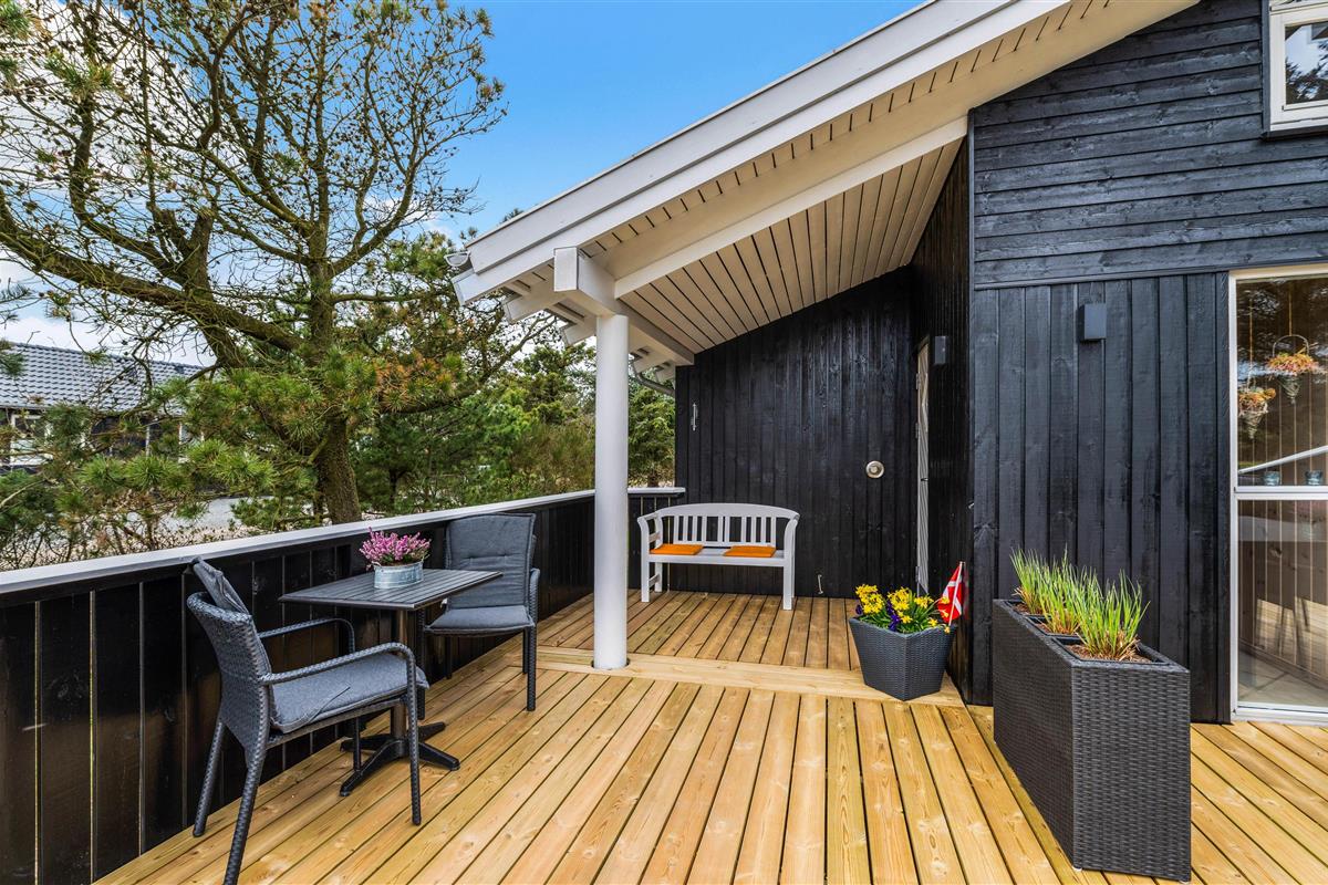 The house has two fenced terraces. One terrace is positioned at the eastern end of the house, perfect for morning coffee. The other terrace faces west and is partially covered, ideal for long evenings listening to the sound of the North Sea.
