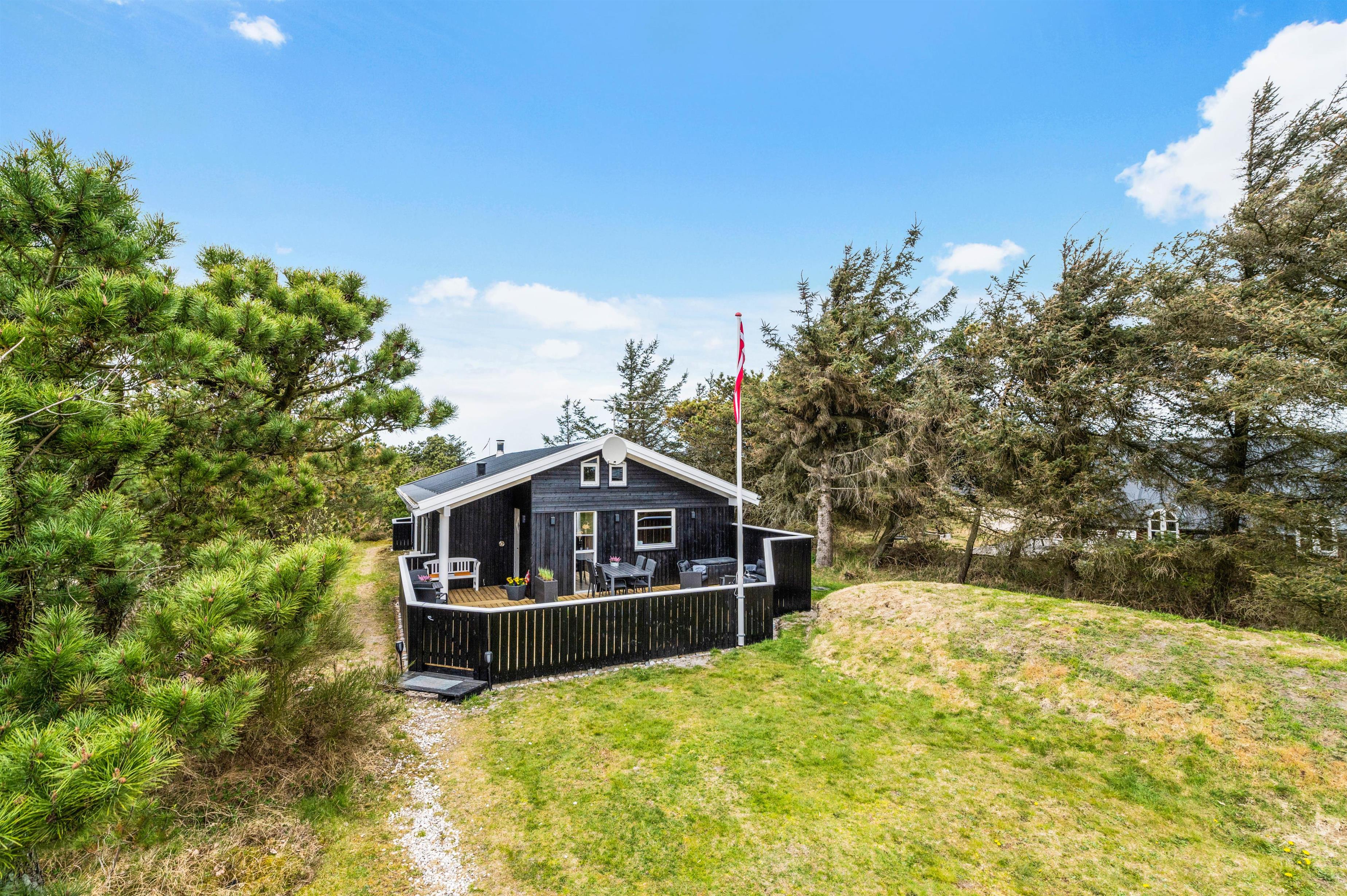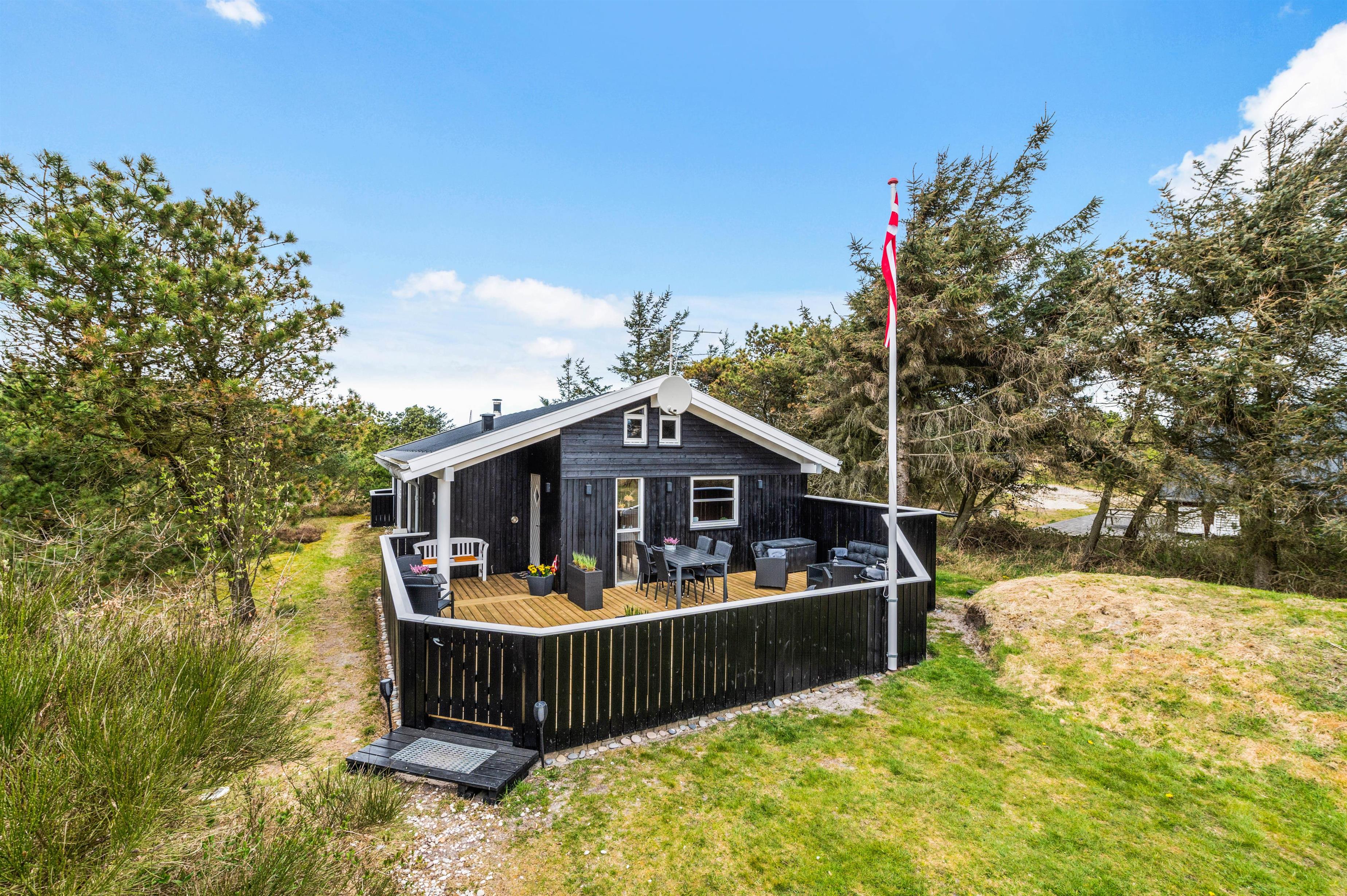 The holiday home sits on a peaceful and sheltered natural plot in Houvig, where you can enjoy an undisturbed family holiday.