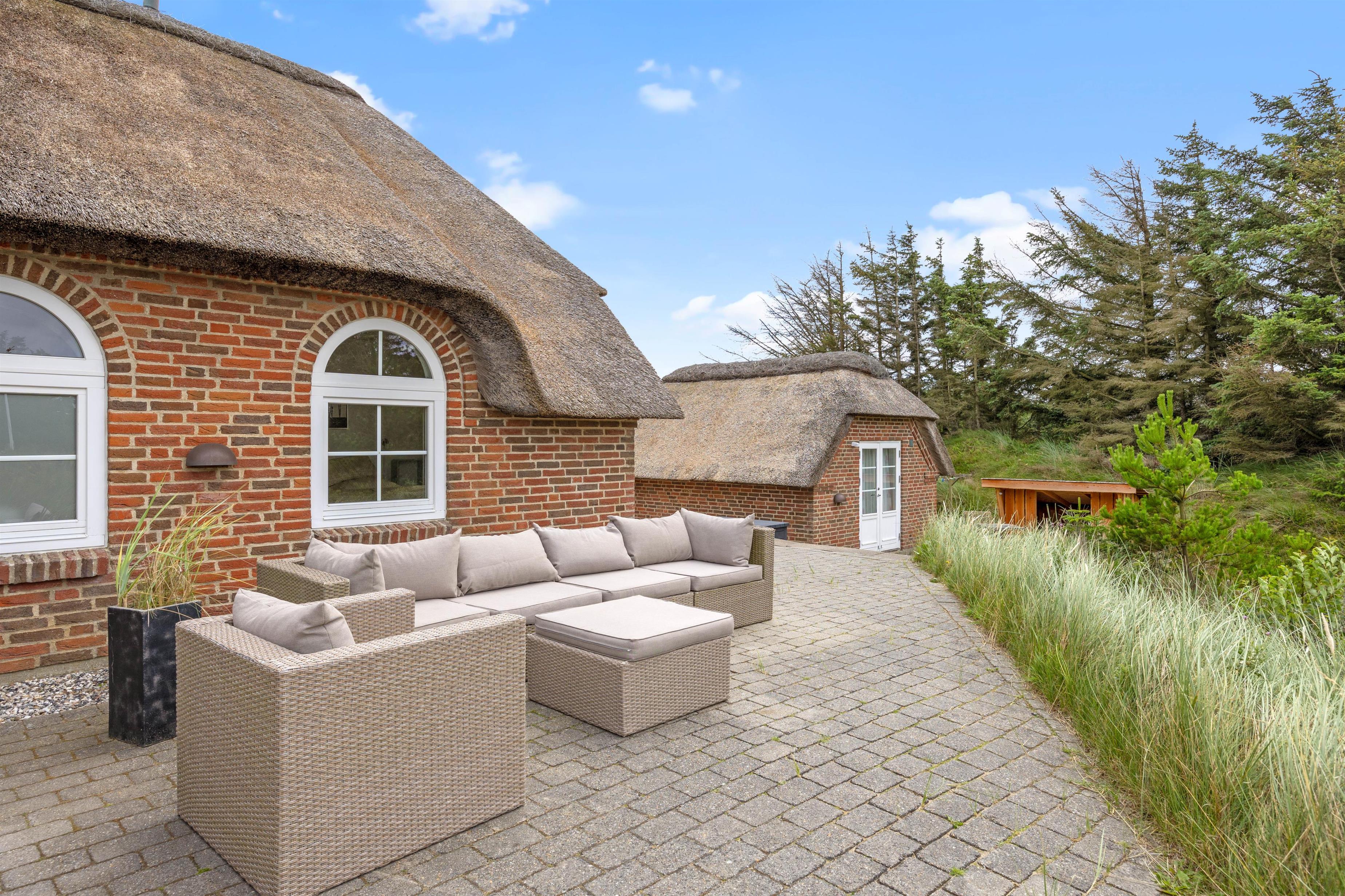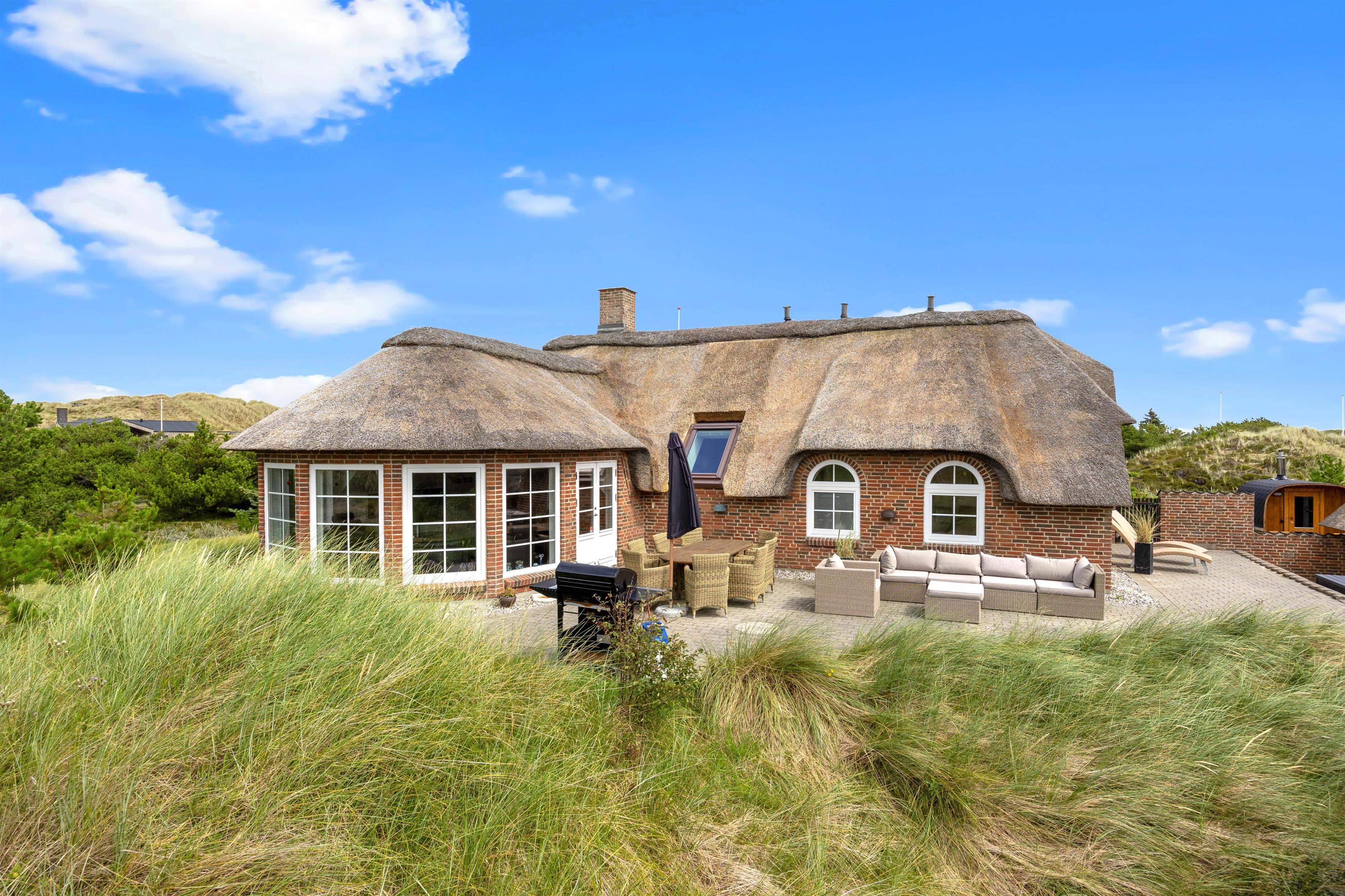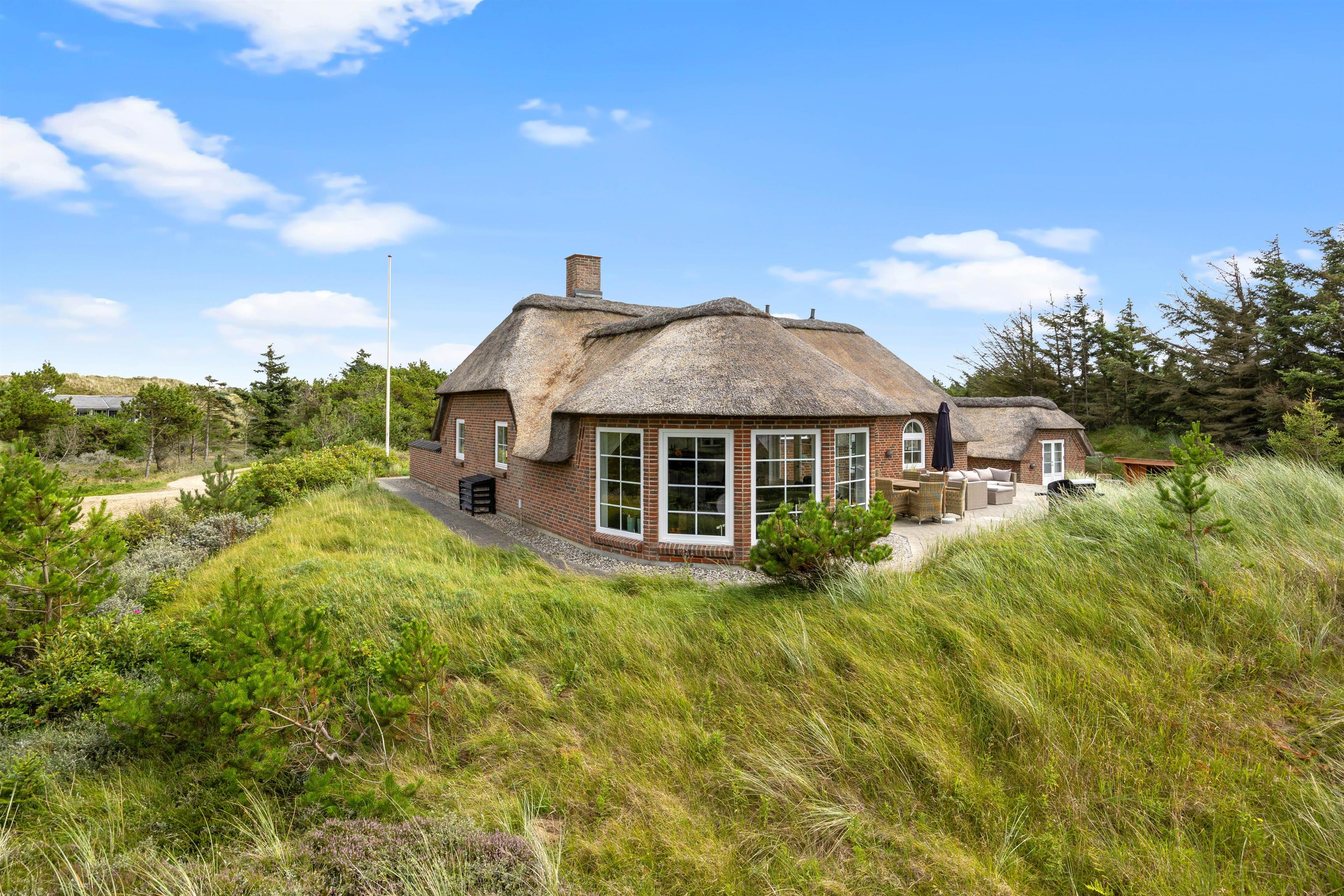 This magnificent thatched holiday home at Sneppedalen 38 in Houvig is perfect for you and your dog if you're looking for a comfortable holiday retreat on the Danish West Coast. The holiday home is situated in a peaceful setting amidst beautiful dune landscapes, just 500 metres from the beach. You'll also find an electric car charging point at the holiday home.
