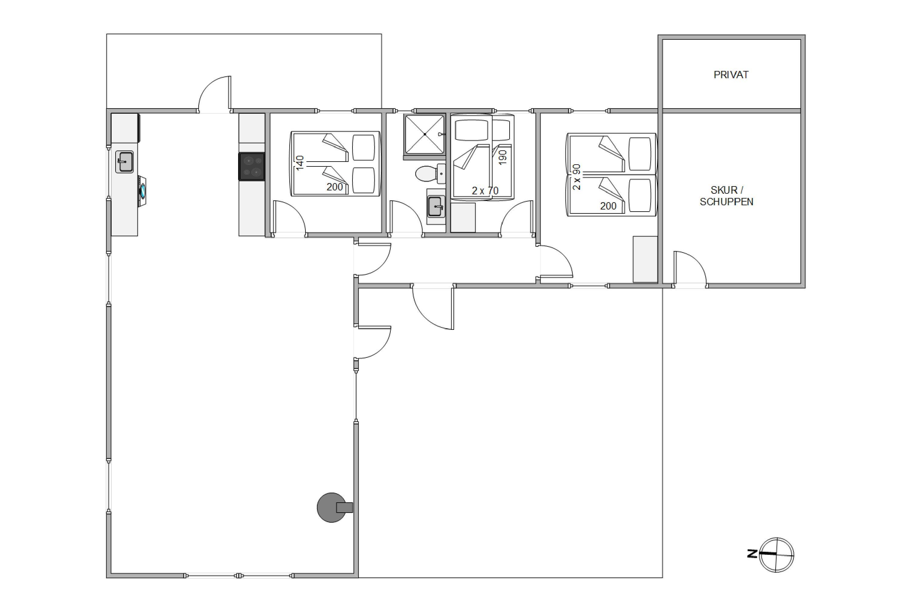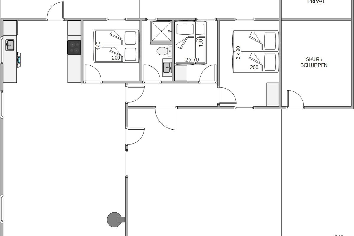 This welcoming holiday home offers 73 square metres of space with three bedrooms and one bathroom featuring underfloor heating. Two bedrooms each have a double bed, while the third bedroom has bunk beds that children will love. The heart of the holiday home is the open-plan kitchen-living area, which brings the whole house together. Here the whole family can gather, whether preparing delicious meals in the kitchen or enjoying exciting game nights around the dining table to determine the holiday champion. The living room features a wood-burning stove that can be lit on cooler days to create a truly cosy atmosphere.