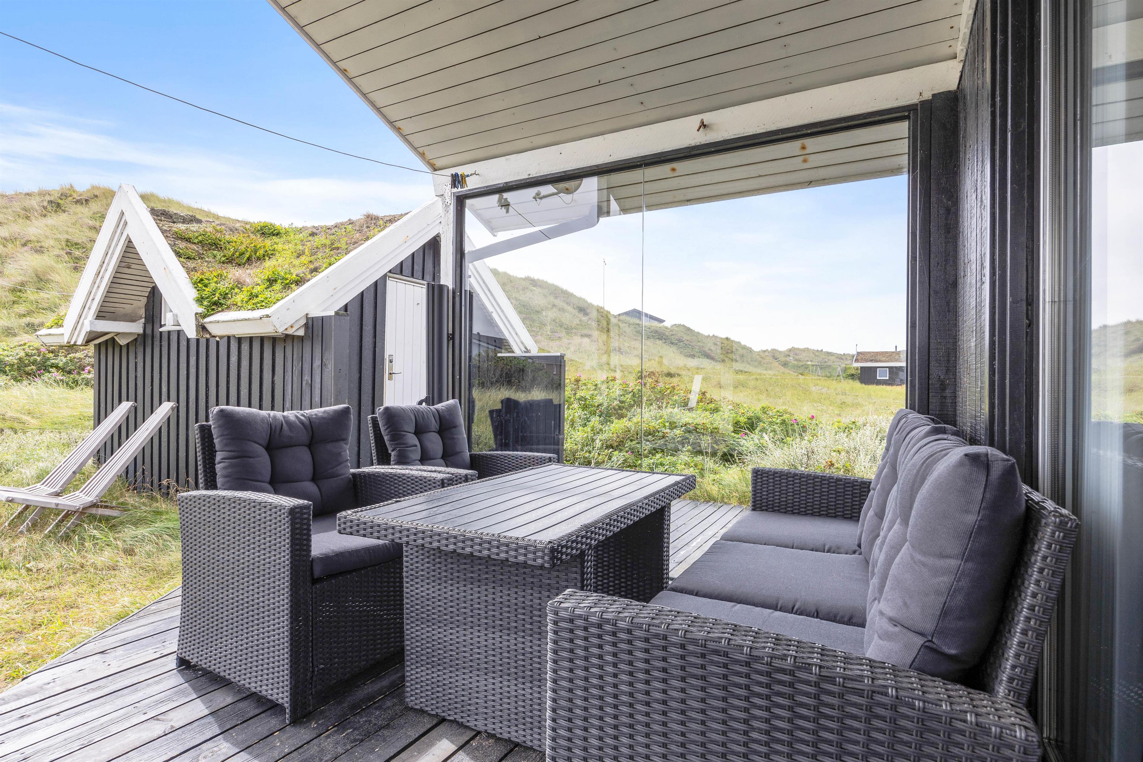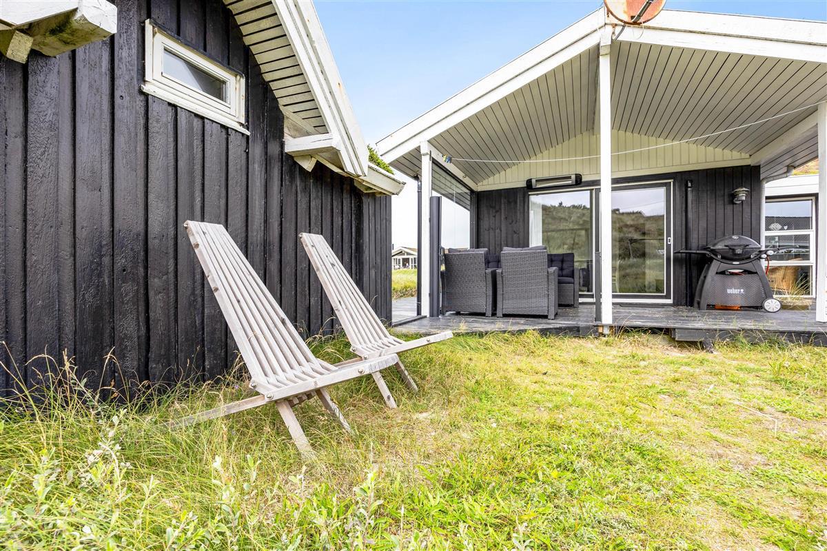 A charming and well-maintained holiday home awaits you at Sortebærdalen 29, Houvig, set on natural grounds. The terrace wraps around the entire house. Inside, the holiday home is bright and tastefully furnished, featuring a well-equipped kitchen and complimentary internet access.