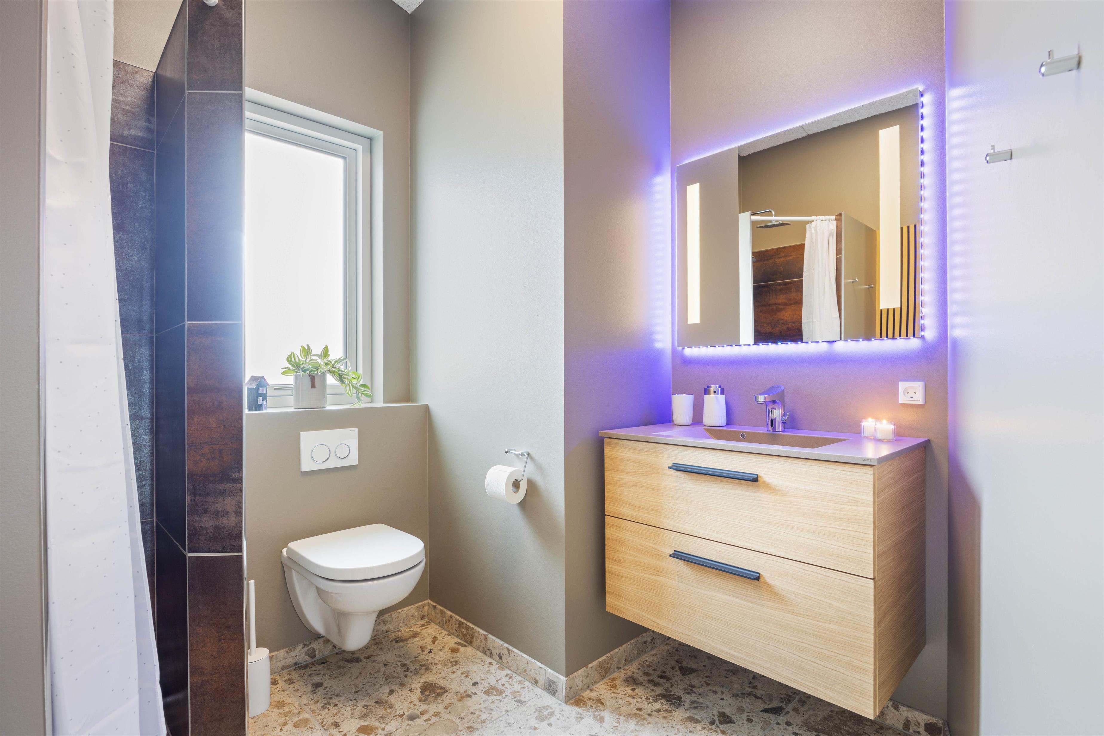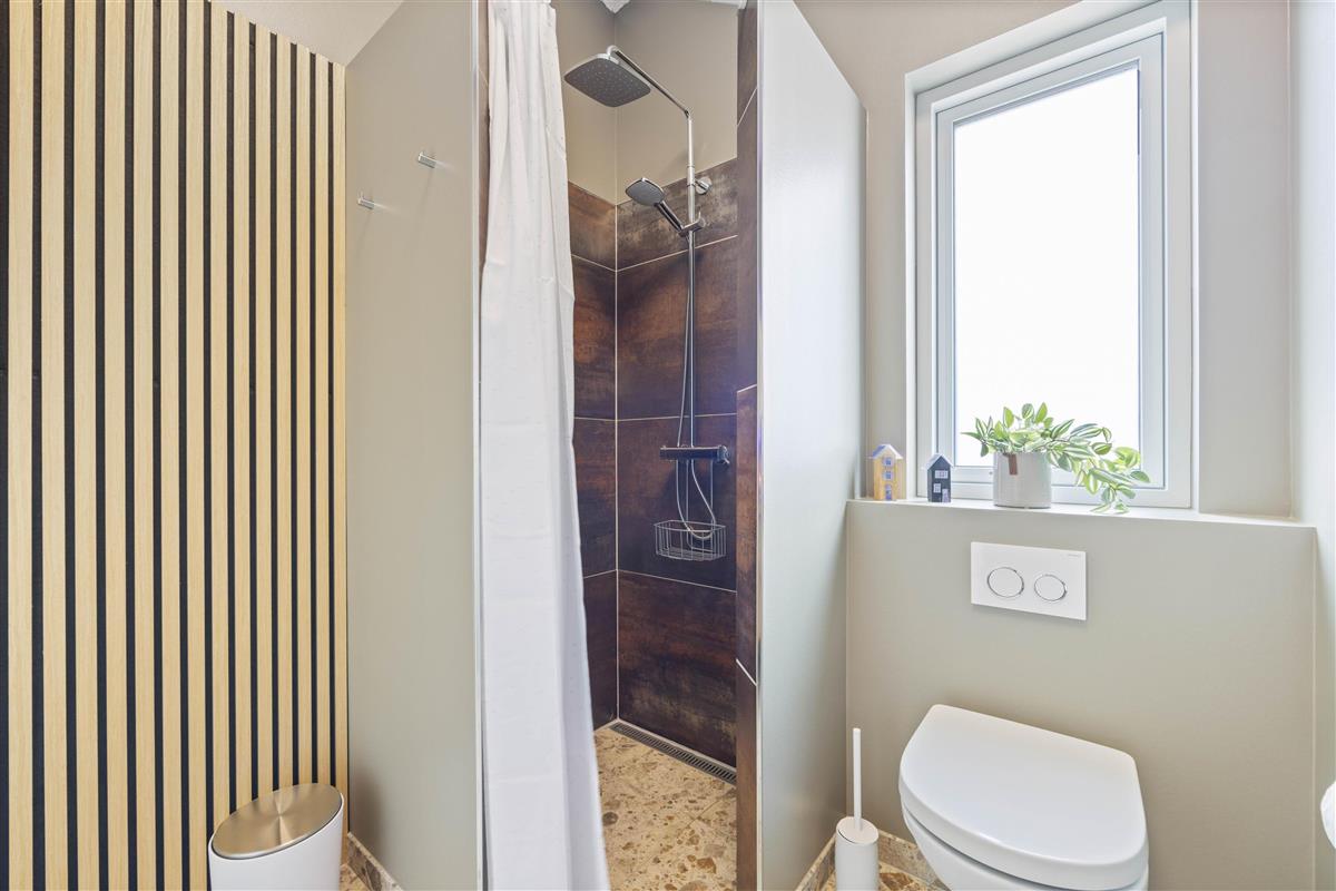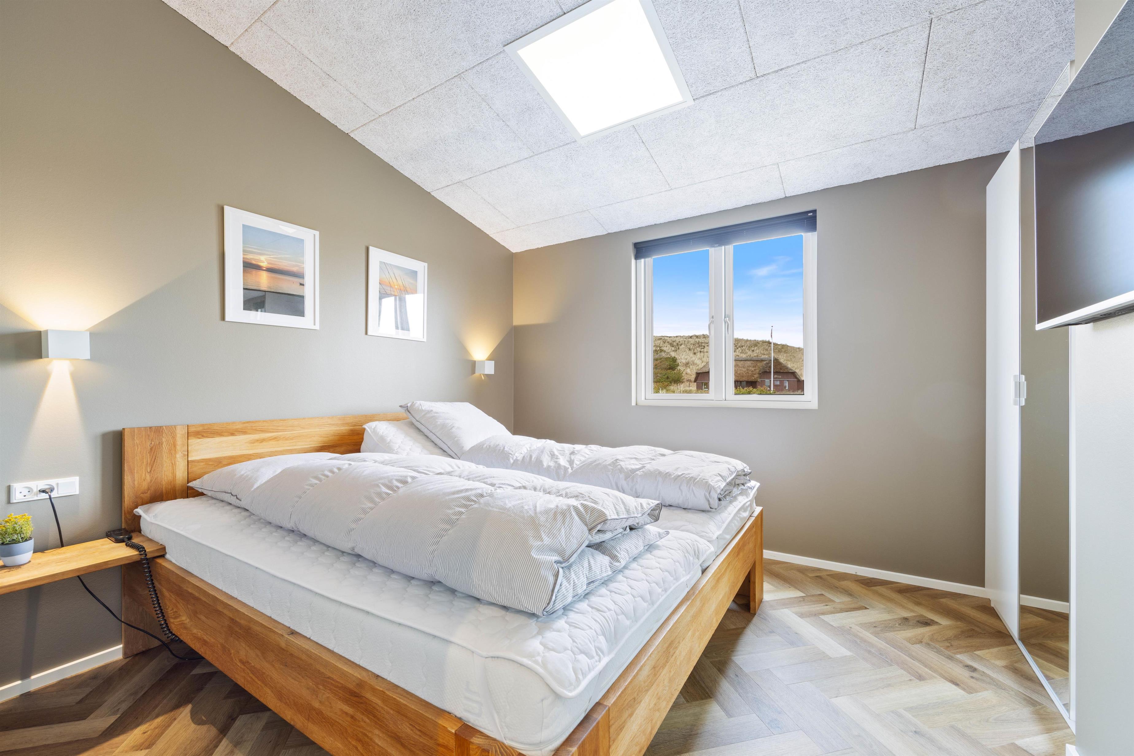 After a long day of holiday adventures, you can retire to one of the three bedrooms. Two bedrooms feature double beds, while the third offers twin beds. The holiday home has two lovely bathrooms, both with underfloor heating. One bathroom includes a private sauna, which is sure to be a highlight of your stay. Here you can relax, forget the hustle and bustle of everyday life, and let your mind wander.