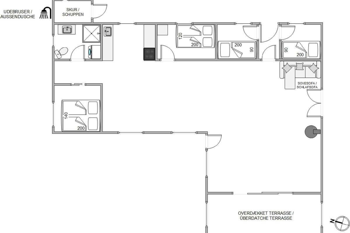The holiday home at Vibedalen 11 in Houvig sits on approximately 1,200 square metres of natural grounds, offering plenty of space for your dog and children to explore. Little ones can build sandcastles in the sandpit, while older children can enjoy the swing. Meanwhile, you can relax on the terrace with a cold drink, soaking up the sunshine. On mild summer evenings, you can round off a perfect holiday day with a barbecue. An outdoor shower is available from April to November for rinsing sandy feet.