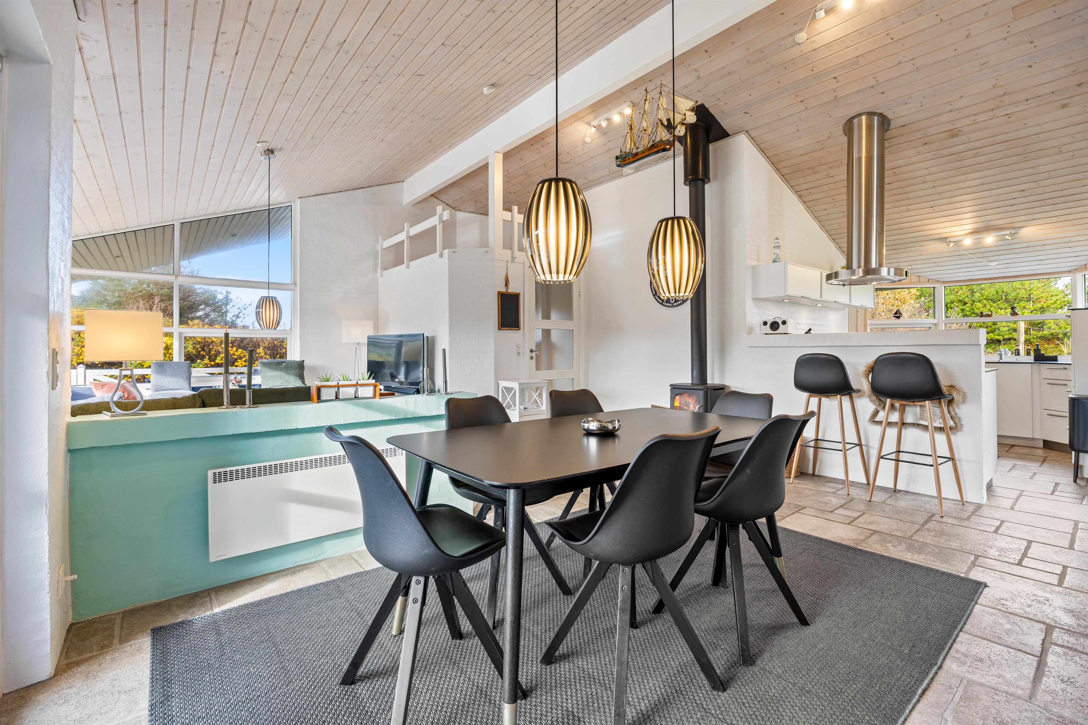 The spacious, open-plan dining and living area forms the heart of the house and is perfect for spending time together. High ceilings and numerous windows create a sense of space and plenty of natural light. Even when the weather isn't at its best, you can still enjoy the views.