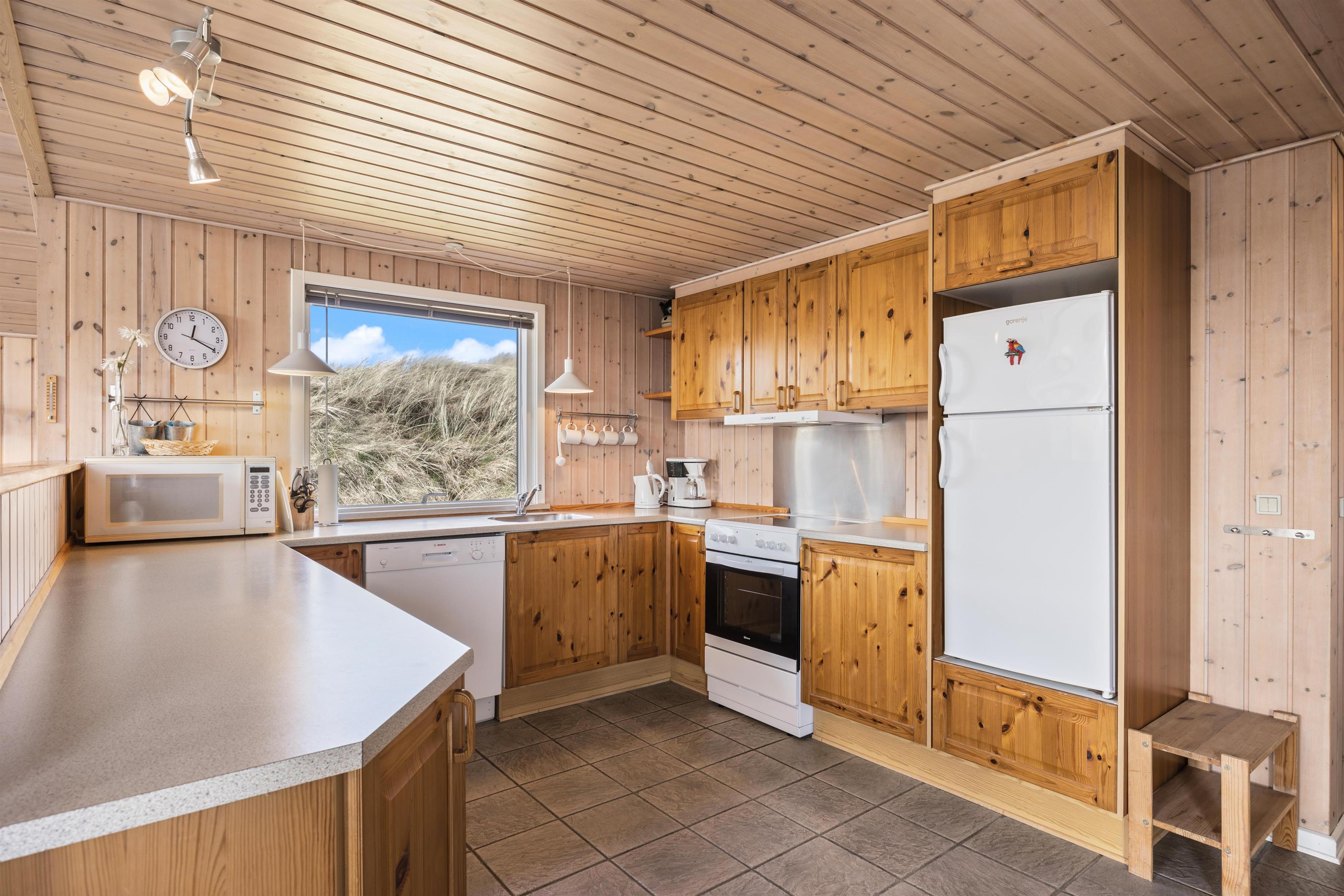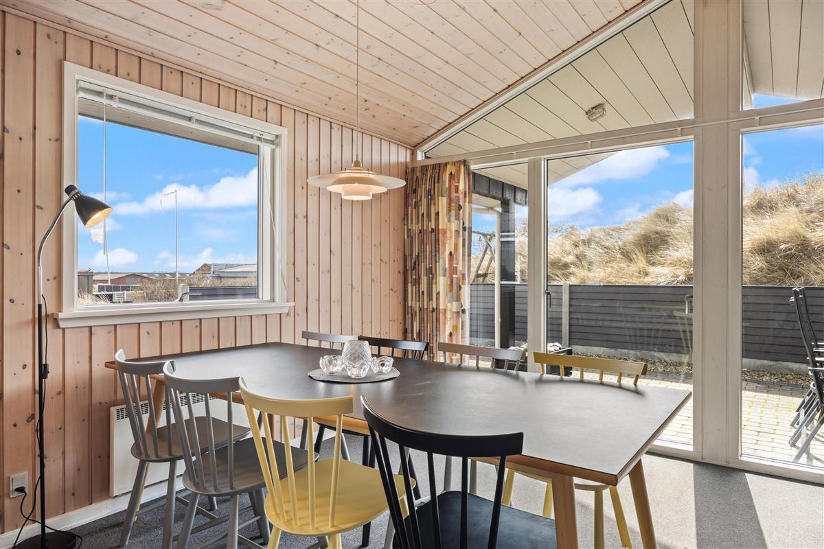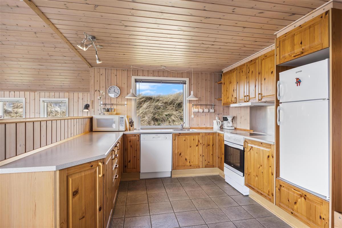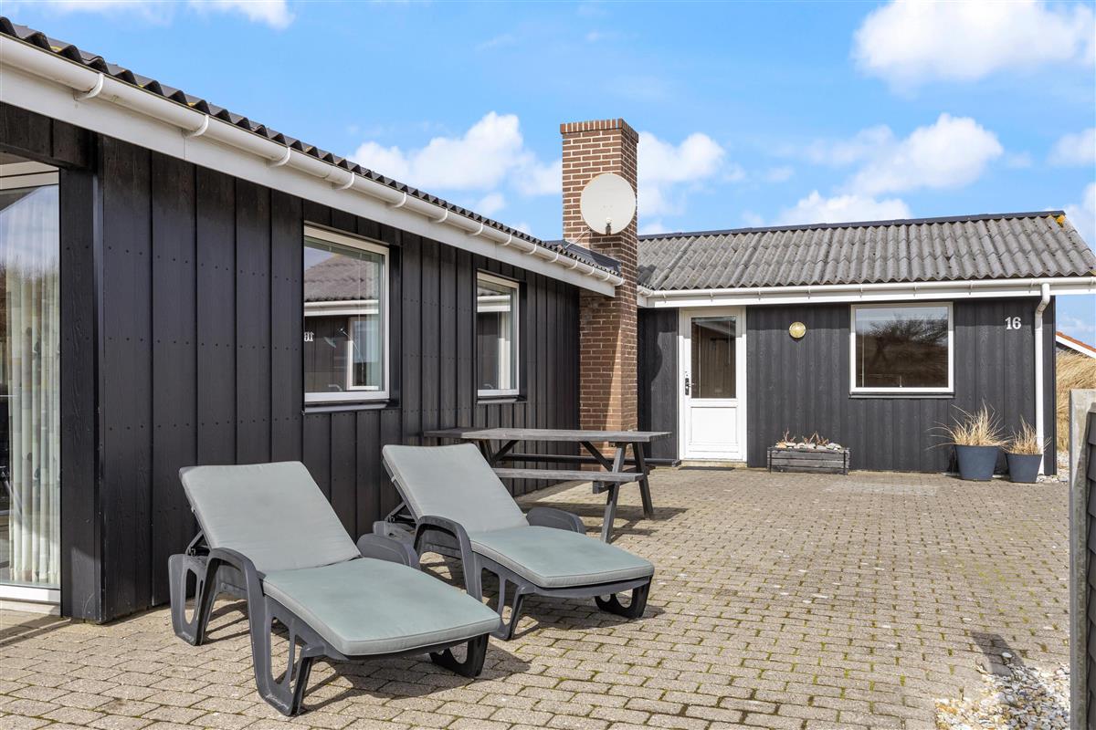 Das Ferienhaus steht auf einem Naturgrundstück inmitten der schönen Dünenlandschaft von Dänemarks Westküste. Hier könnt ihr am Morgen den ersten Kaffee beim Sonnenaufgang genießen und entspannen. Es stehen euch Gartenmöbel zur Verfügung, auf denen ihr es euch bequem machen könnt. Am Abend, wenn eure Köstlichkeiten auf dem Grill brutzeln, lehnt euch zurück und lauscht dem Meeresrauschen. Sollte das Wetter einmal umschlagen ist das kein Problem, da ein Teil der Terrasse überdacht ist. Seitlich vom Ferienhaus führt eine kleine Treppe auf die Düne, wo ihr einen schönen Rundumblick habt.