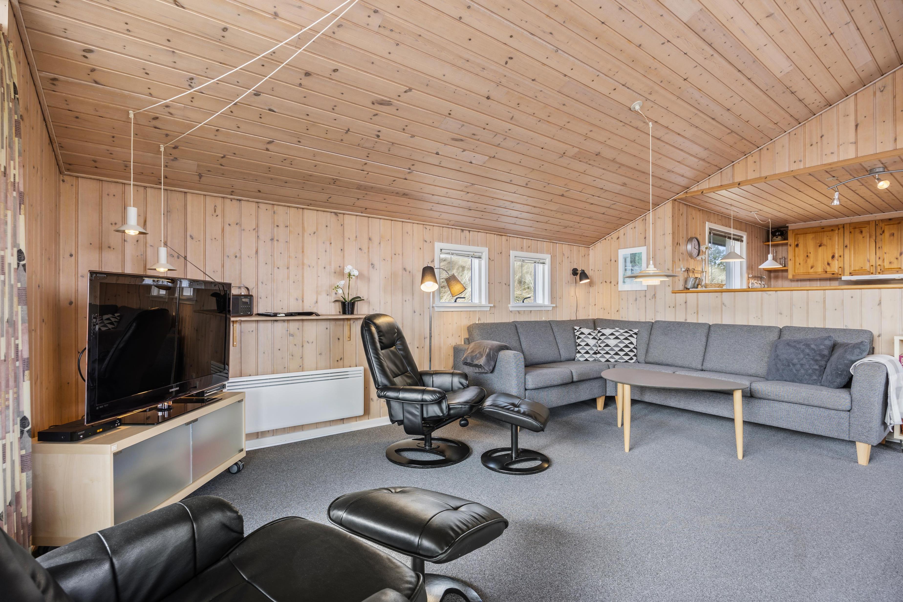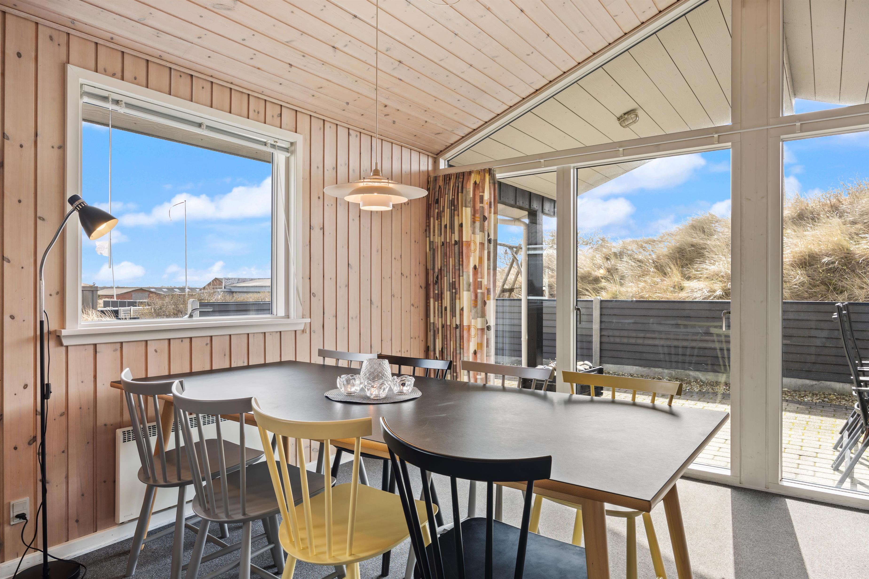 Das Ferienhaus liegt in der wunderschönen Dünenlandschaft Dänemarks, wo ihr Ruhe und Erholung findet. Der Strand liegt ca.550 m entfernt, also ein kurzer Spaziergang, und ihr könnt die Nordsee mit all ihren Facetten genießen. Faszinierend ist sie immer, egal ob ihr im Sommer ein erfrischendes Bad genießt oder euch im Herbst neue Frisuren kreieren lasst.