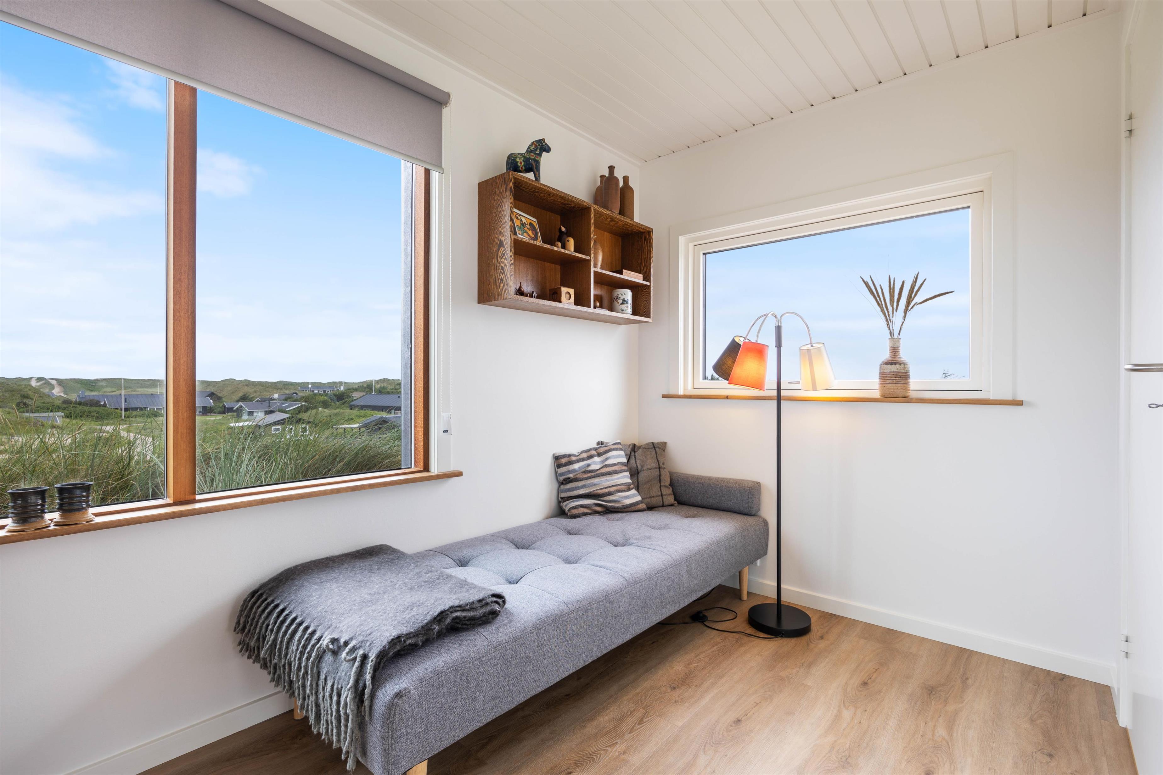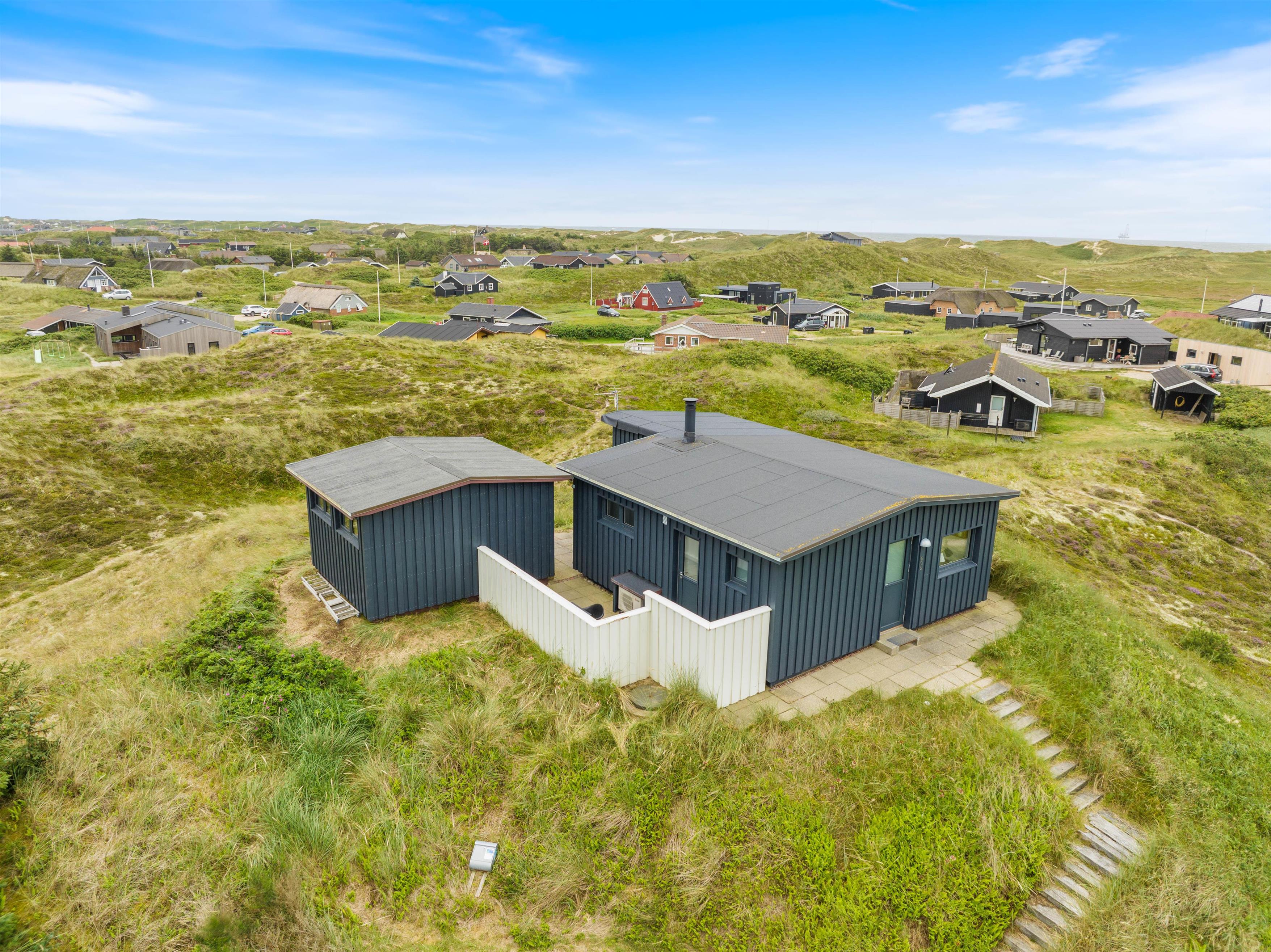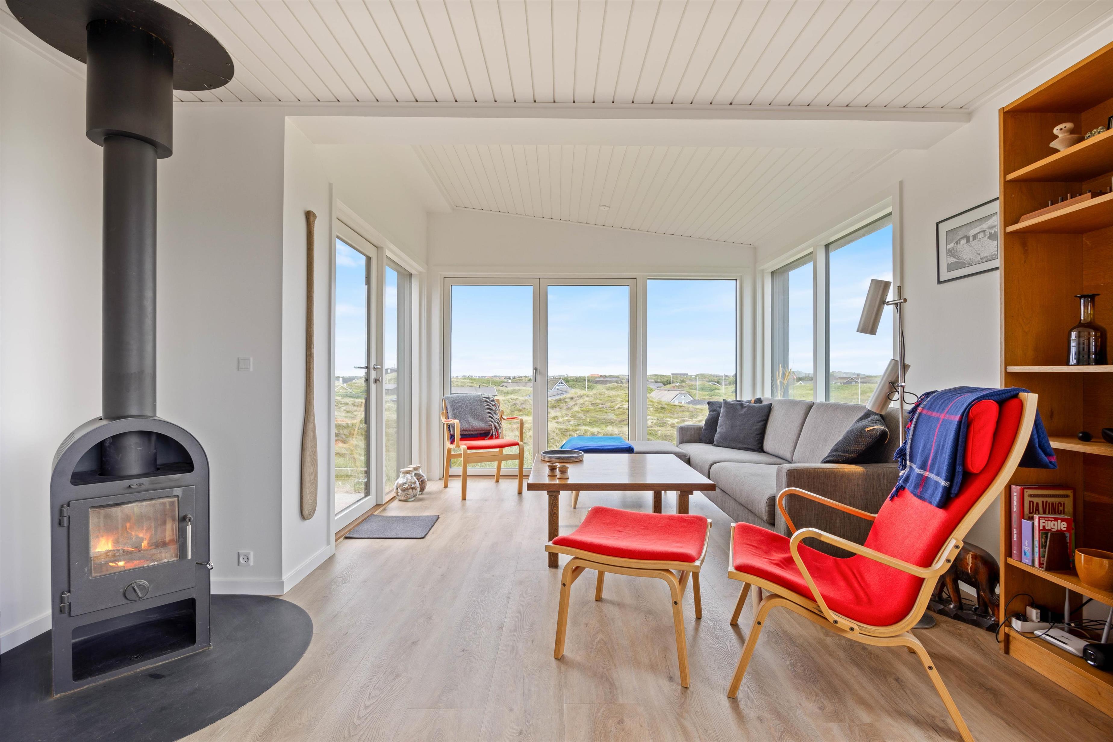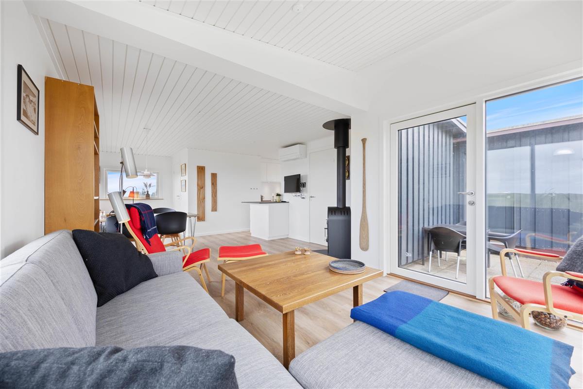 This charming 48-square-metre holiday home with wood-burning stove sleeps 4 and offers fantastic views over the beautiful dune landscape of Houvig. The wood-burning stove and integrated heat pump ensure comfortable warmth throughout.
