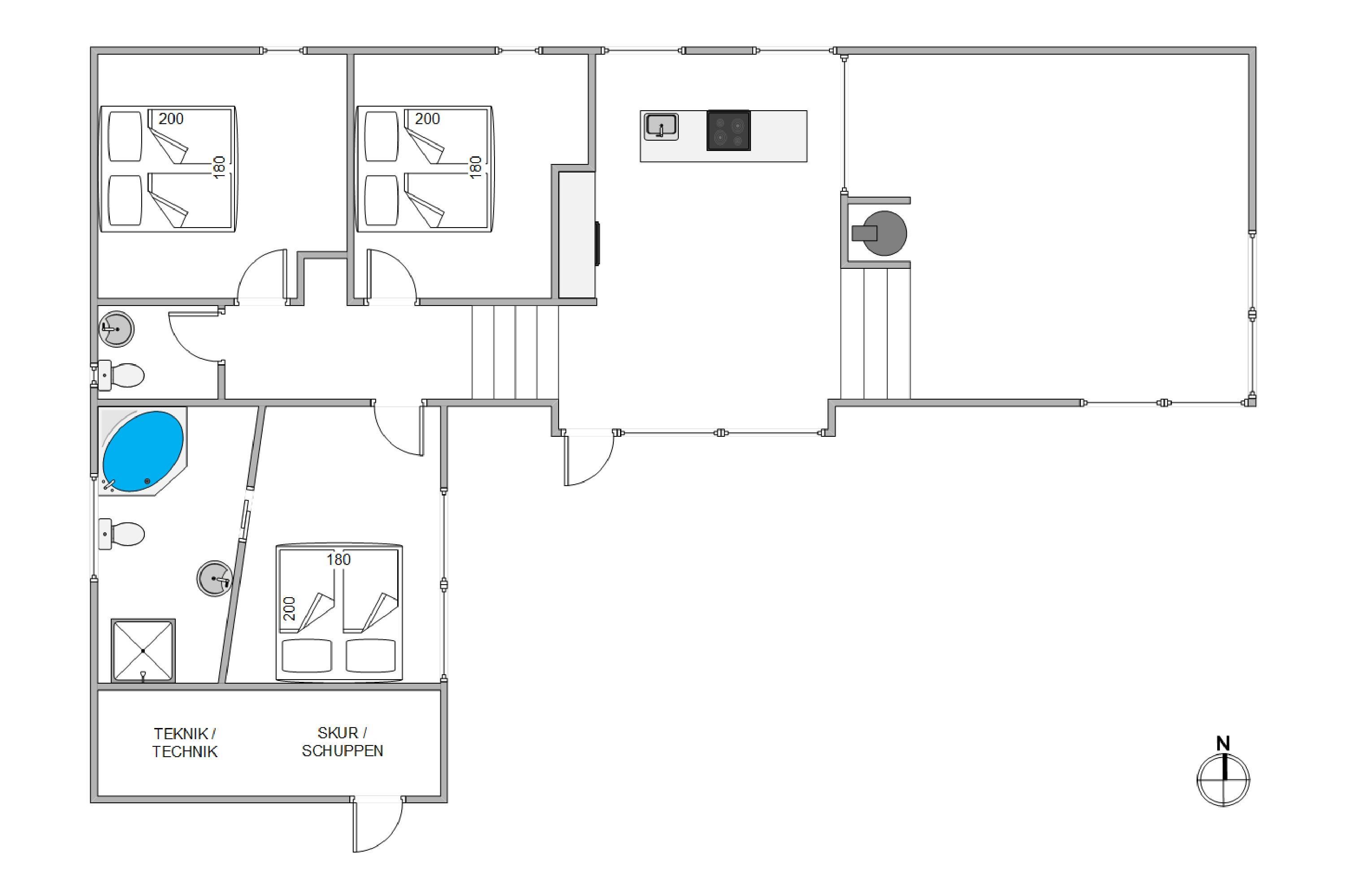 The beach is only 200 metres from the house, making it easily accessible even with small children. If the weather changes, you can quickly return to the holiday home and continue relaxing there.