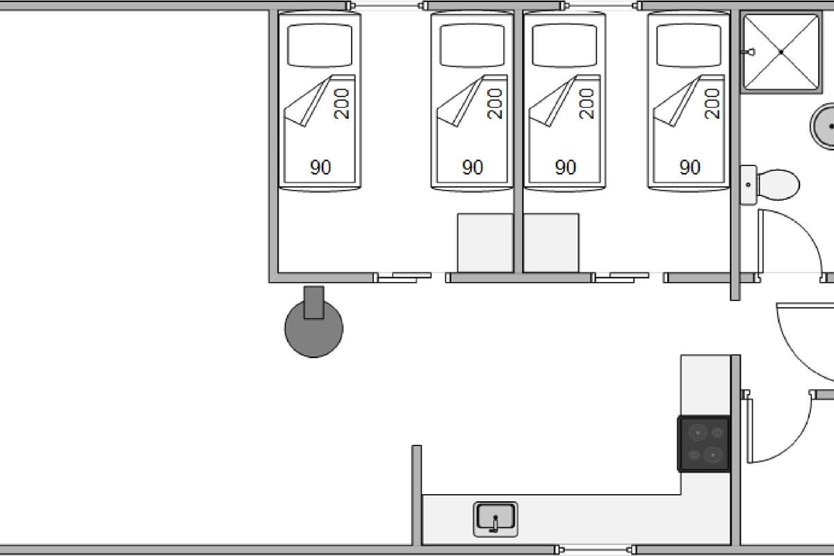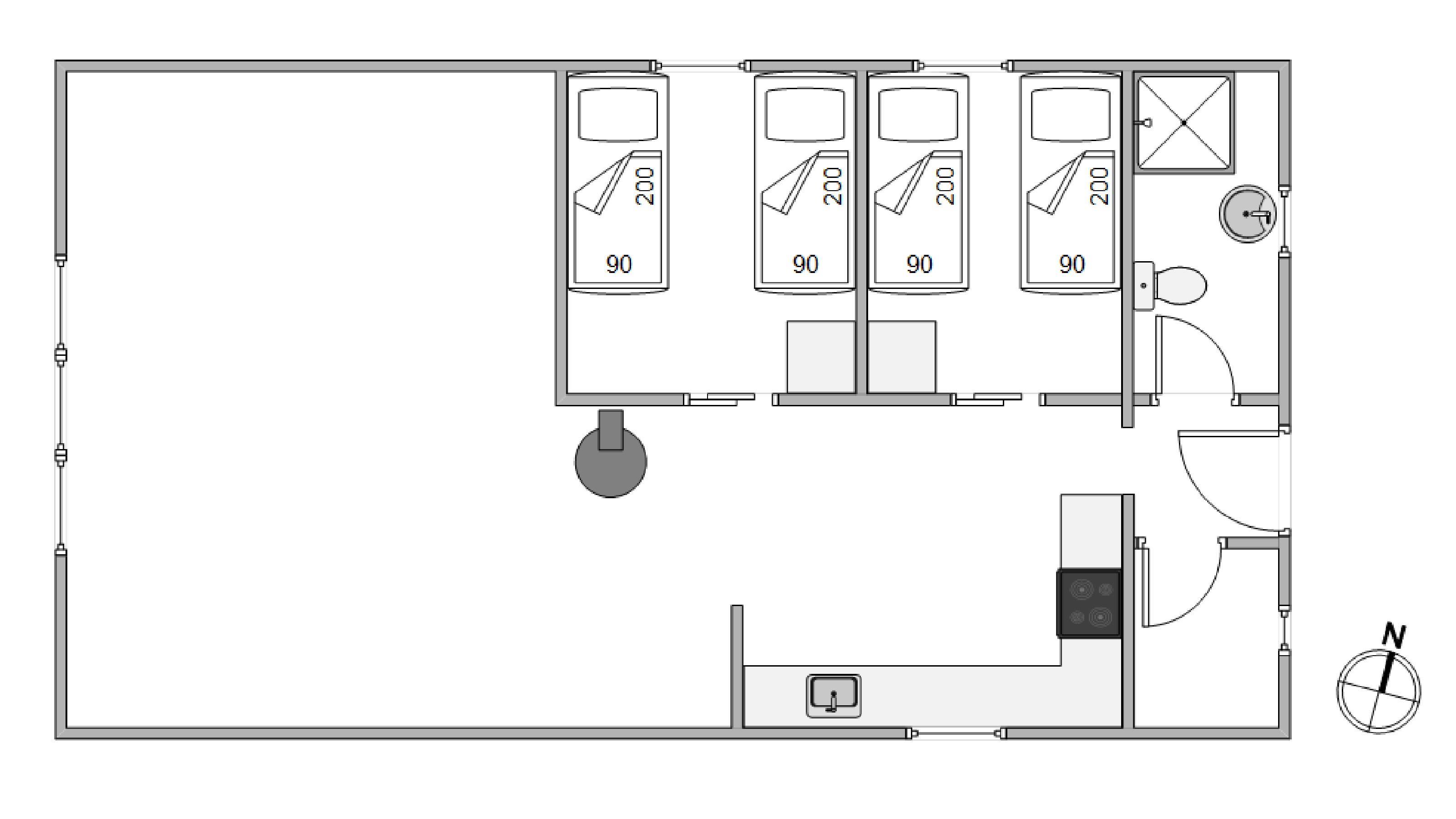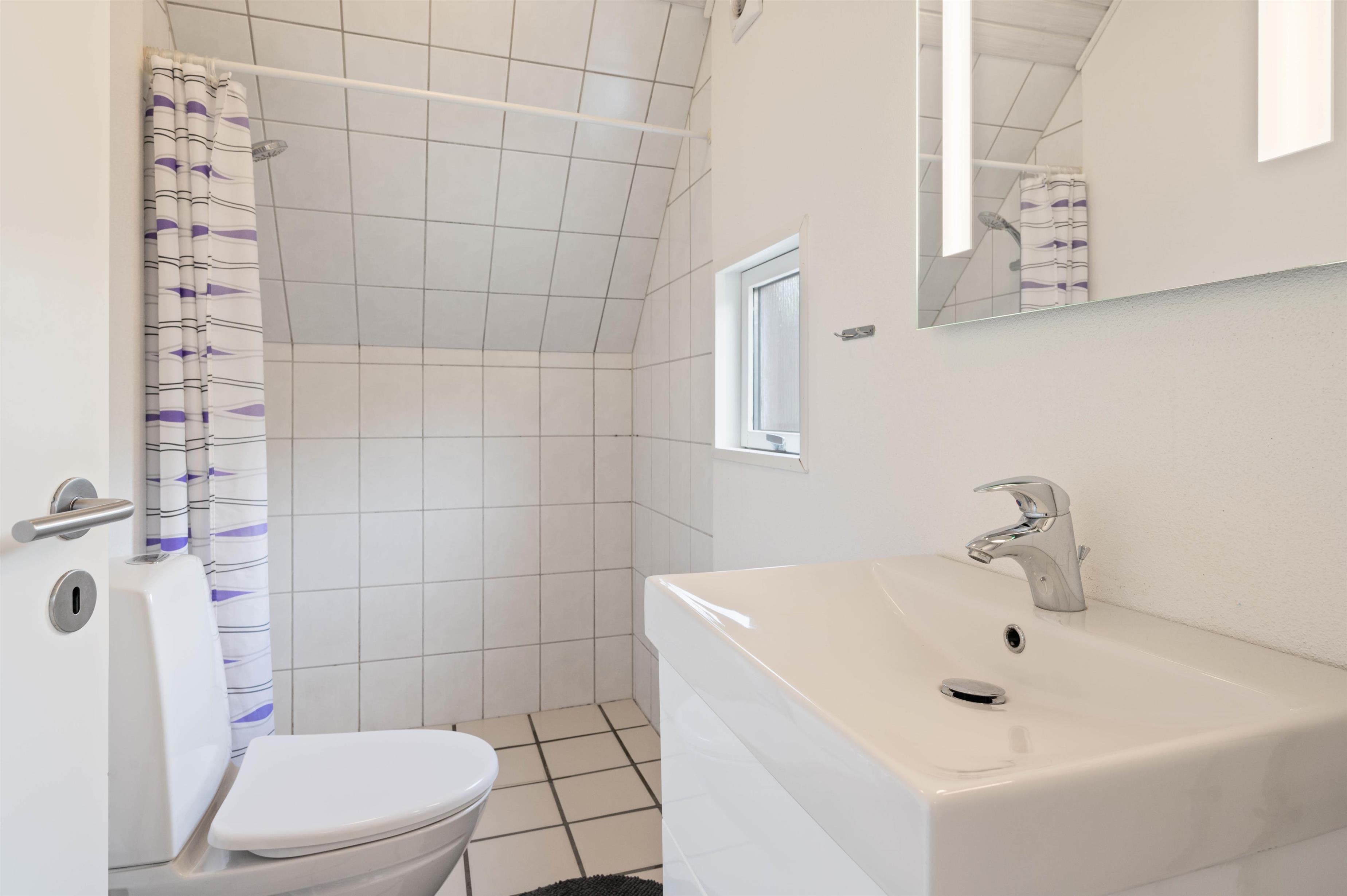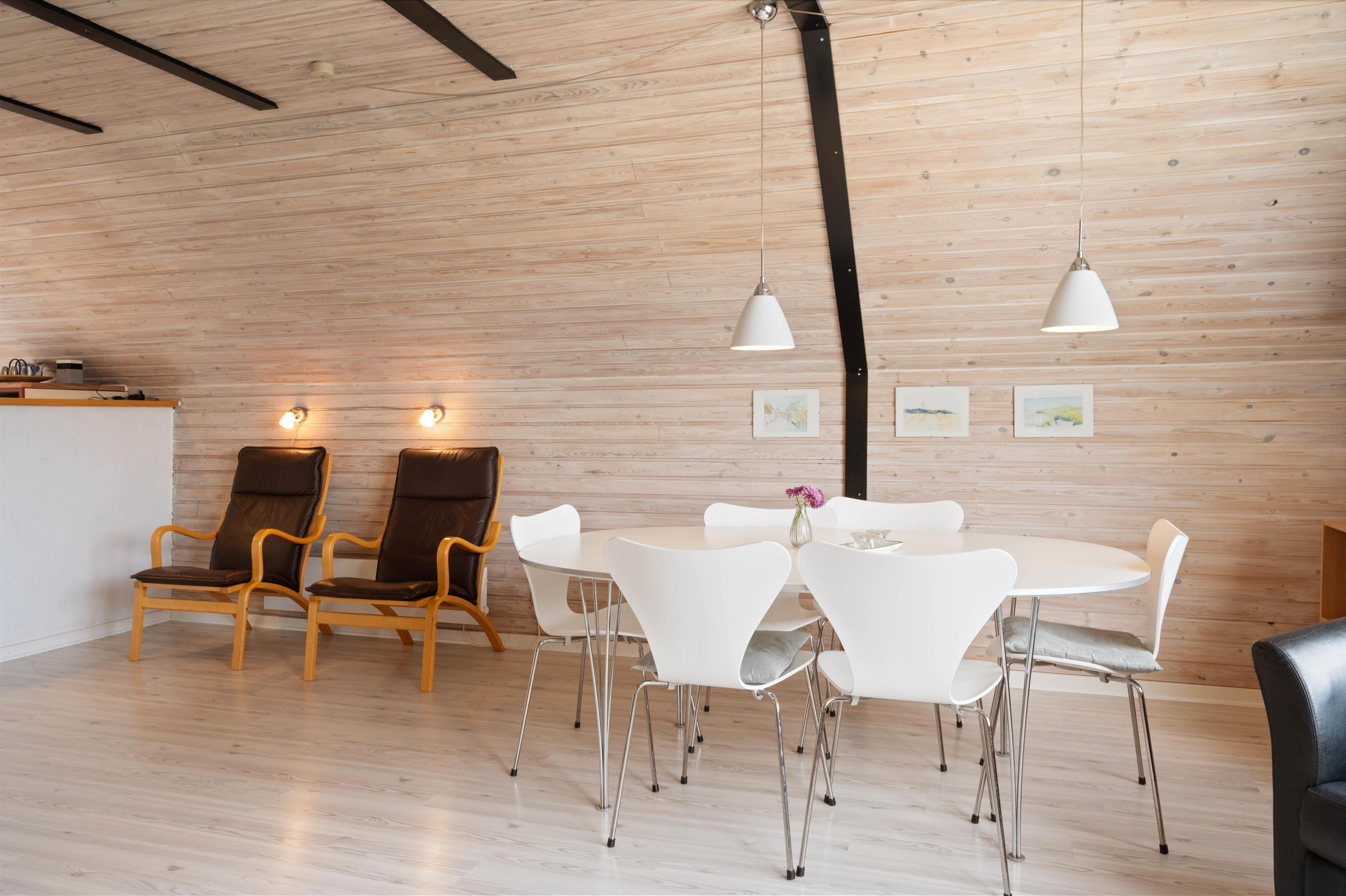 The holiday home has two bedrooms, each fitted with twin beds. Like the rest of the holiday home, these rooms feature cosy wood-panelled walls and light flooring that runs throughout the house. There's also a lovely, functional bathroom with shower and tiled floor. The integrated heat pump provides energy-efficient heating throughout.