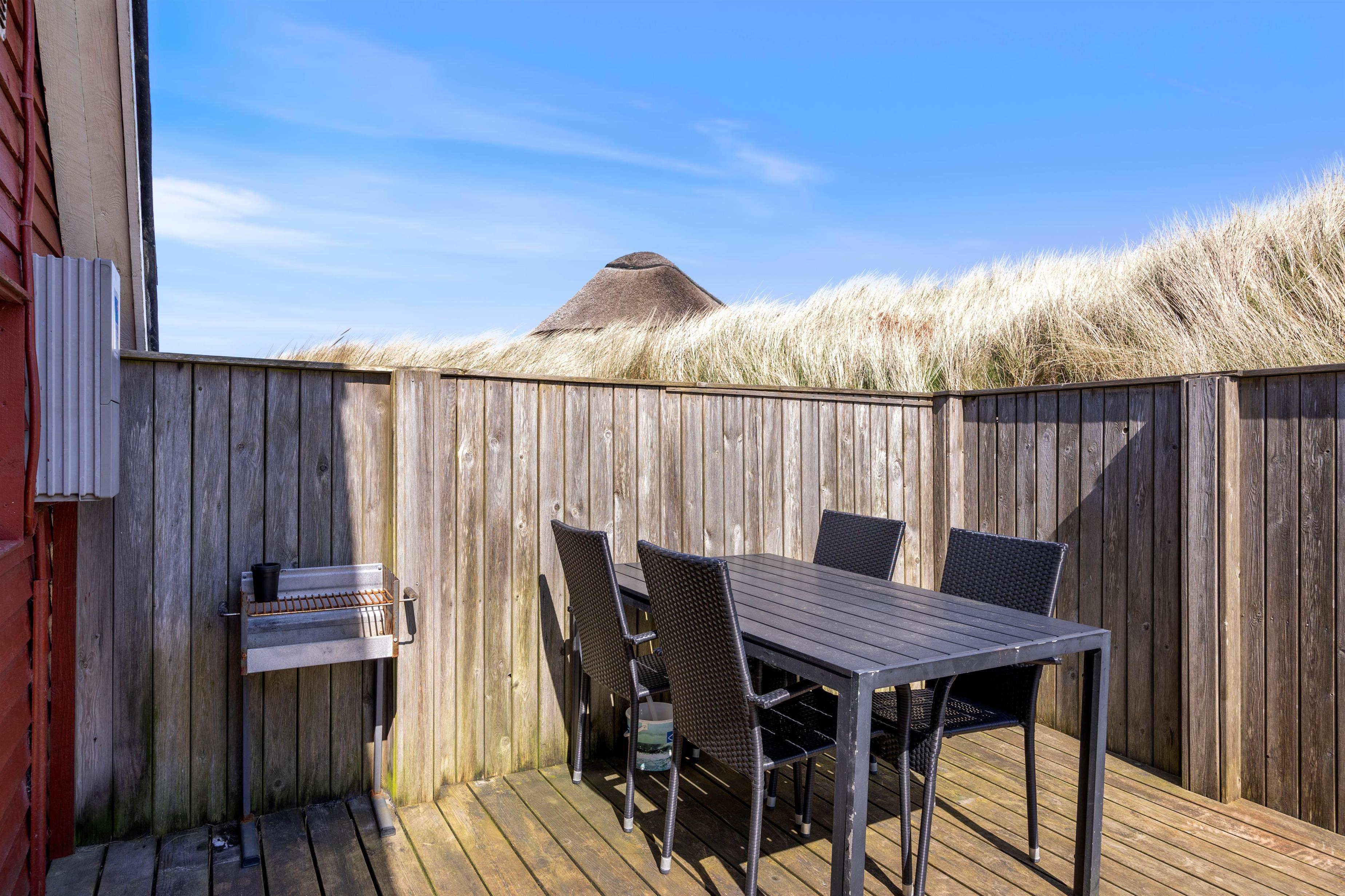 On the terrace, you can truly enjoy your holiday with sunbathing and relaxation. Garden furniture and a barbecue are provided for grilling your steaks over the coals. The terrace is practically fenced, making it ideal for families with small children and dog owners, preventing little ones from wandering off on their own.