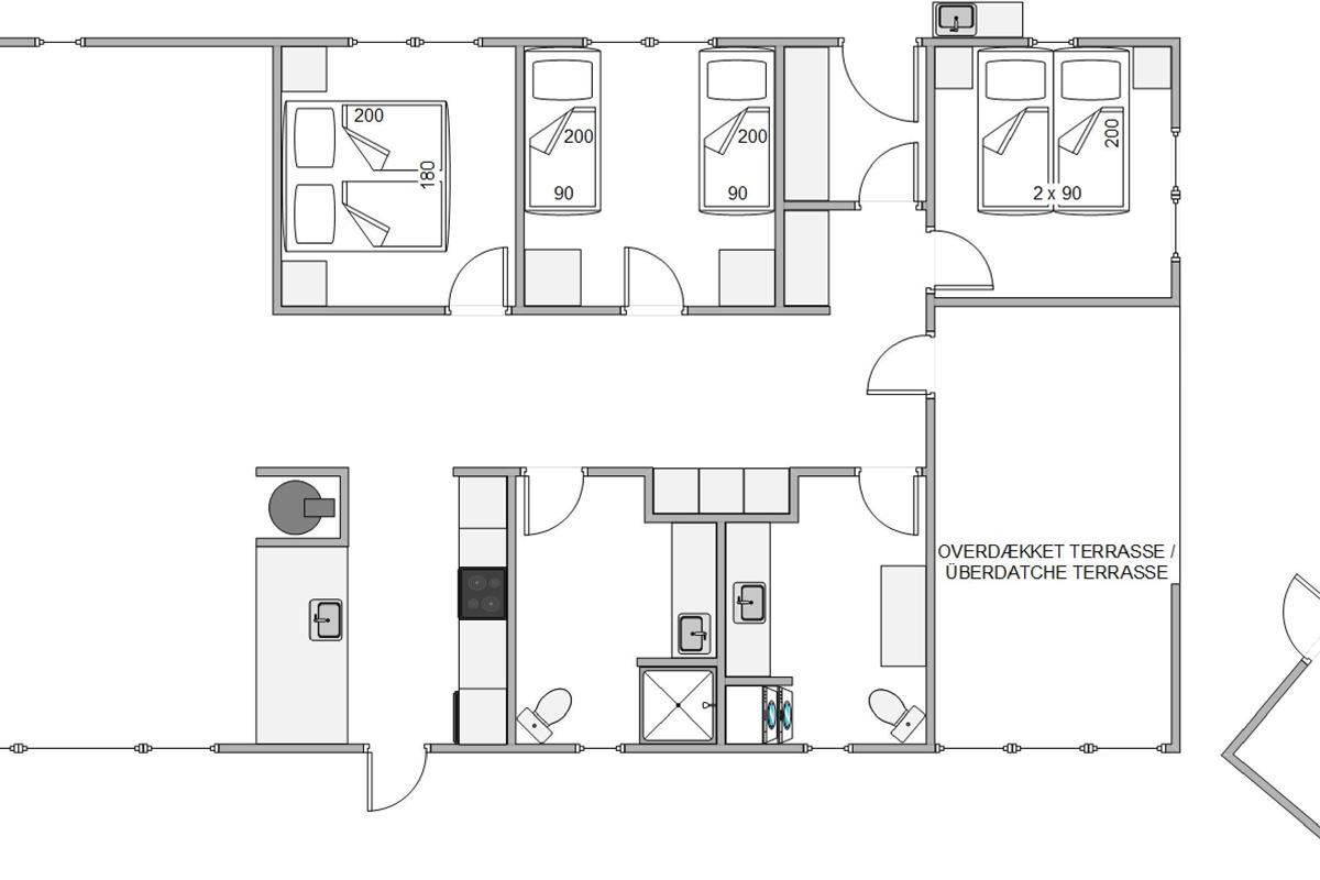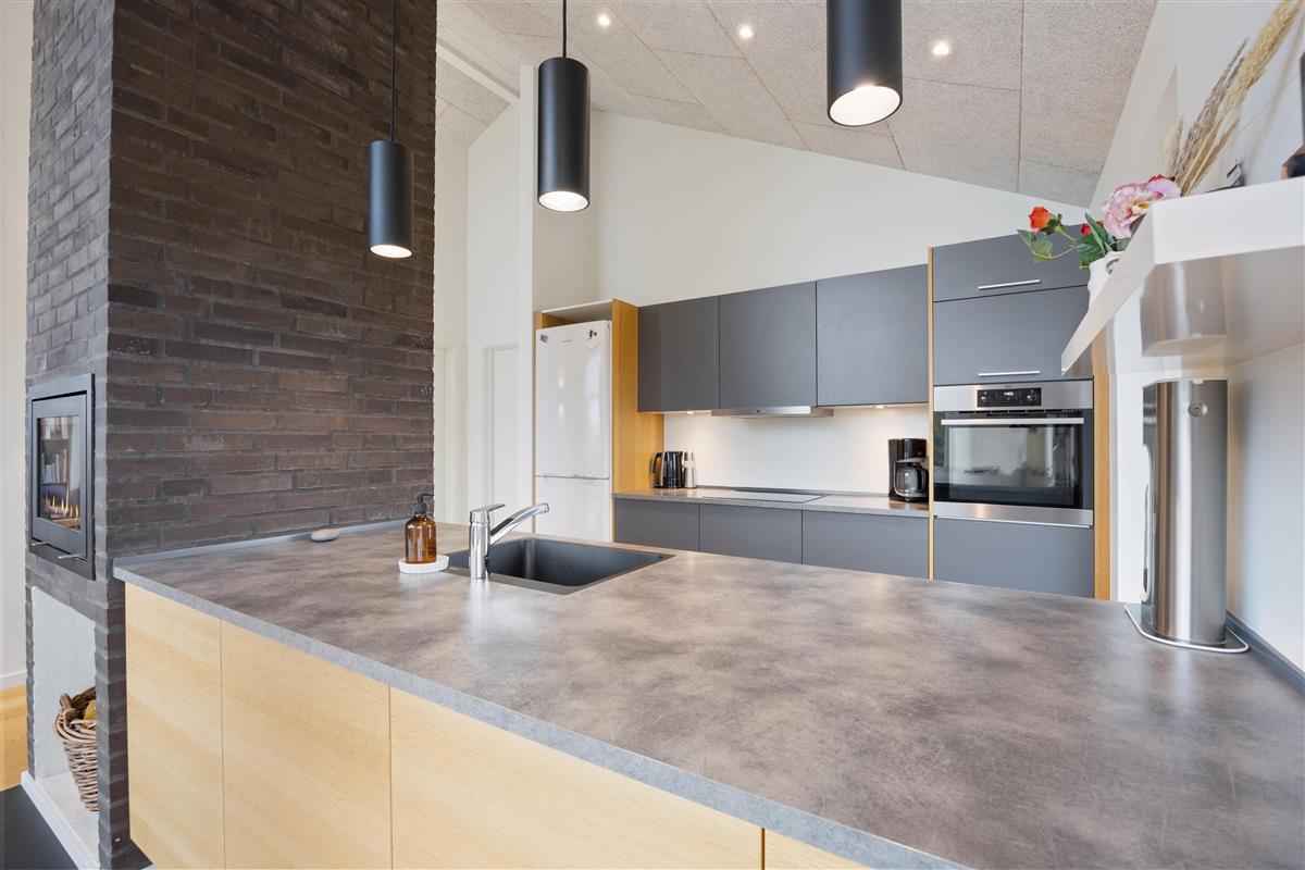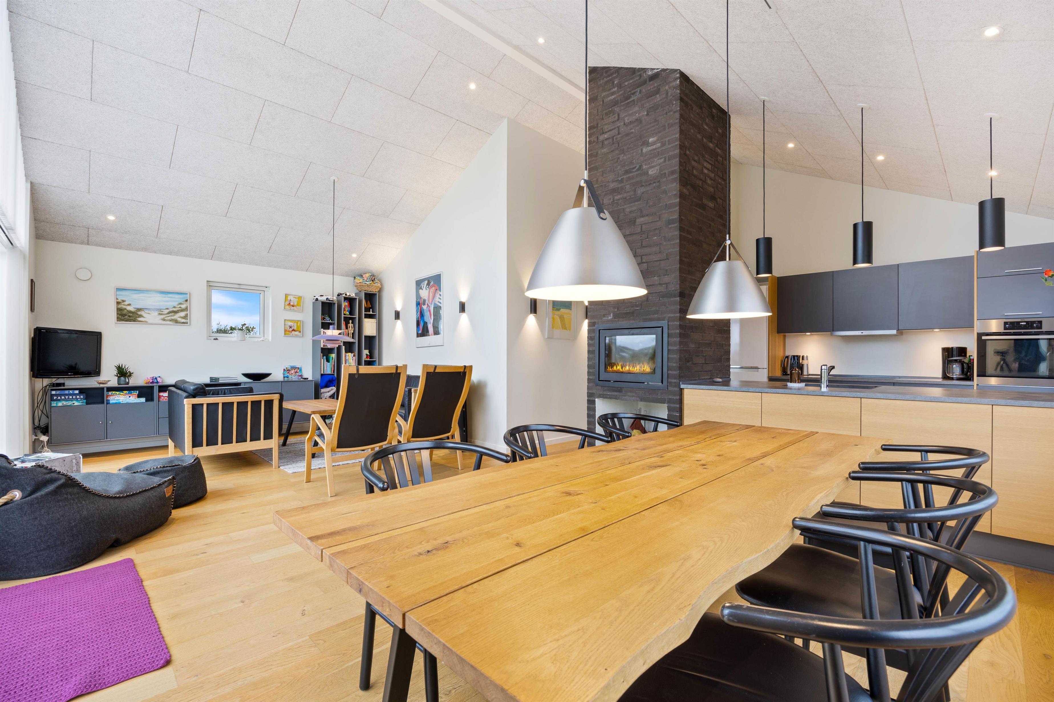 This Houvig holiday home welcomes you with its cosy atmosphere and carefully curated interior design that enhances the comfort factor. The holiday home sleeps 6 people across 3 bedrooms, with the master bedroom featuring a double bed and the other two bedrooms each containing twin beds.