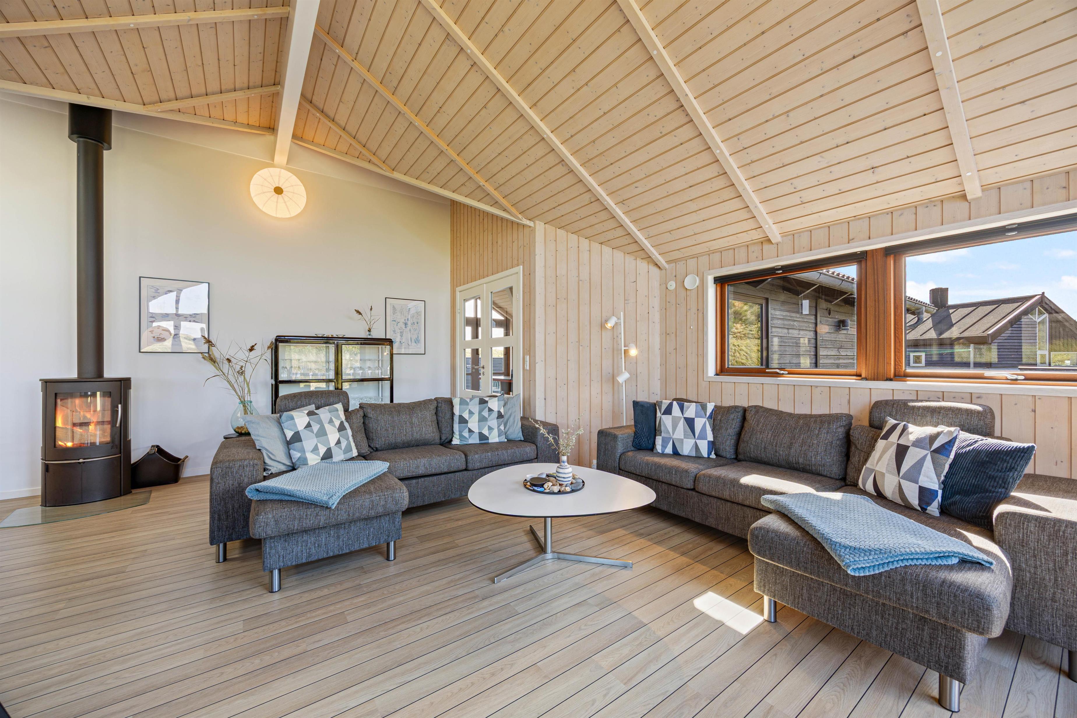 This modern, light-filled holiday home guarantees memorable holidays throughout the year. The energy-efficient heat pump and cosy wood-burning stove ensure a comfortable temperature. The modern, well-equipped open-plan kitchen connects to the living area. This welcoming space invites you to spend many wonderful holiday hours together. Here you can prepare shared holiday meals and gather around the long dining table to plan the next day's activities.