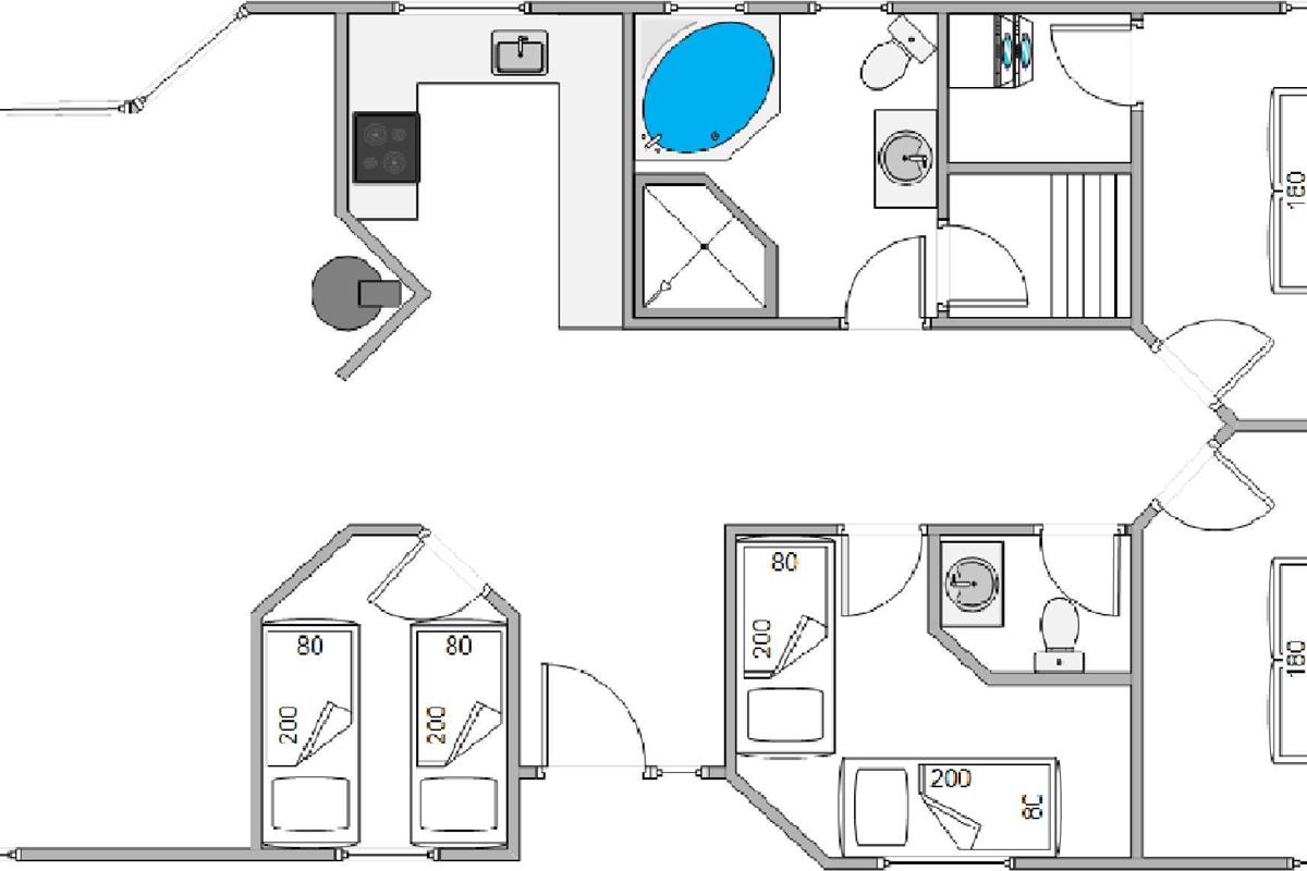 This 112-square-metre holiday home was renovated in 2022. It features four bedrooms: two with double beds and two with twin beds. The bathroom provides direct access to a sauna and whirlpool, offering the perfect space to unwind and enjoy some wellness time during your stay.