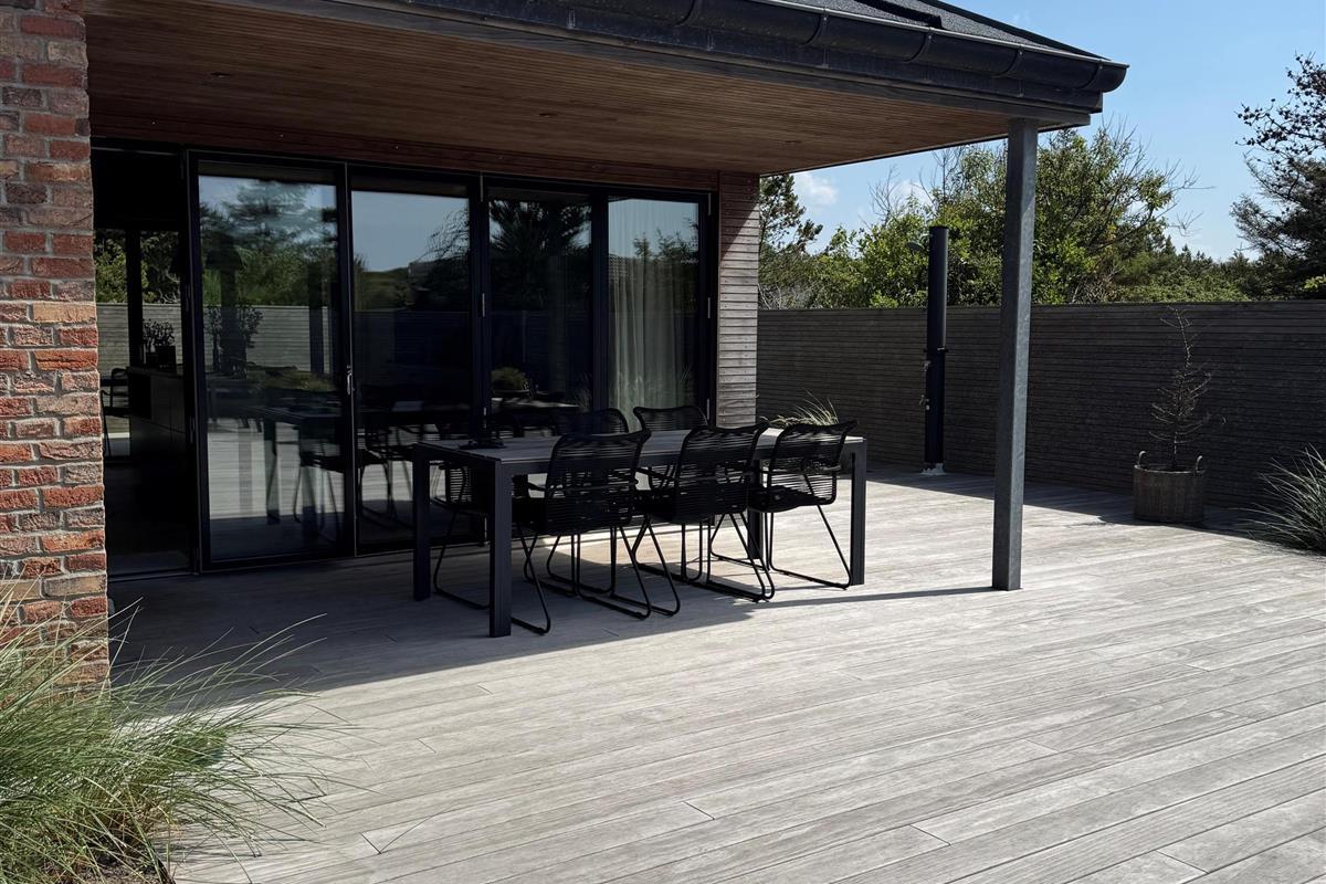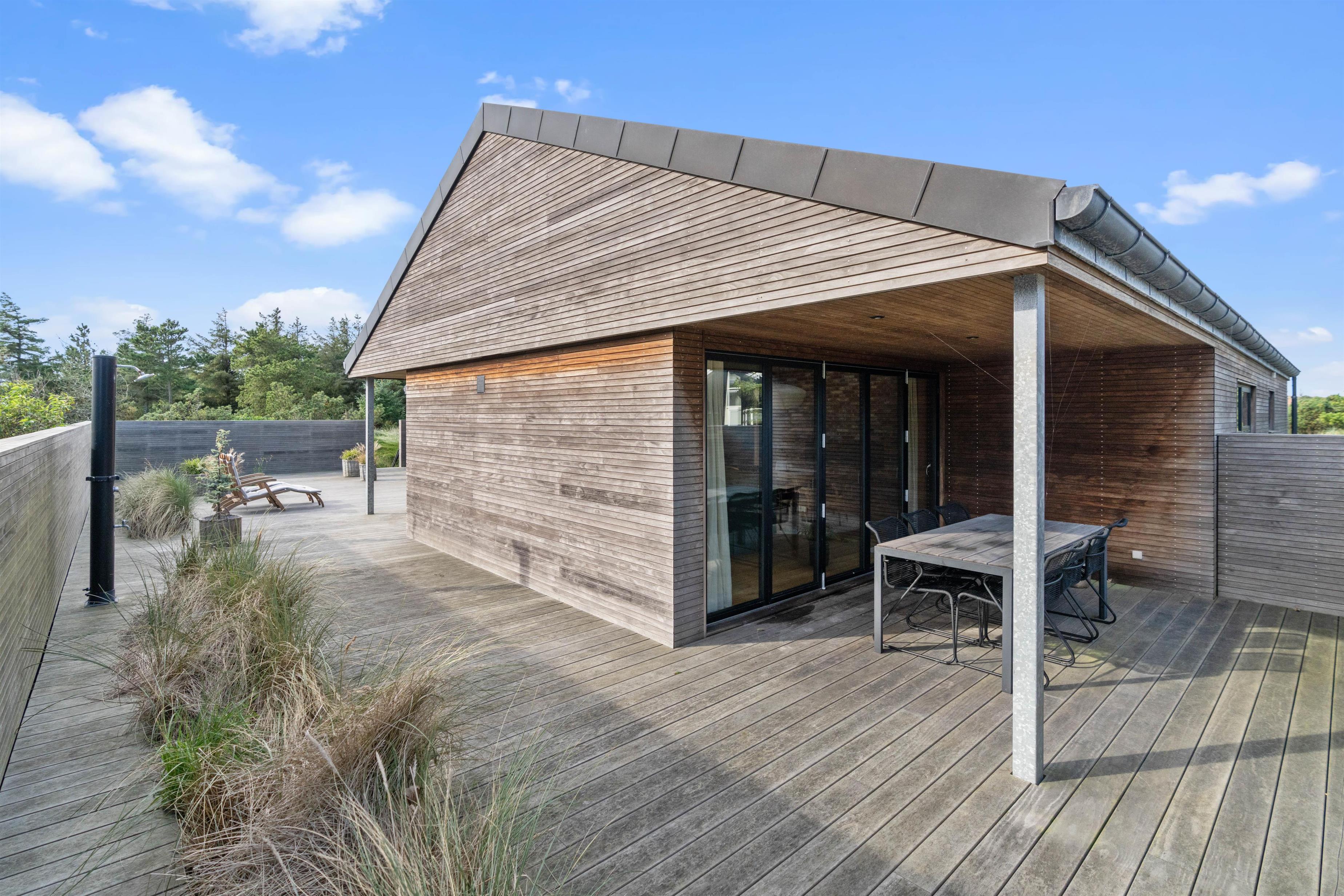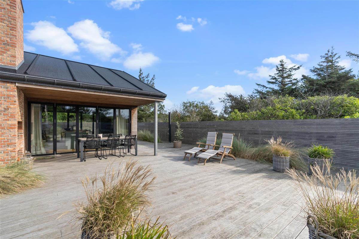 Located just north of the popular seaside resort Søndervig, at Skovdalen 14 in the peaceful holiday home area of Houvig, this high-quality holiday home close to the beach offers tasteful, modern accommodation for up to 6 guests. The holiday home features one bathroom with a bath and a separate guest WC. The excellent outdoor area includes large, partially covered terraces and an outdoor shower - perfect for rinsing off sand after beach walks. The outdoor shower is available from April to November.