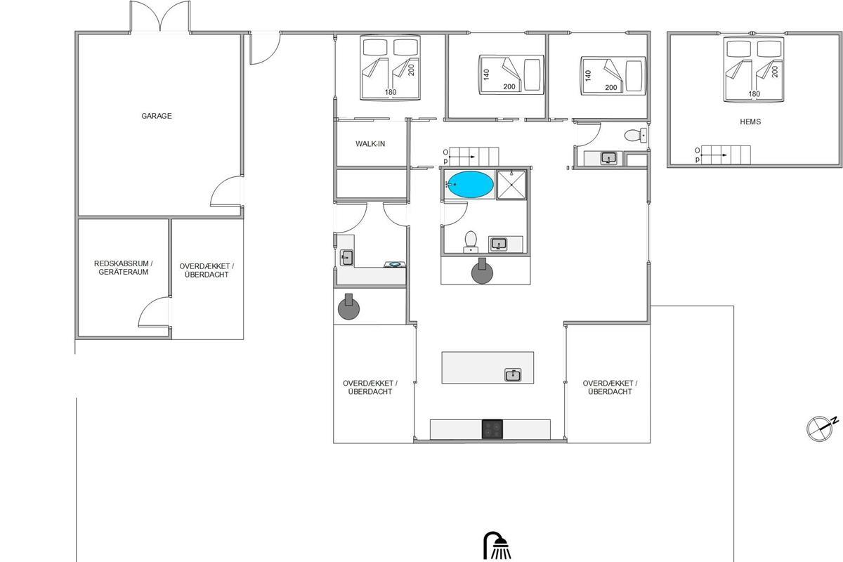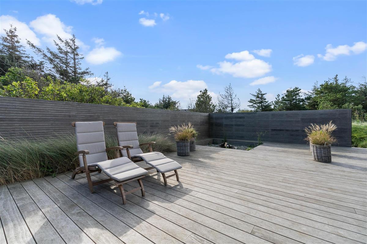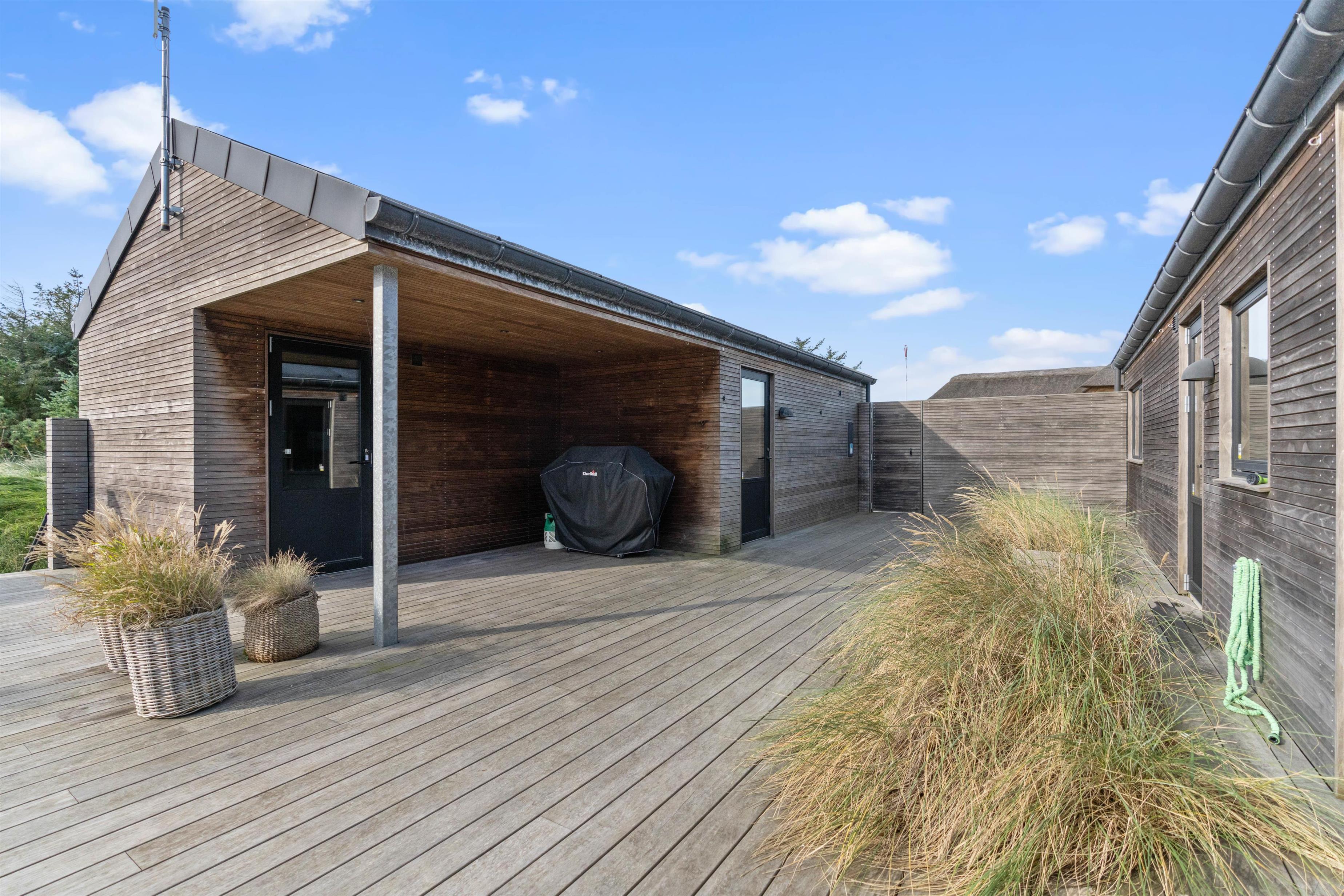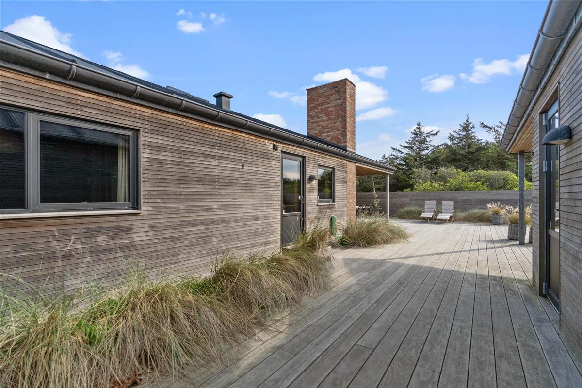 Located just north of the popular seaside resort Søndervig, at Skovdalen 14 in the peaceful holiday home area of Houvig, this high-quality holiday home close to the beach offers tasteful, modern accommodation for up to 6 guests. The holiday home features one bathroom with a bath and a separate guest WC. The excellent outdoor area includes large, partially covered terraces and an outdoor shower - perfect for rinsing off sand after beach walks. The outdoor shower is available from April to November.