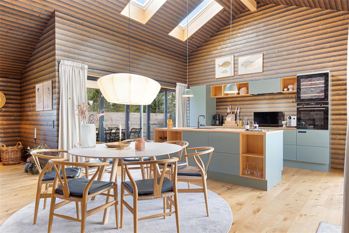 The open-plan living, dining and kitchen area is perfectly coordinated, providing space for shared moments while cooking, playing games or planning upcoming activities.