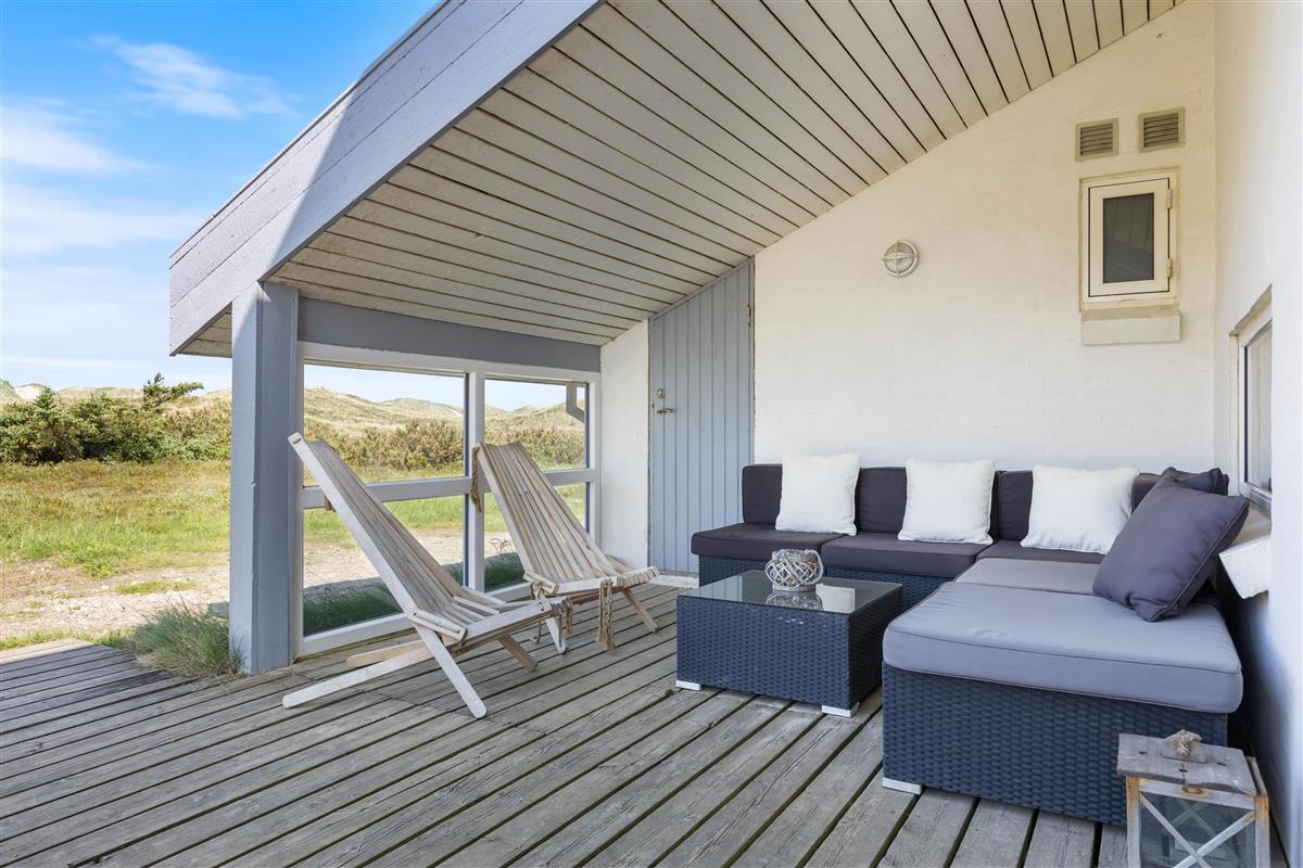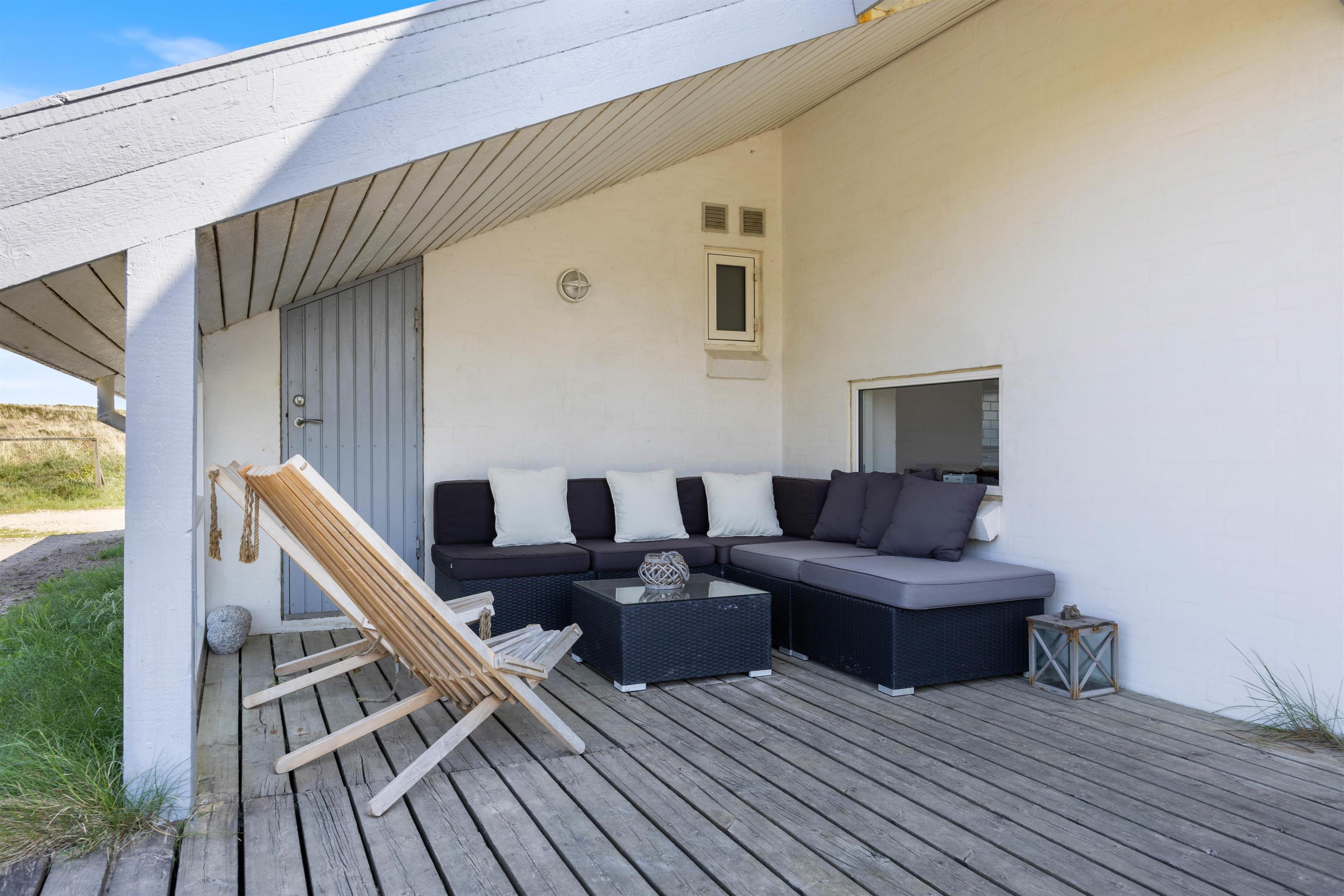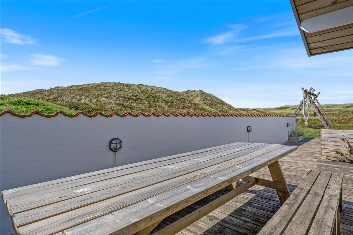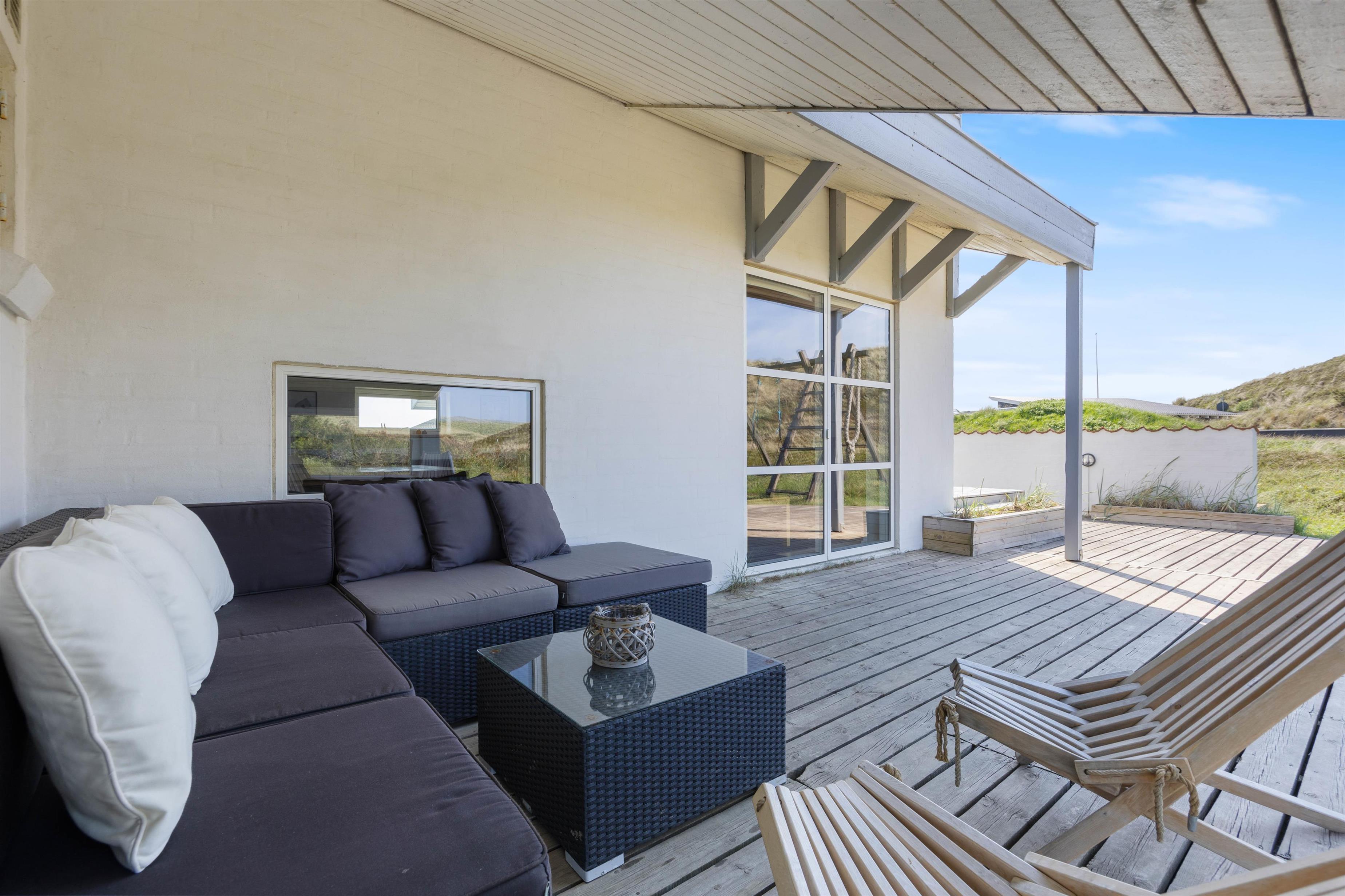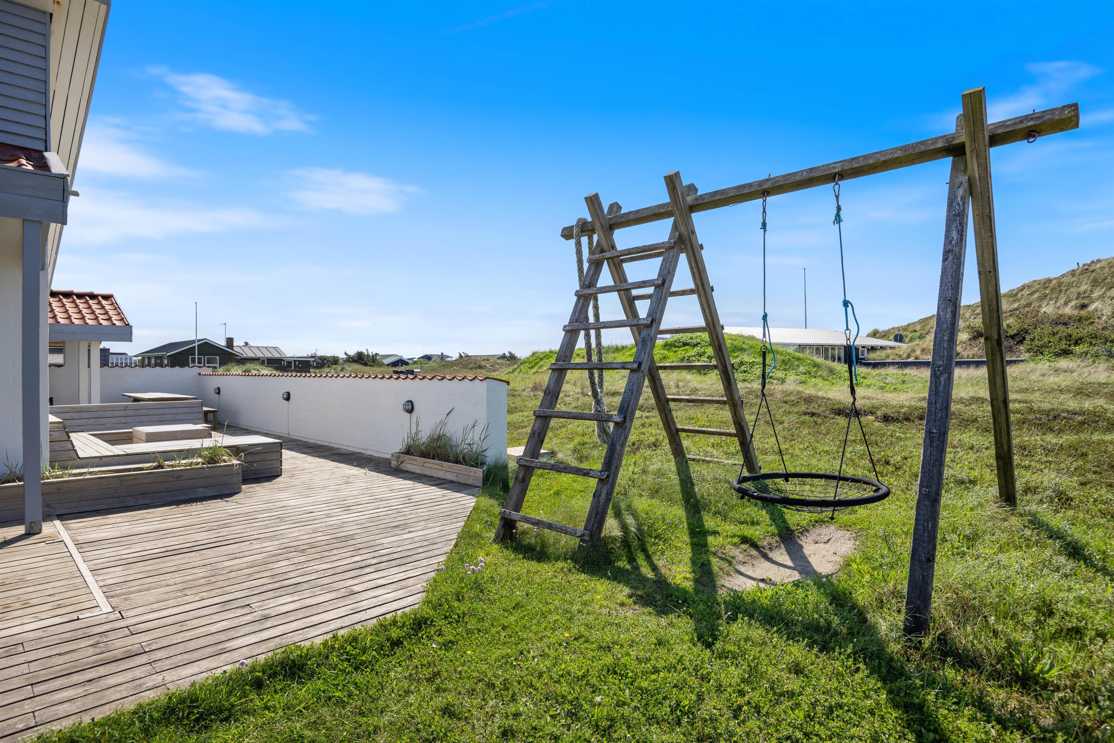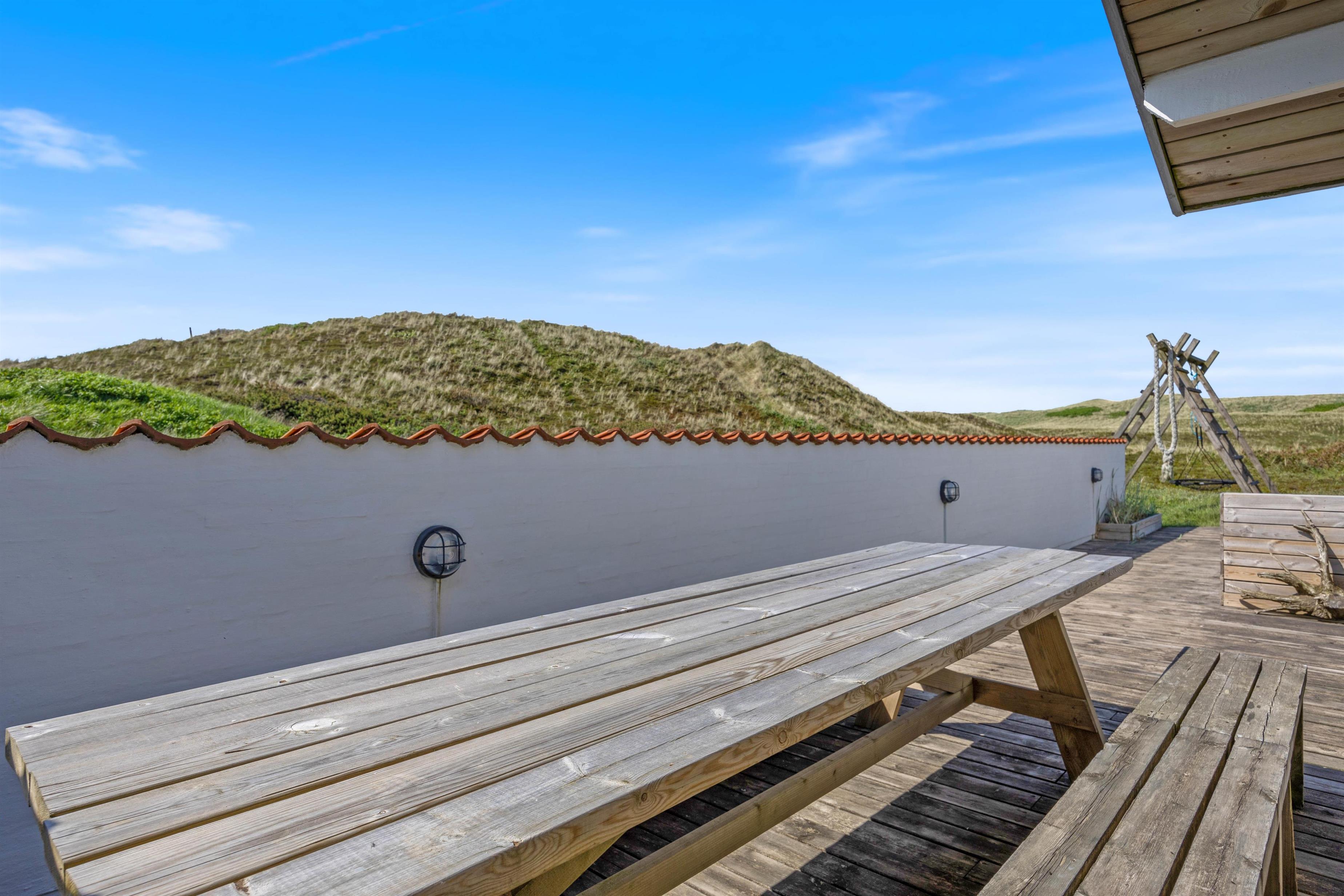 The holiday home at Mågedalen 77 in Houvig sits on approximately 2,500 square metres of dune grounds, offering children plenty of space for exploration. The holiday home features extensive terrace areas, including two covered sections, ensuring everyone can find their favourite spot. While you relax with a good book in the sun, your children can enjoy themselves on the swing. In the evening, you can round off a warm summer's day with a delicious barbecue.