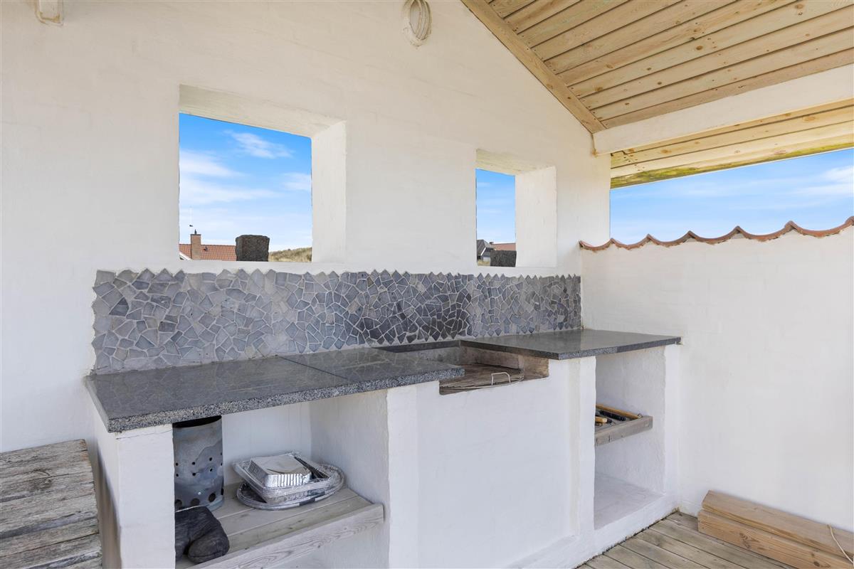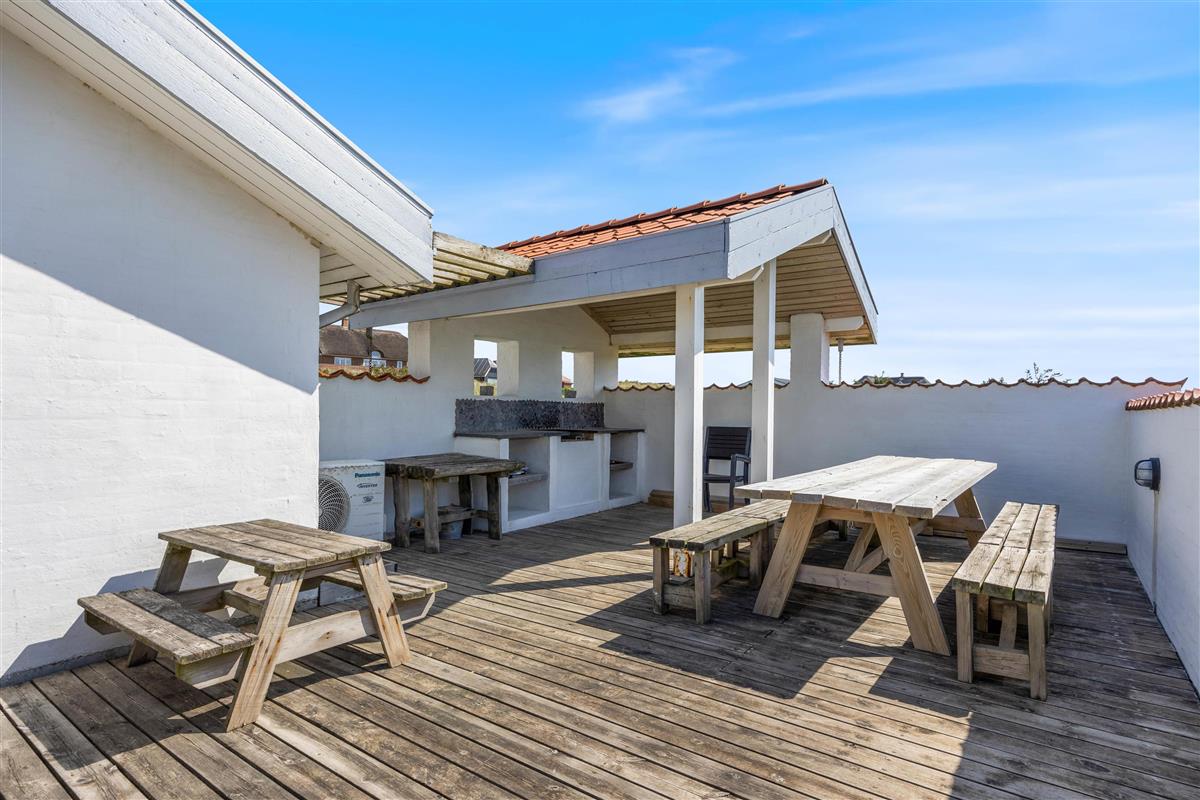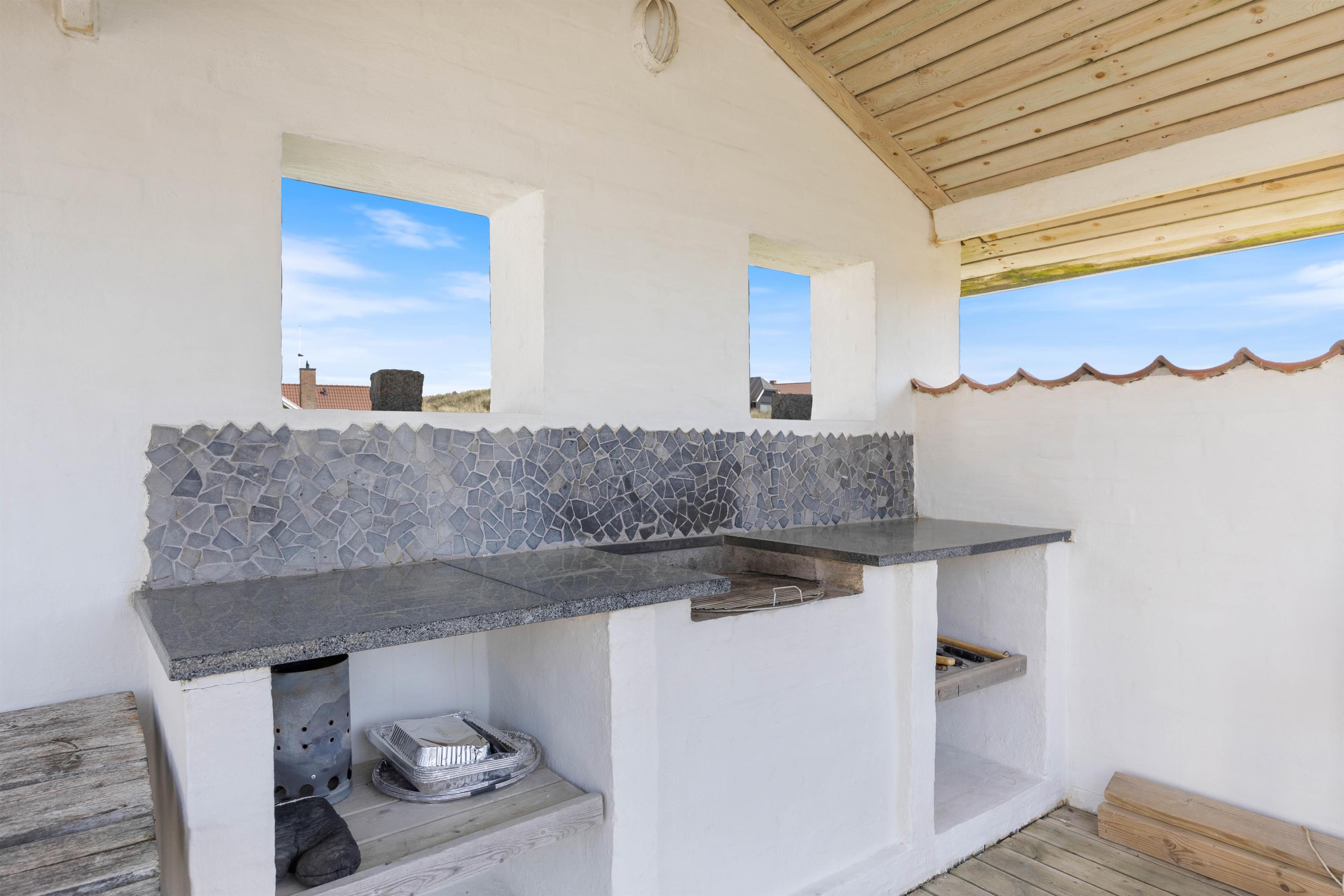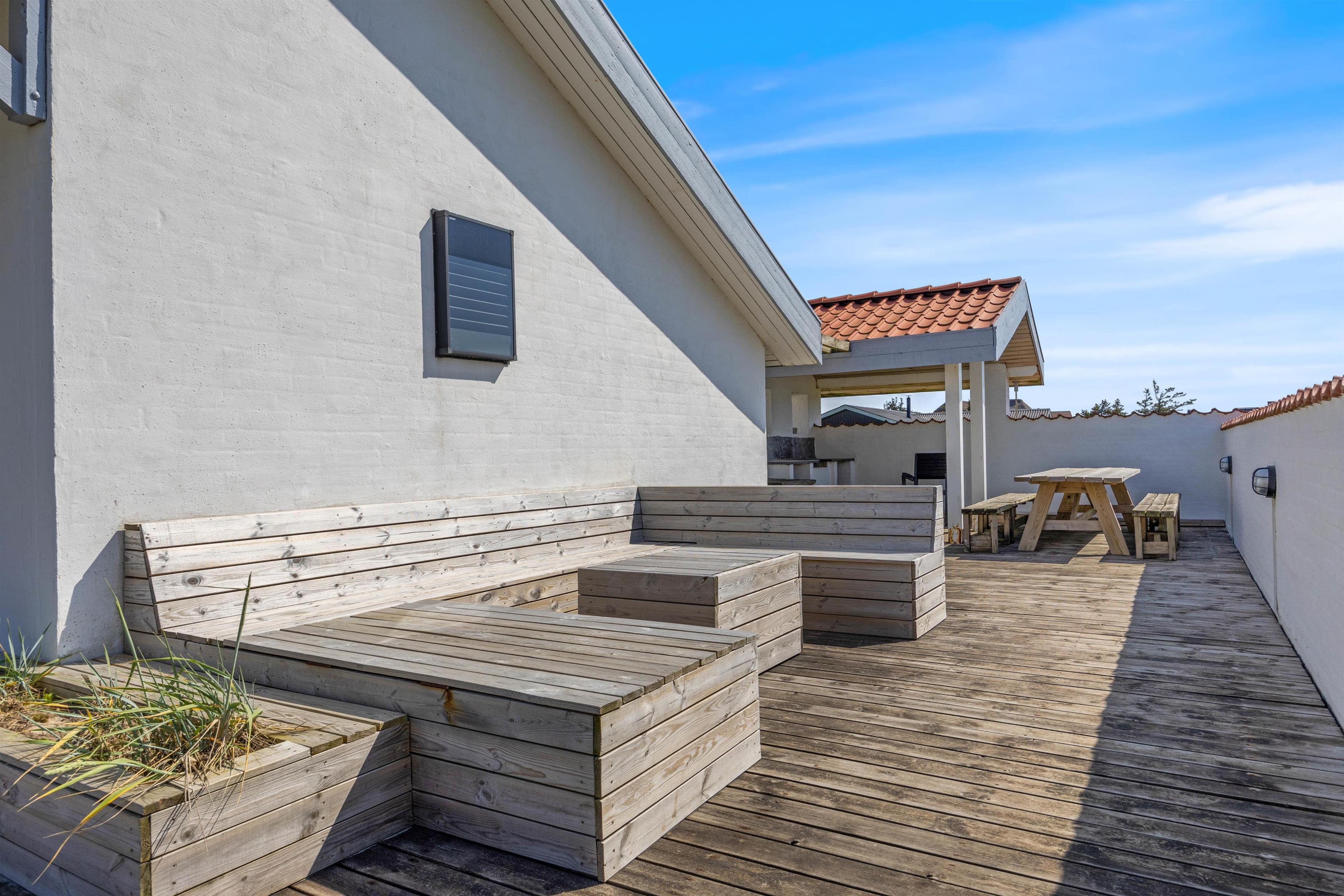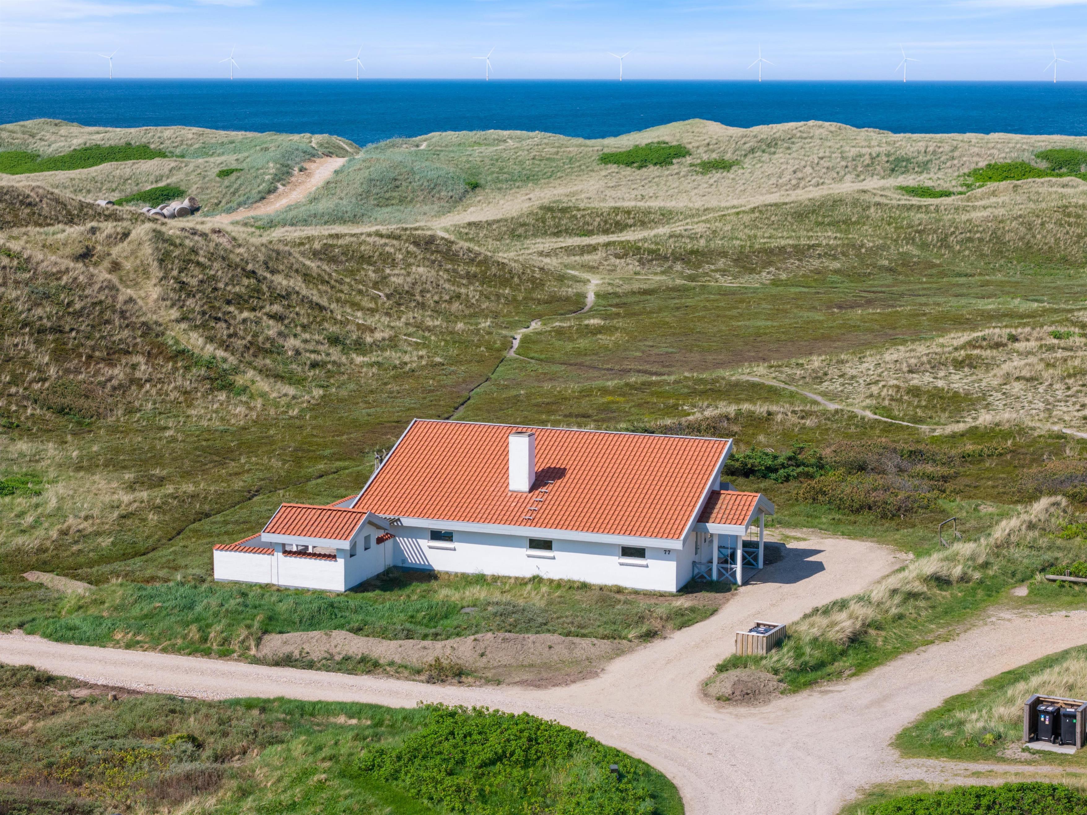 The holiday home at Mågedalen 77 in Houvig sits on approximately 2,500 square metres of dune grounds, offering children plenty of space for exploration. The holiday home features extensive terrace areas, including two covered sections, ensuring everyone can find their favourite spot. While you relax with a good book in the sun, your children can enjoy themselves on the swing. In the evening, you can round off a warm summer's day with a delicious barbecue.