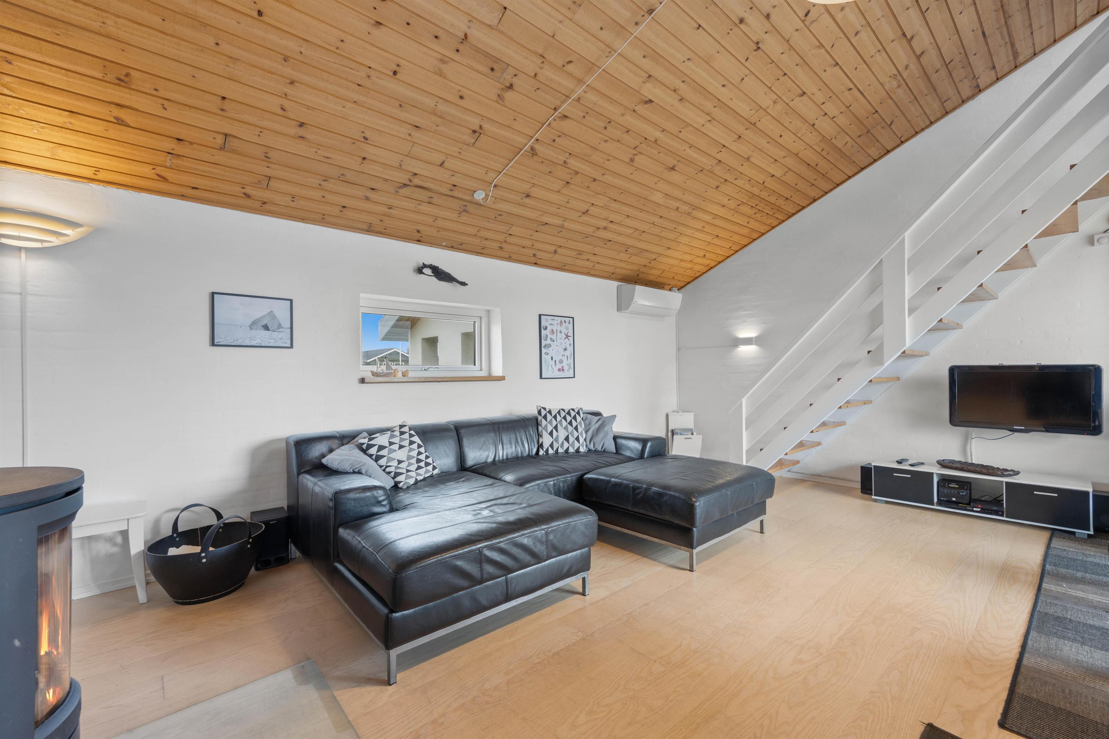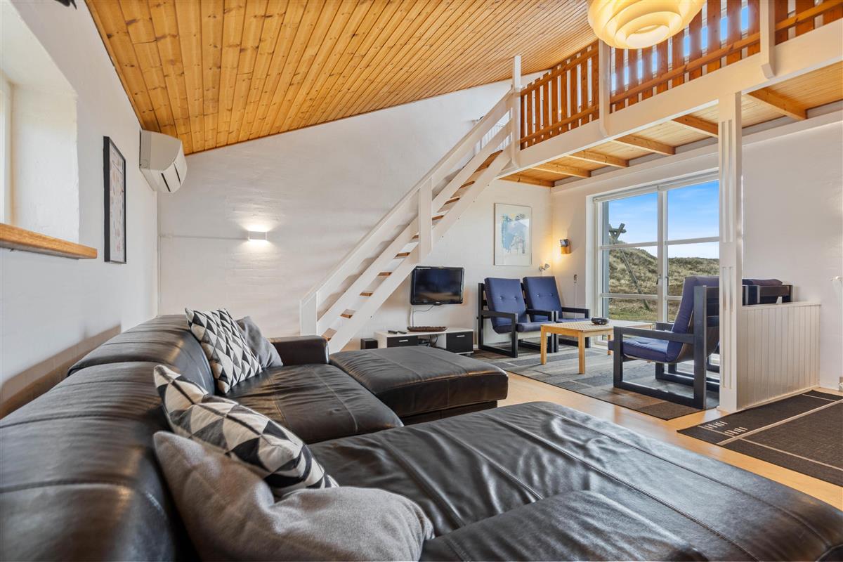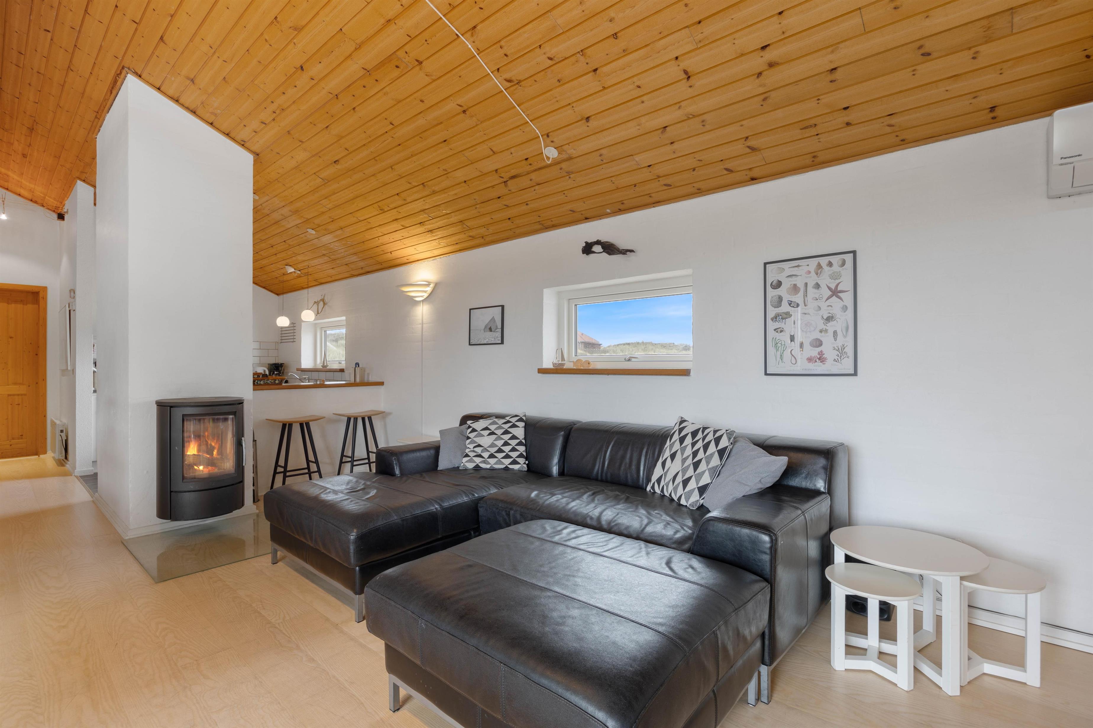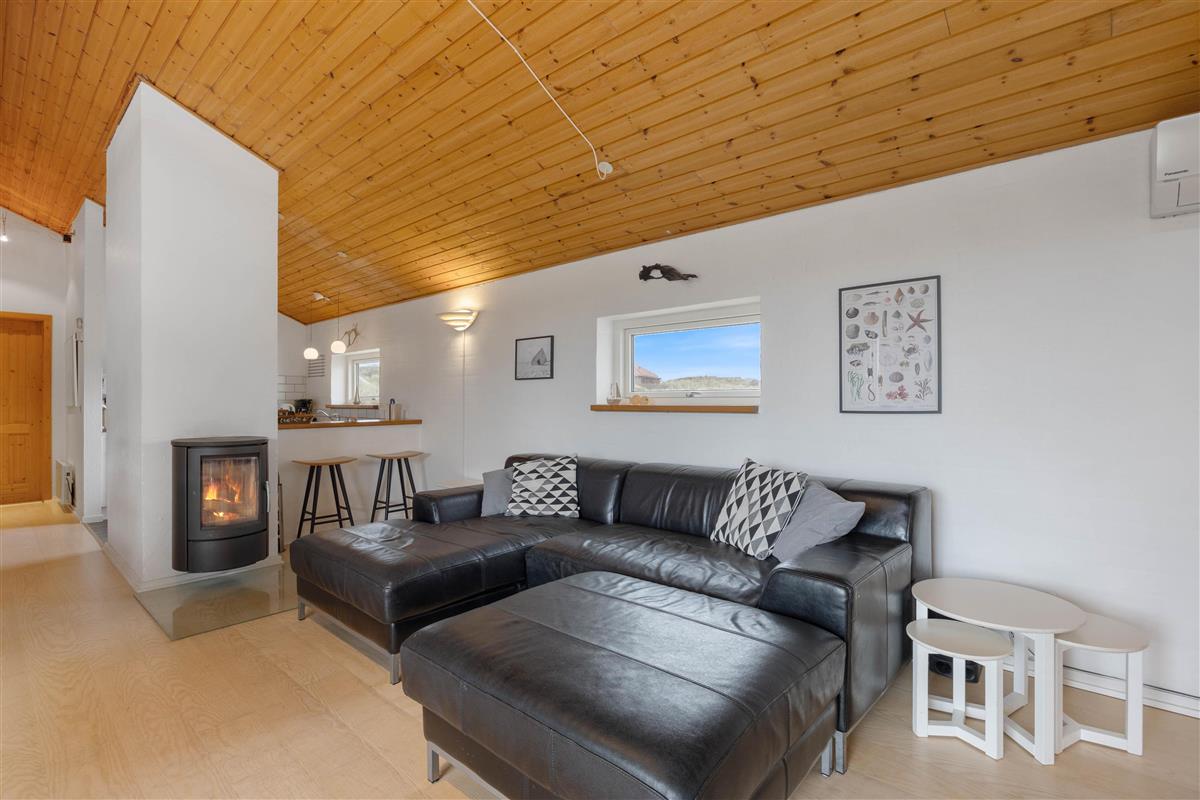 The holiday home is just 150 metres from the miles-long sandy beach of the Danish west coast, making beach walks an almost essential part of your daily routine in this holiday home. It's particularly beautiful to watch the sunset from the dunes. From the holiday region of Houvig, it's just a short drive to the vibrant seaside resort of Søndervig, where you'll find various restaurants, cafés and boutiques.