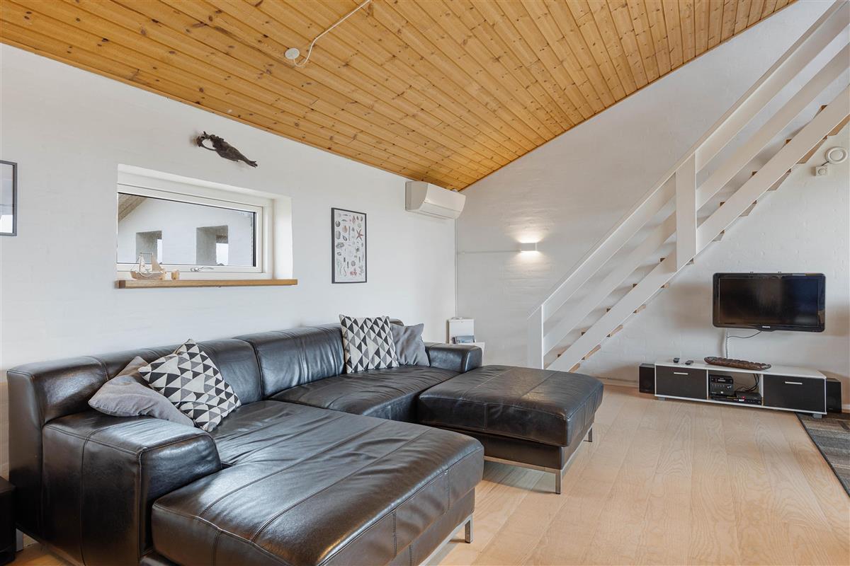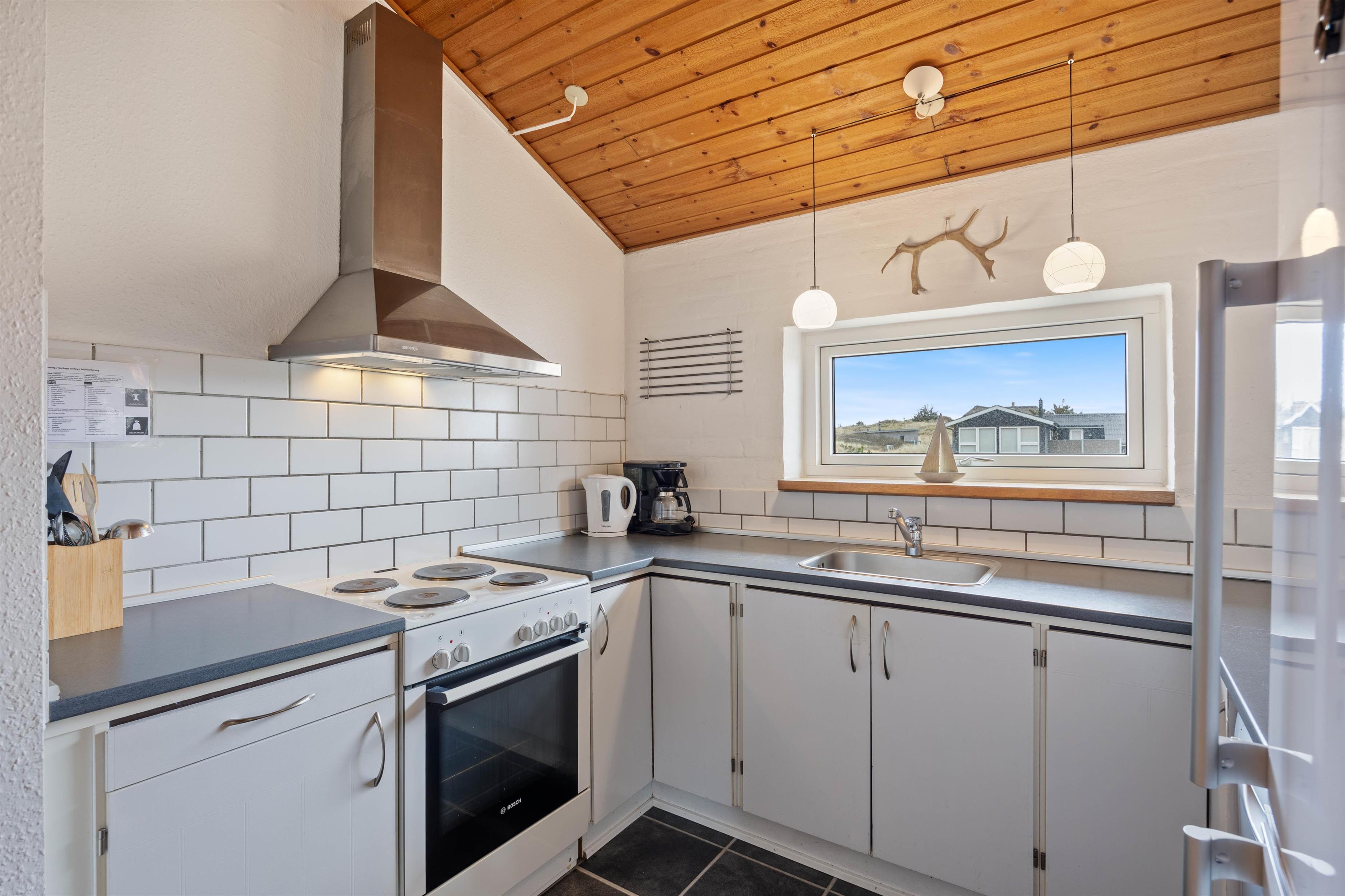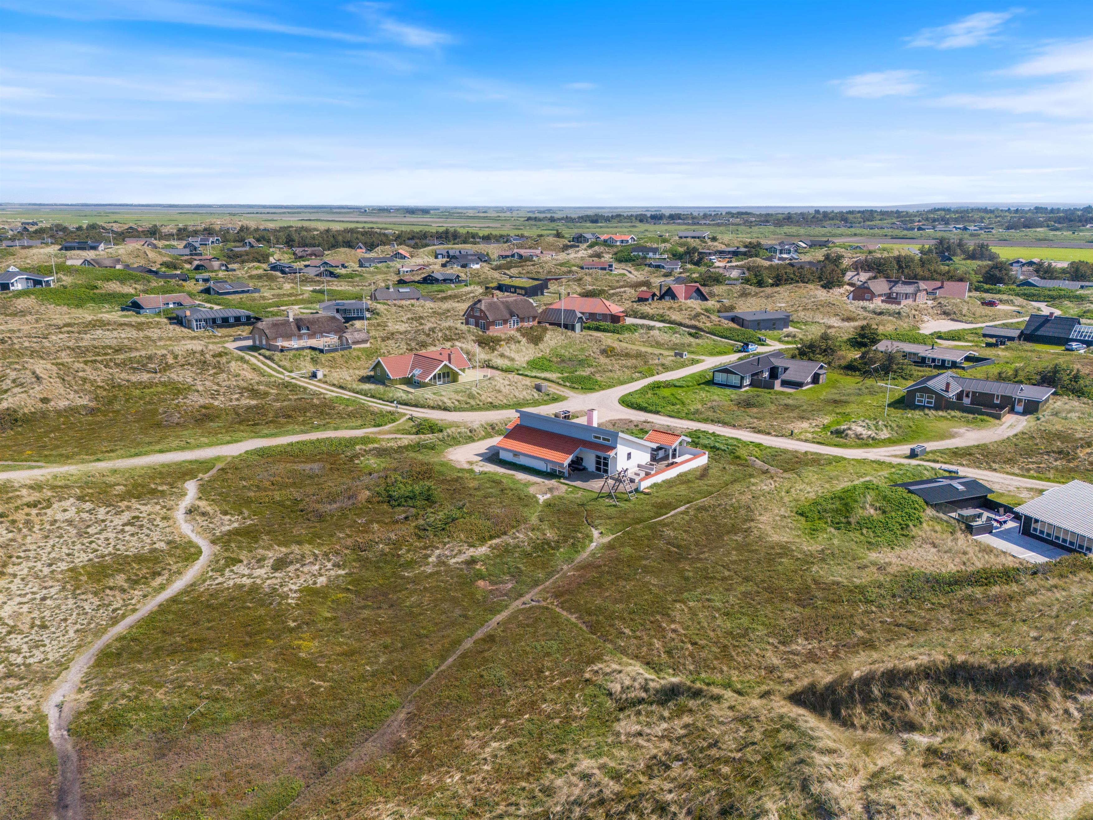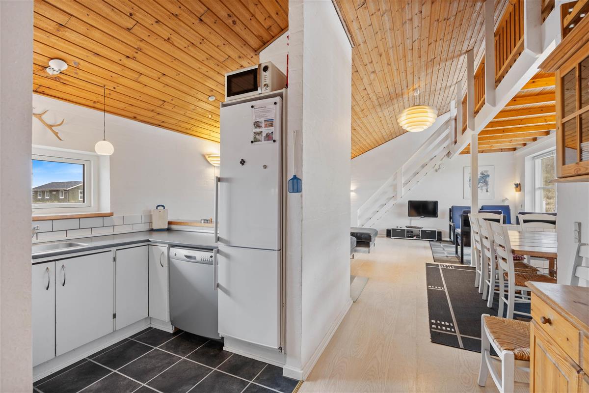 The holiday home is just 150 metres from the miles-long sandy beach of the Danish west coast, making beach walks an almost essential part of your daily routine in this holiday home. It's particularly beautiful to watch the sunset from the dunes. From the holiday region of Houvig, it's just a short drive to the vibrant seaside resort of Søndervig, where you'll find various restaurants, cafés and boutiques.