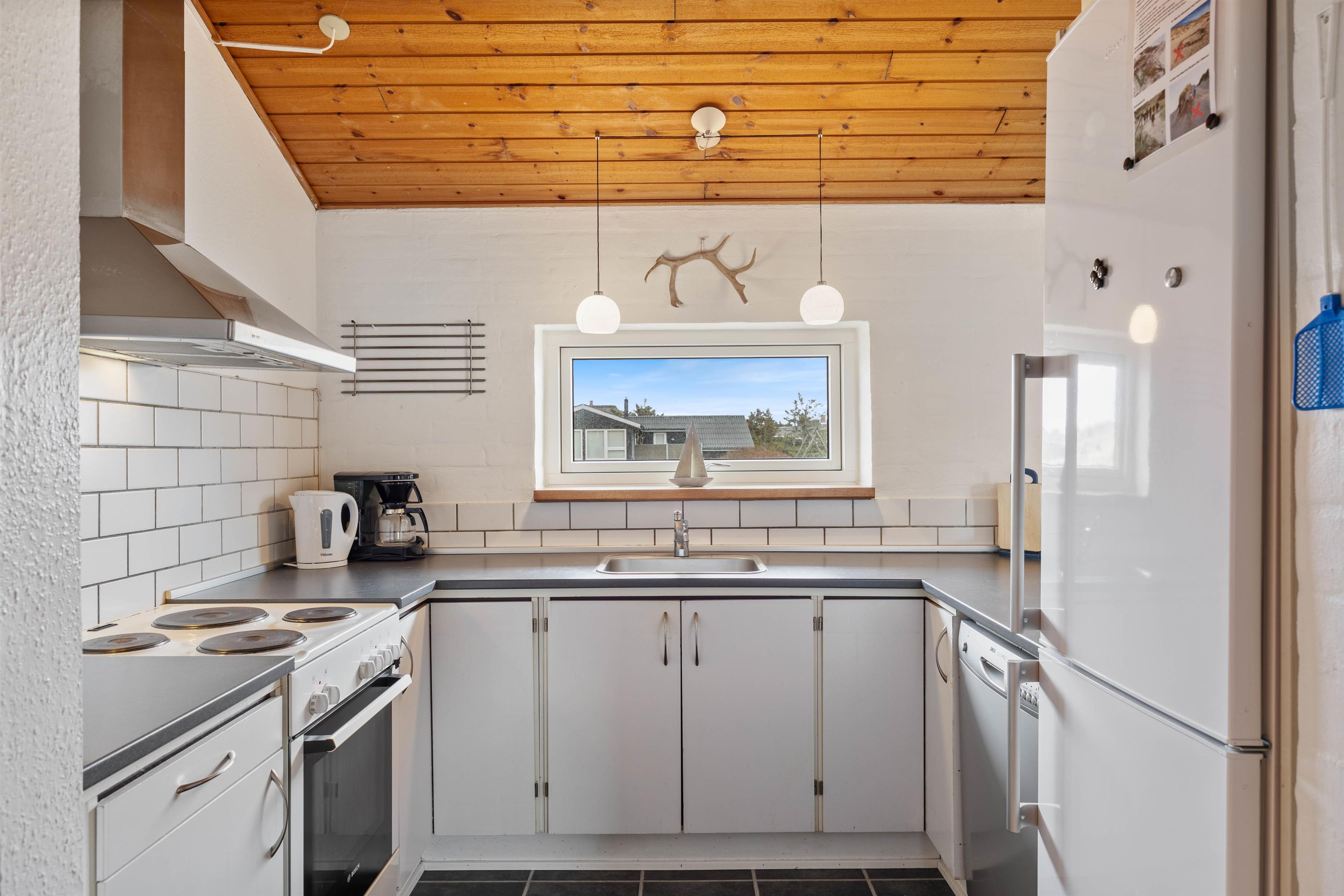 This holiday home close to the beach at Mågedalen 77 in Houvig is the perfect choice if you enjoy being near the beach and listening to the roaring North Sea. Located just 150 metres from the beach, daily beach walks will become part of your routine. The wood-burning stove in the living area provides cosiness and that typical holiday home atmosphere, while the swing will surely be a hit with your children.