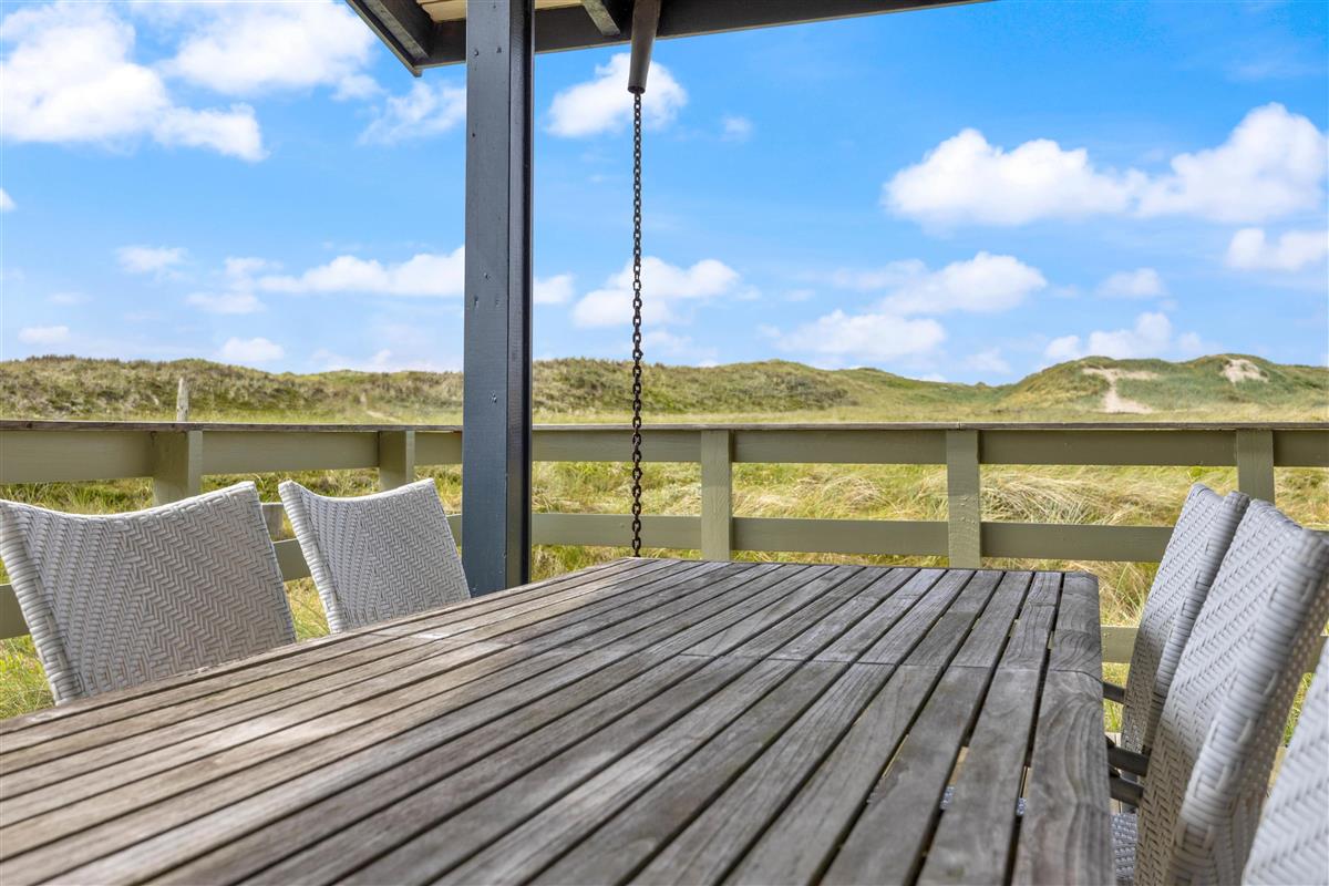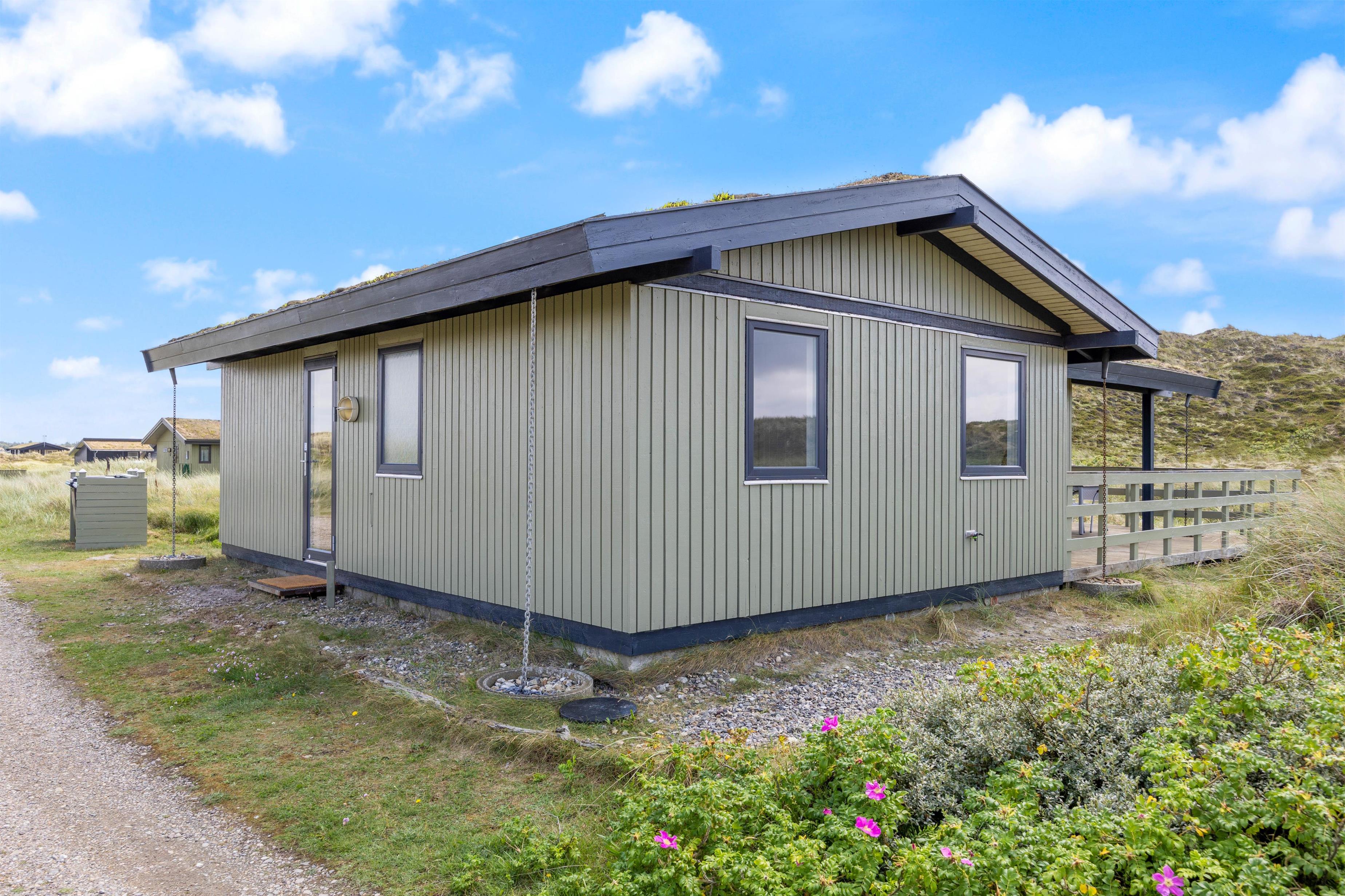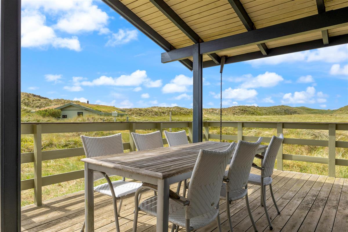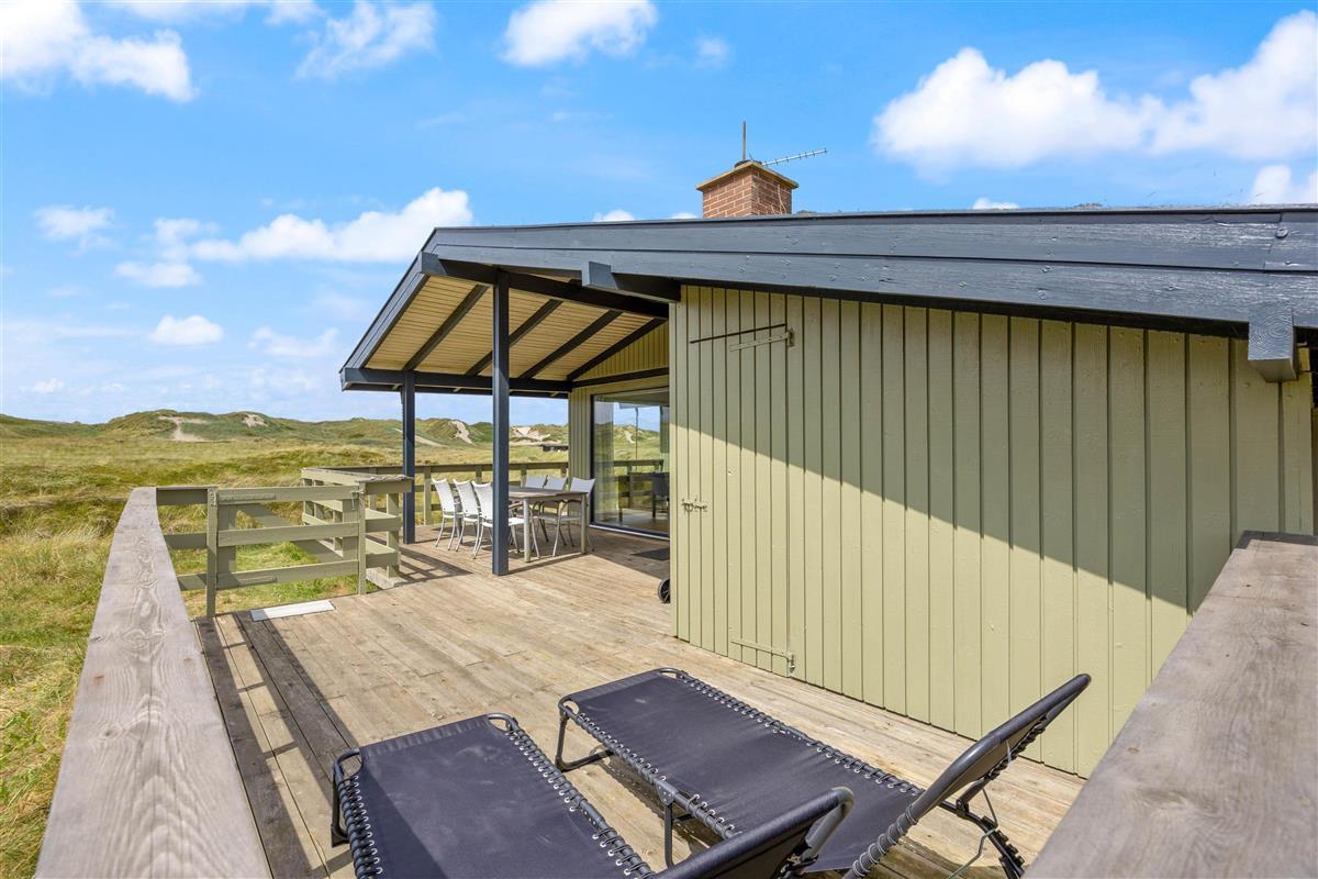 The 2,000-square-metre plot is situated amongst the Houvig dunes, just 200 metres from the magnificent sandy beach. Soak up the sun on the beach or your terrace, or enjoy coffee and cake in the shade of the covered terrace section. Long beach walks contribute to a truly relaxing holiday, and after a lovely barbecue evening, you can marvel at the sunset over the North Sea and dunes. The scent of the sea and the beauty of the dunes make a holiday in this holiday home truly special.