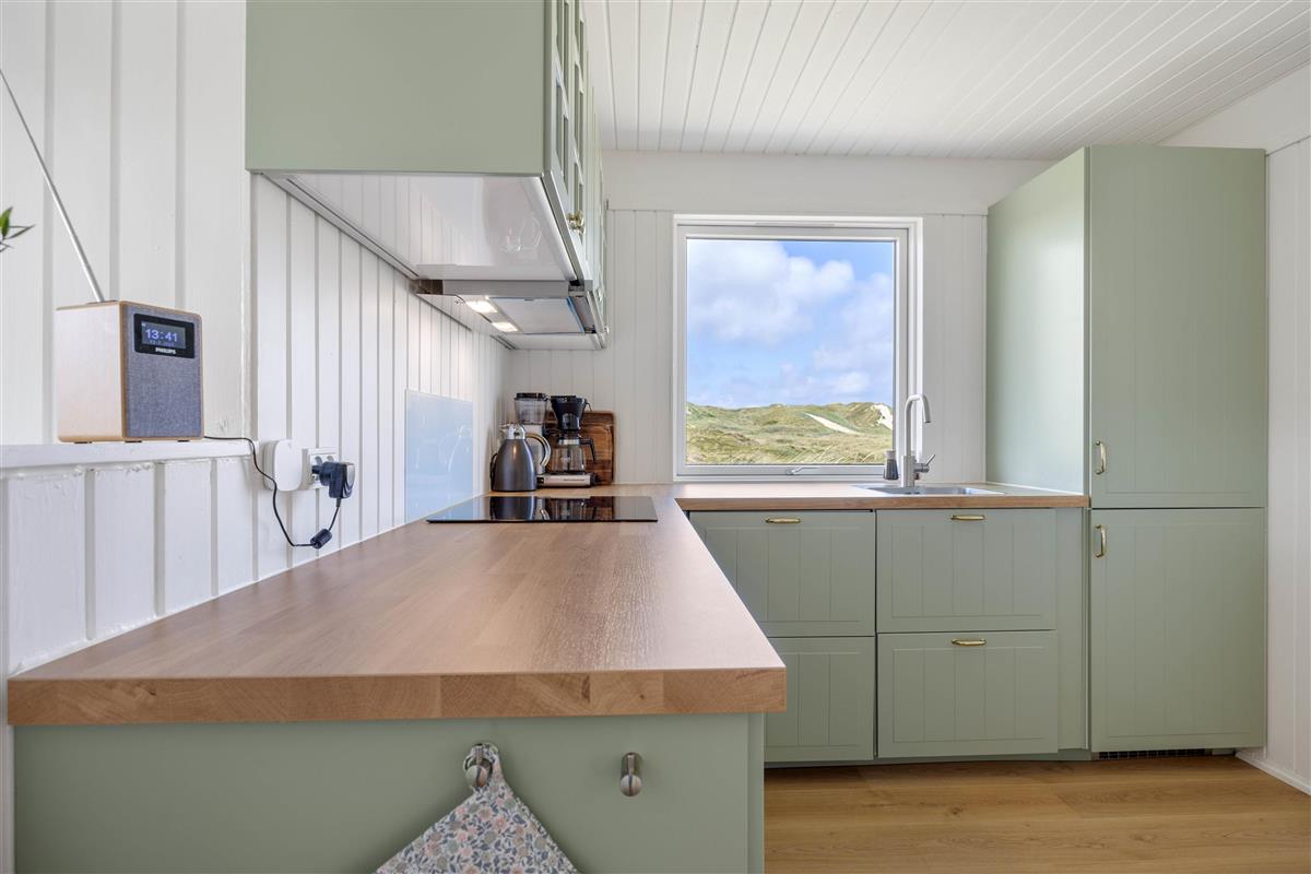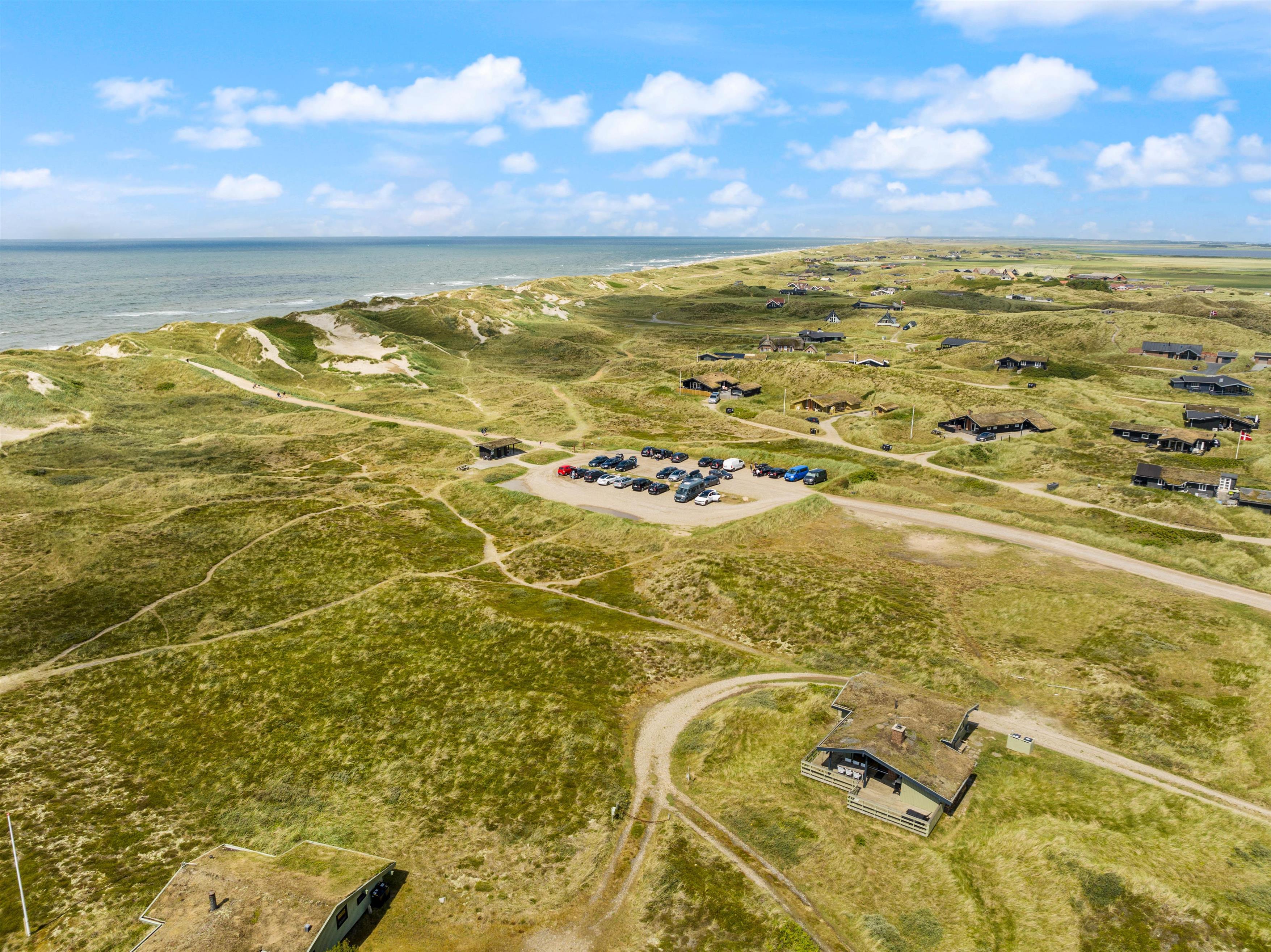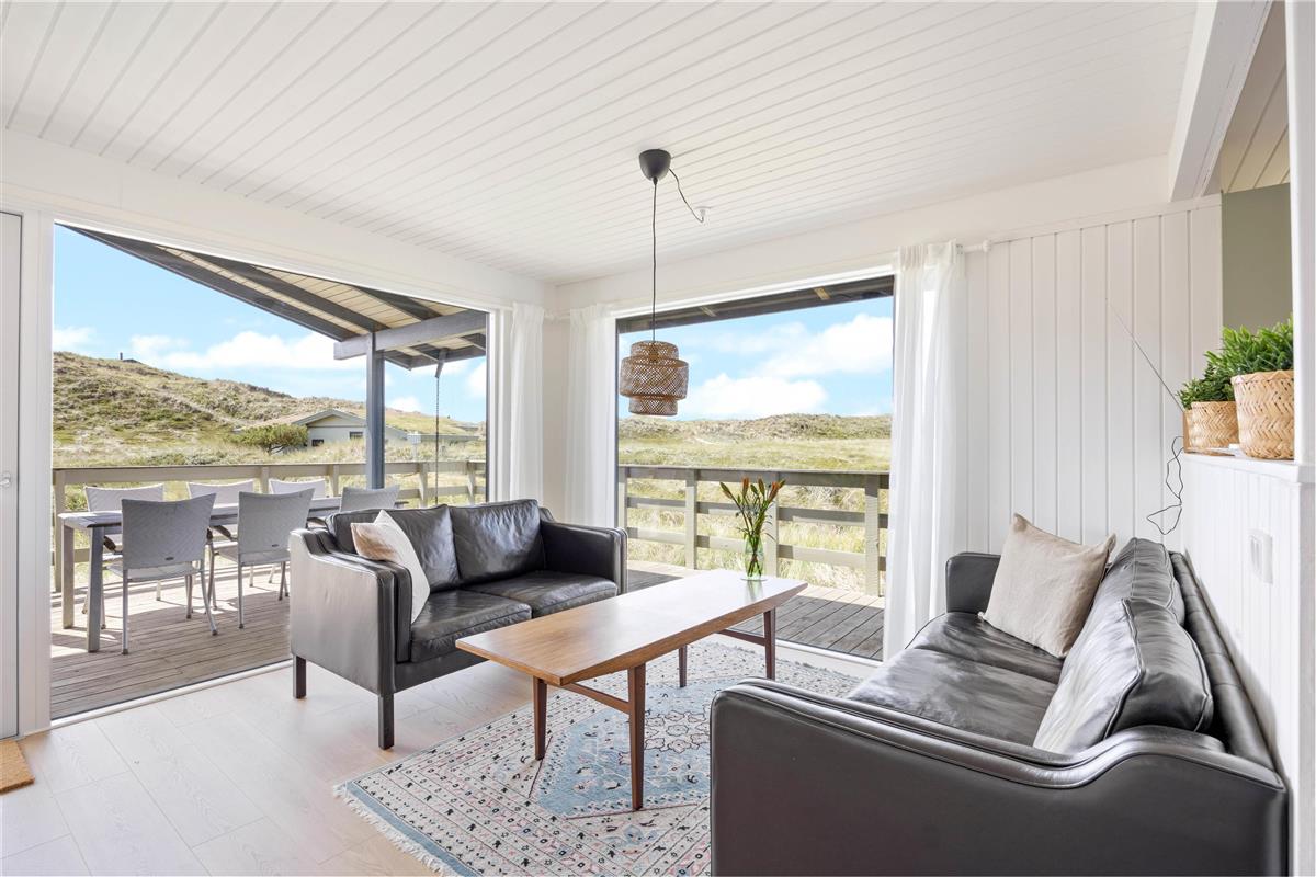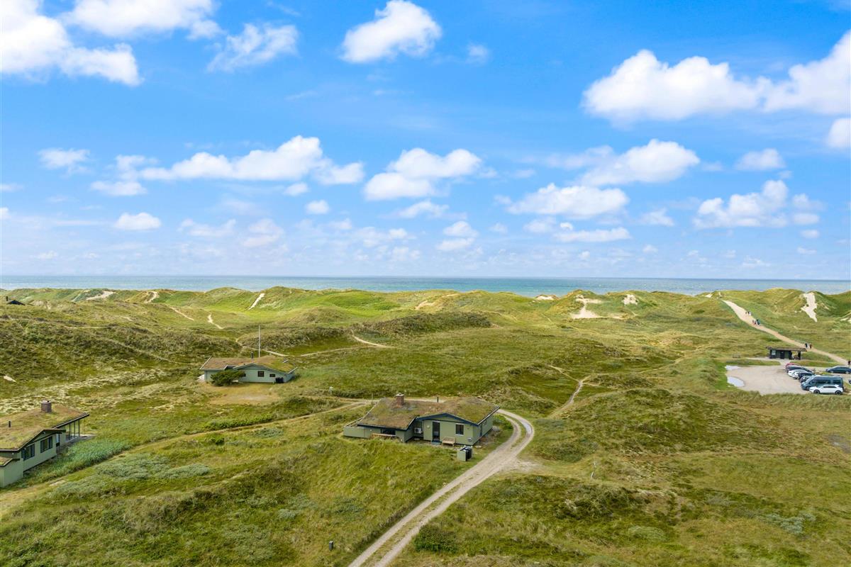 The 2,000-square-metre plot is situated amongst the Houvig dunes, just 200 metres from the magnificent sandy beach. Soak up the sun on the beach or your terrace, or enjoy coffee and cake in the shade of the covered terrace section. Long beach walks contribute to a truly relaxing holiday, and after a lovely barbecue evening, you can marvel at the sunset over the North Sea and dunes. The scent of the sea and the beauty of the dunes make a holiday in this holiday home truly special.