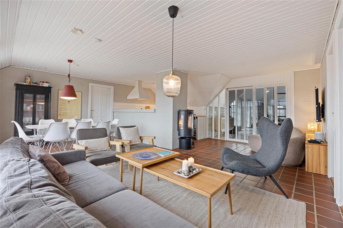 Located just 150 metres from the North Sea, the holiday home offers magnificent views over the dune landscape. The terrace is perfect for sunbathing and relaxing in fine weather, and evening barbecues are a pleasure. After dinner, you might enjoy a digestive walk on the beach to watch the sunset. Back at the house, you can light the wood-burning stove and settle down on the sofa with a glass of wine to round off the day together.