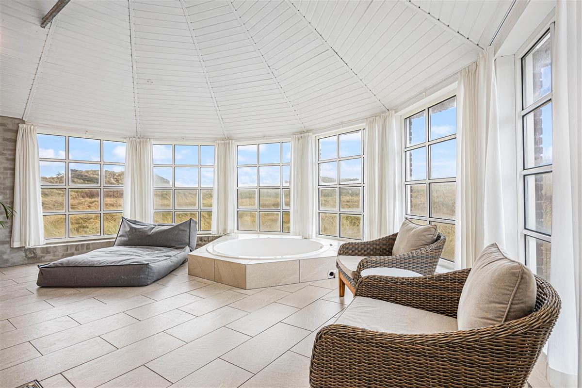 At this holiday home, you're not dependent on the weather, thanks to the 16-square-metre pool that children can enjoy whatever the conditions. The pool is heated by an energy-efficient system, ensuring lower consumption costs. The pool area also features a four-person hot tub where you can unwind in the evening after the children are in bed or following a long walk.