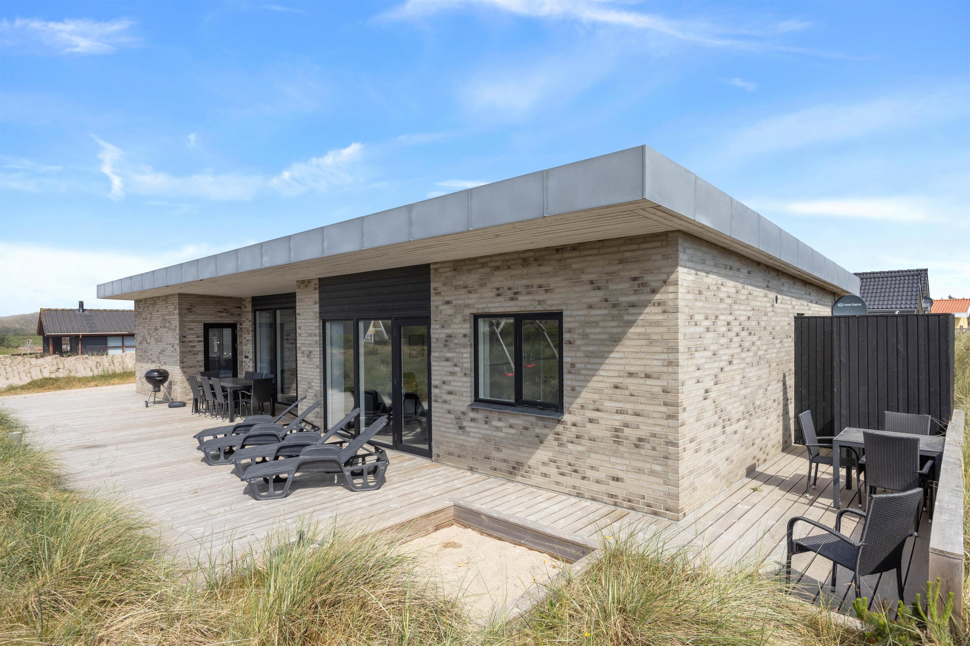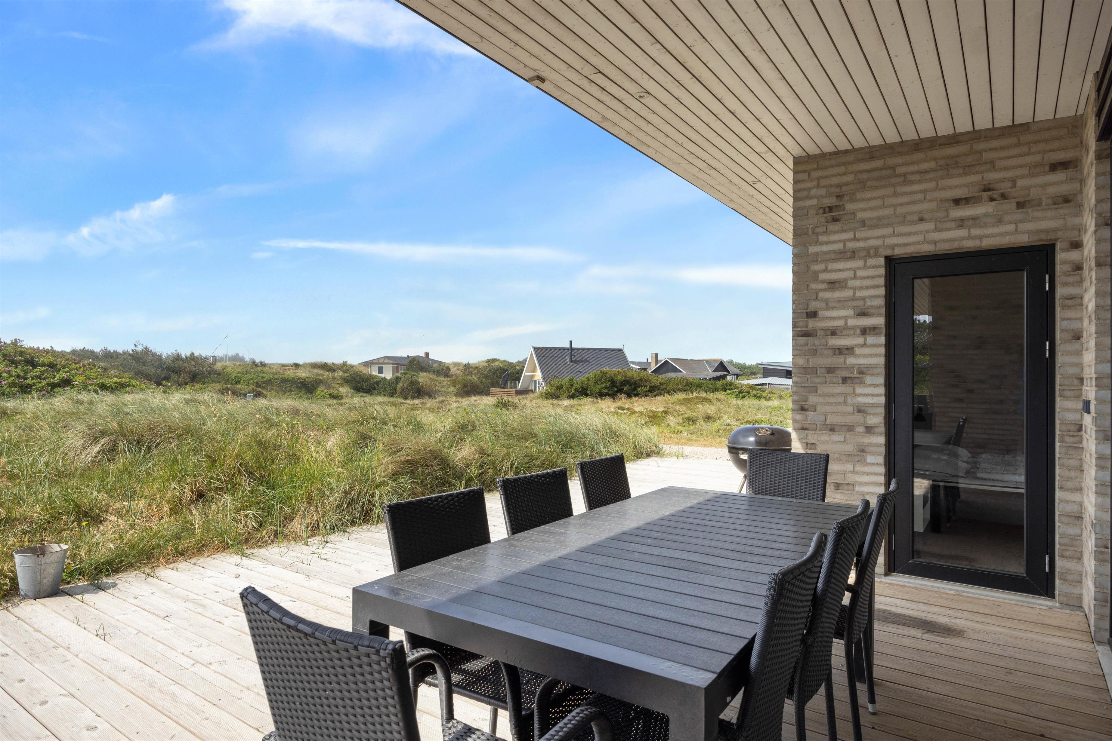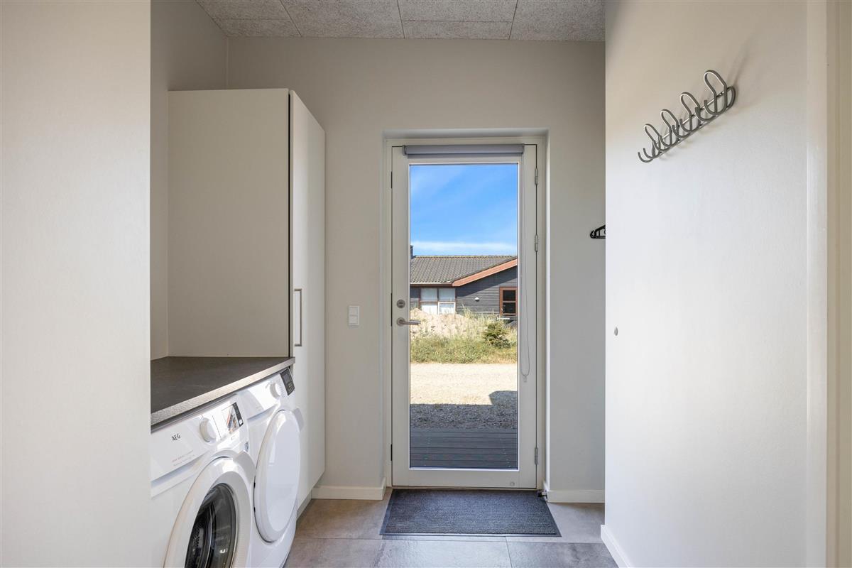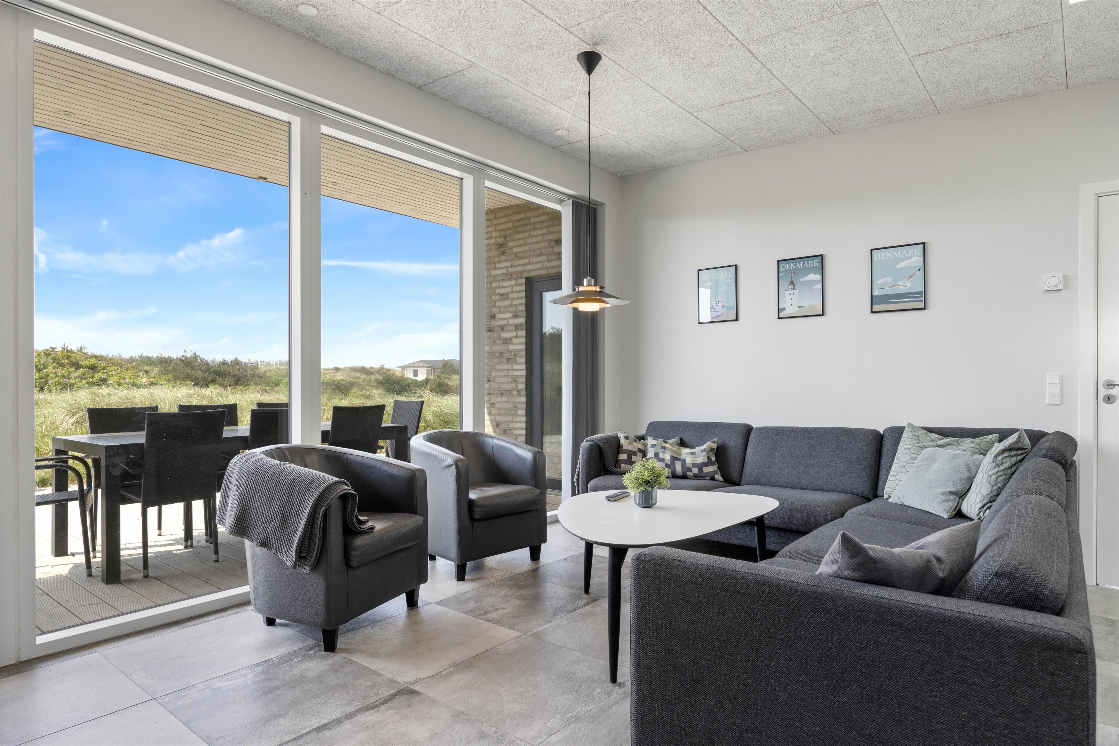 This Houvig holiday home is truly something special. You'll feel at home the moment you step inside. The large, bright rooms are wonderfully welcoming and hospitable. The spacious living area encompasses a kitchen, dining area and living room, decorated in striking black and white tones. The open-plan kitchen is well-equipped and perfect for preparing evening meals.