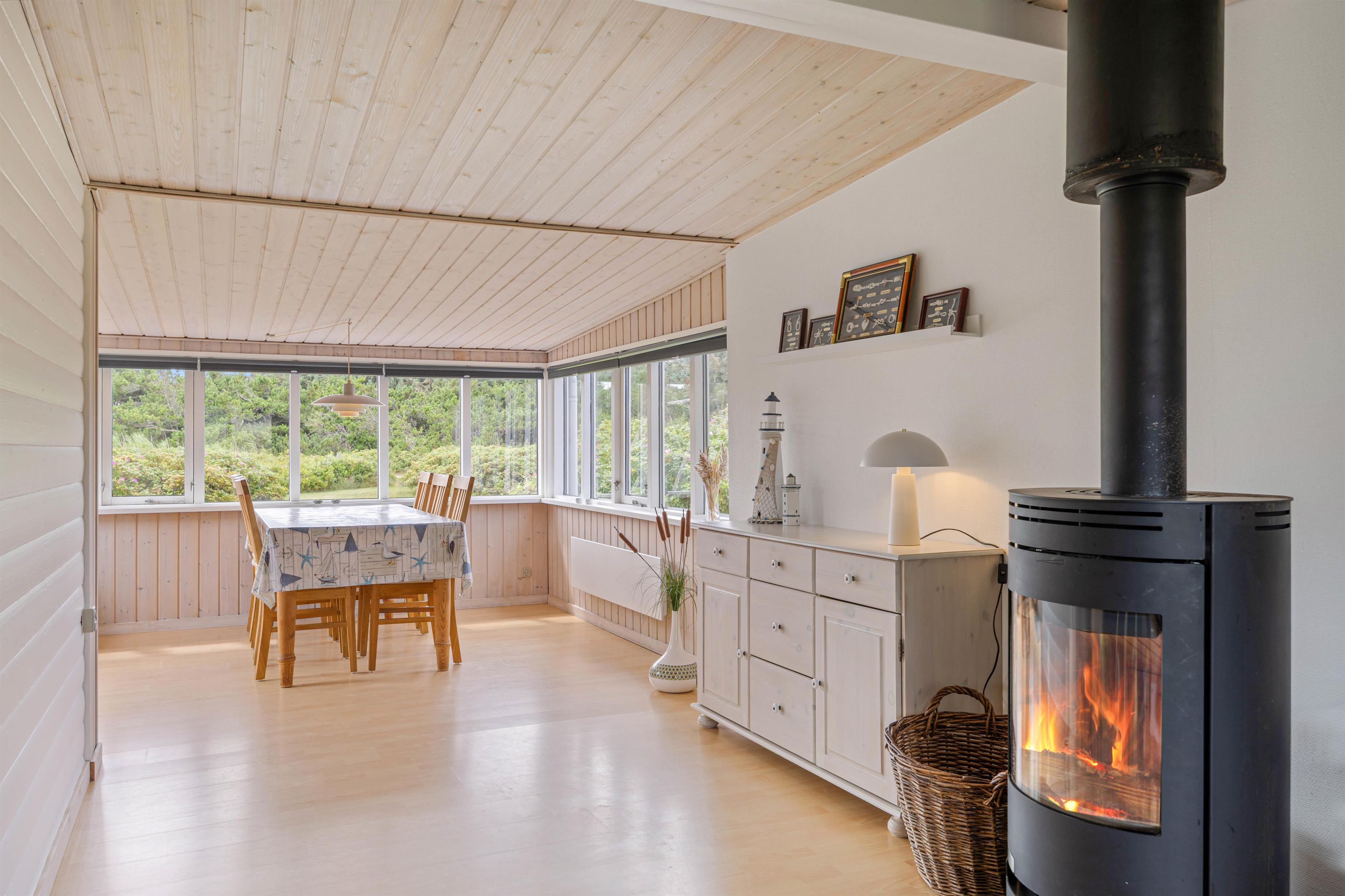 Wenn es draußen kühler wird, ist es besonders schön, ein Feuer im Kamin zu entzünden und bei einem spannenden Buch oder einem leckeren Getränk auf der Couch zu sitzen dem Knistern des Feuers zuzuhören. Ihr könnt aber auch deutsches Fernsehen schauen, oder mit dem Chromecast eure Lieblingsserien streamen. Des Weiteren wurde das Ferienhaus mit einer energiesparenden Luft-zu-Luft Wärmepumpe ausgestattet.
