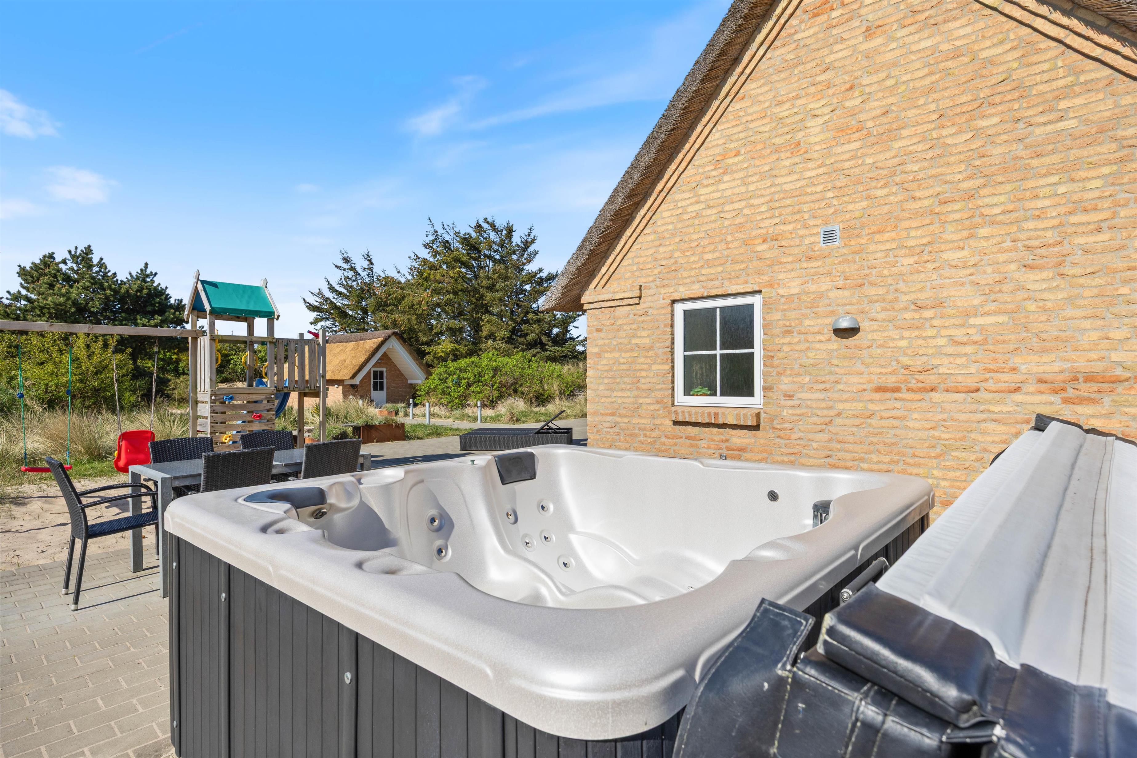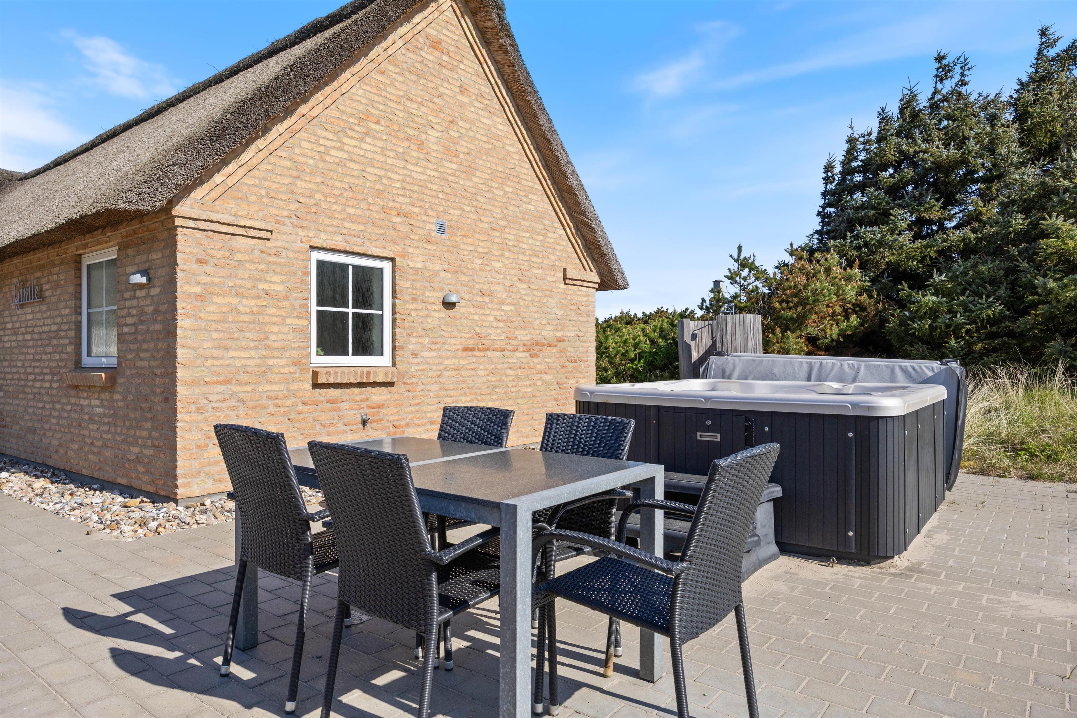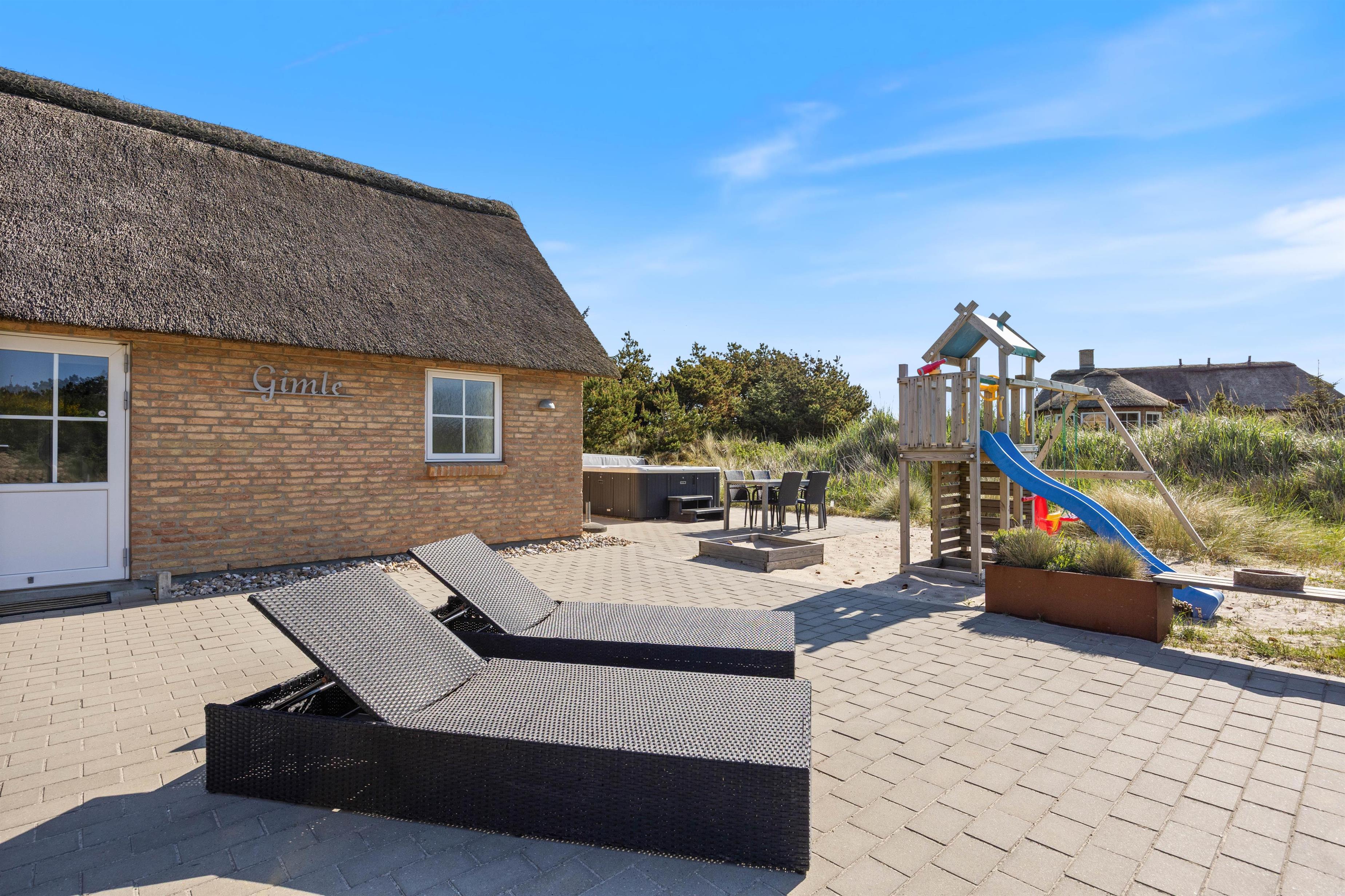 A beautiful terrace surrounds the holiday home, perfect for using the gas barbecue to prepare delicious steaks. The terrace includes an outdoor shower (available April-November) ideal for washing off sandy feet after beach visits. With the North Sea just 450 metres away, there's no excuse not to take a dip. Adults can relax in the various loungers while children enjoy the swing set in the natural grounds. After a long beach walk, unwind in the private outdoor hot tub.