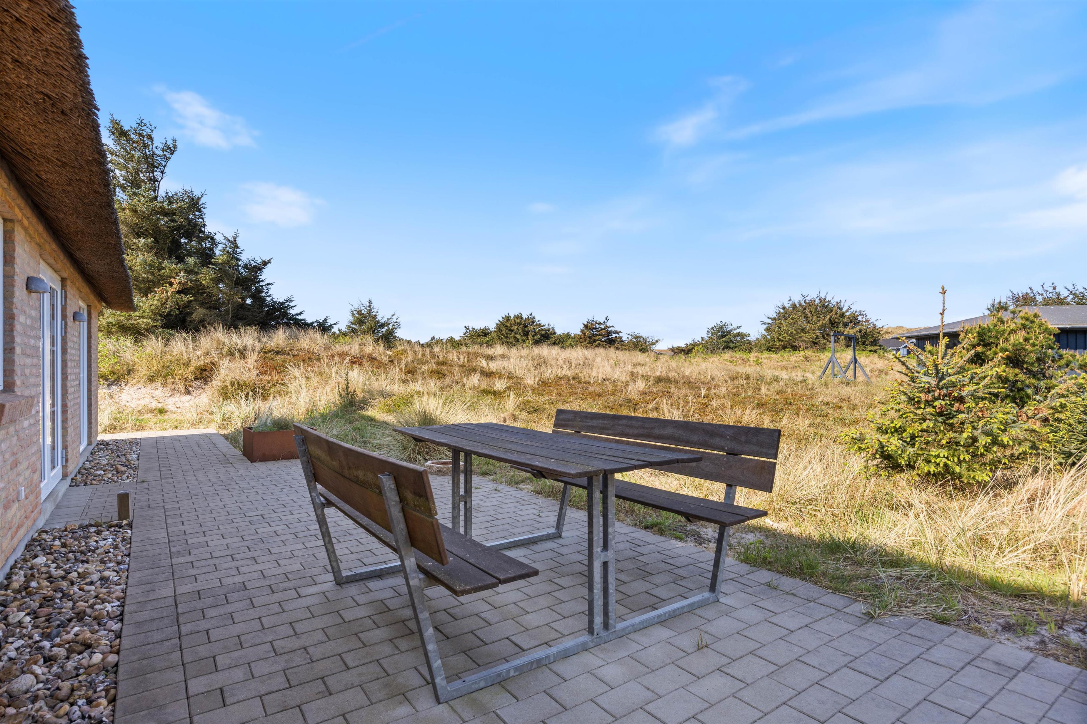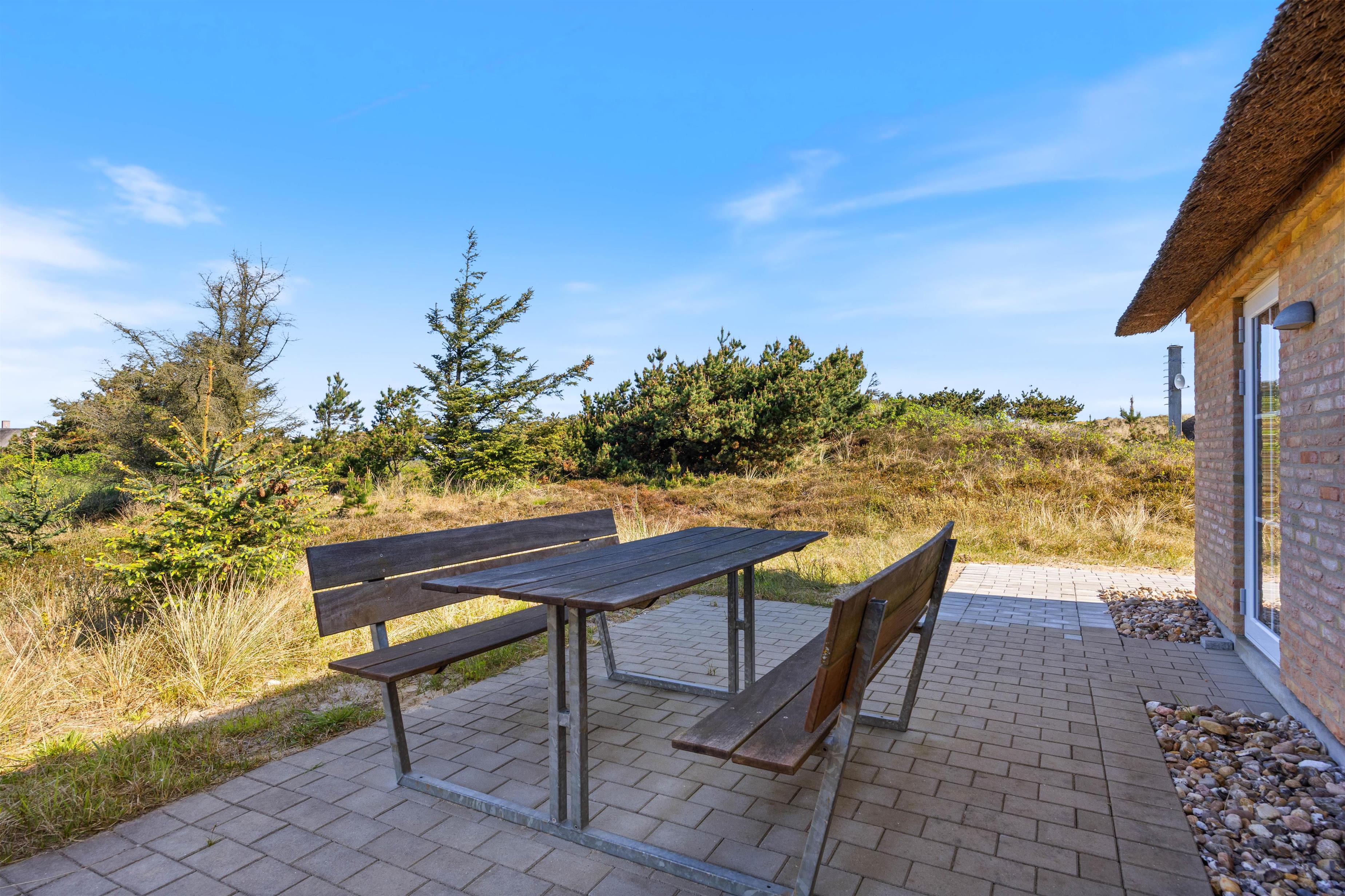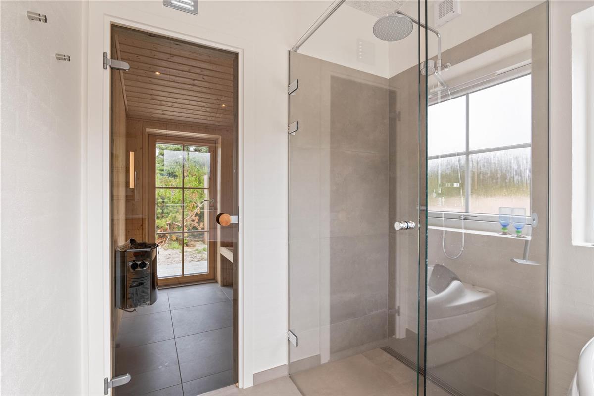A beautiful terrace surrounds the holiday home, perfect for using the gas barbecue to prepare delicious steaks. The terrace includes an outdoor shower (available April-November) ideal for washing off sandy feet after beach visits. With the North Sea just 450 metres away, there's no excuse not to take a dip. Adults can relax in the various loungers while children enjoy the swing set in the natural grounds. After a long beach walk, unwind in the private outdoor hot tub.