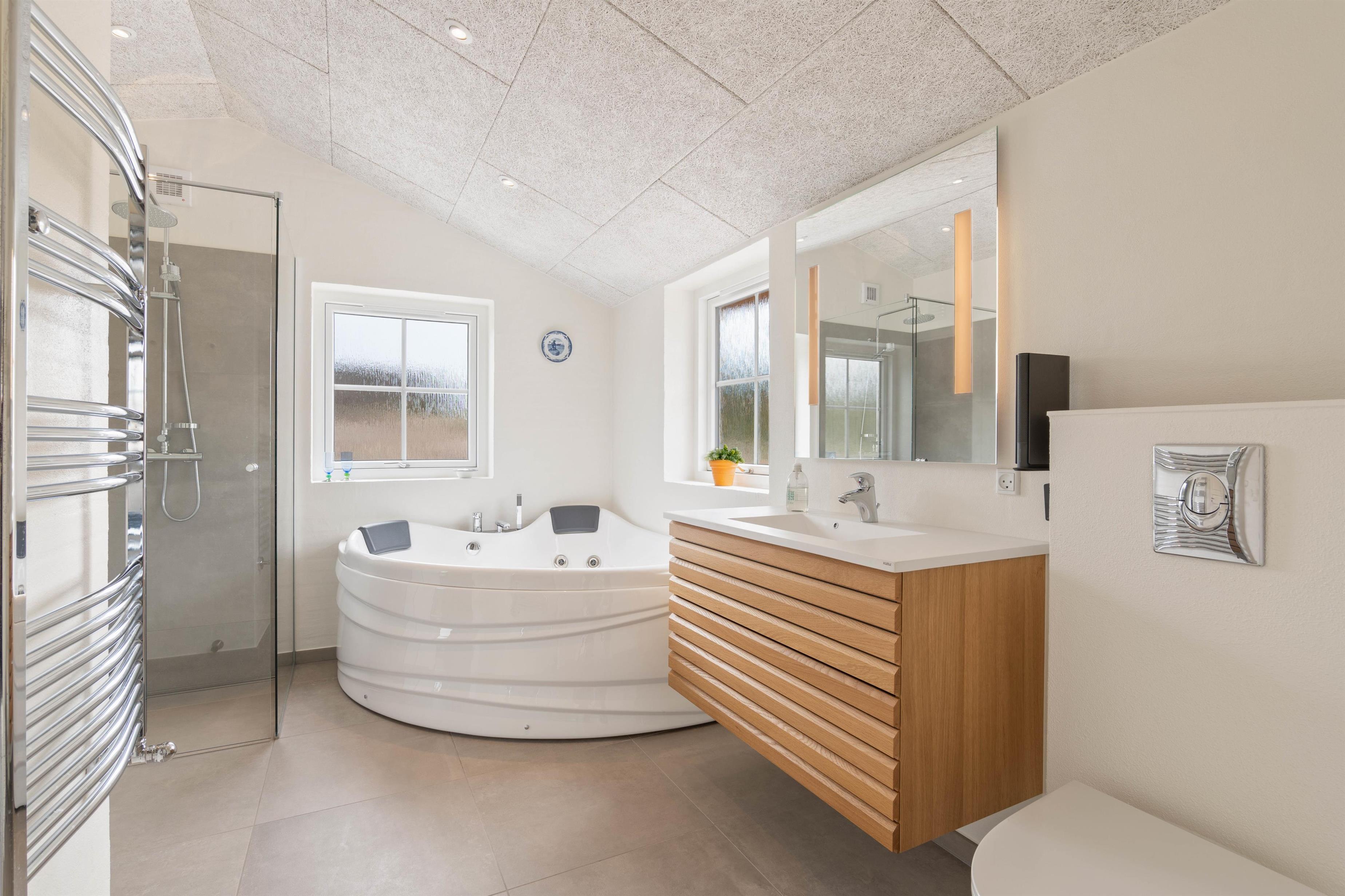 The holiday home features two bathrooms, ideal when two families are holidaying together, with each having their own facilities. Both bathrooms naturally include underfloor heating. For ultimate relaxation and rejuvenation, the holiday home offers both a whirlpool and sauna.