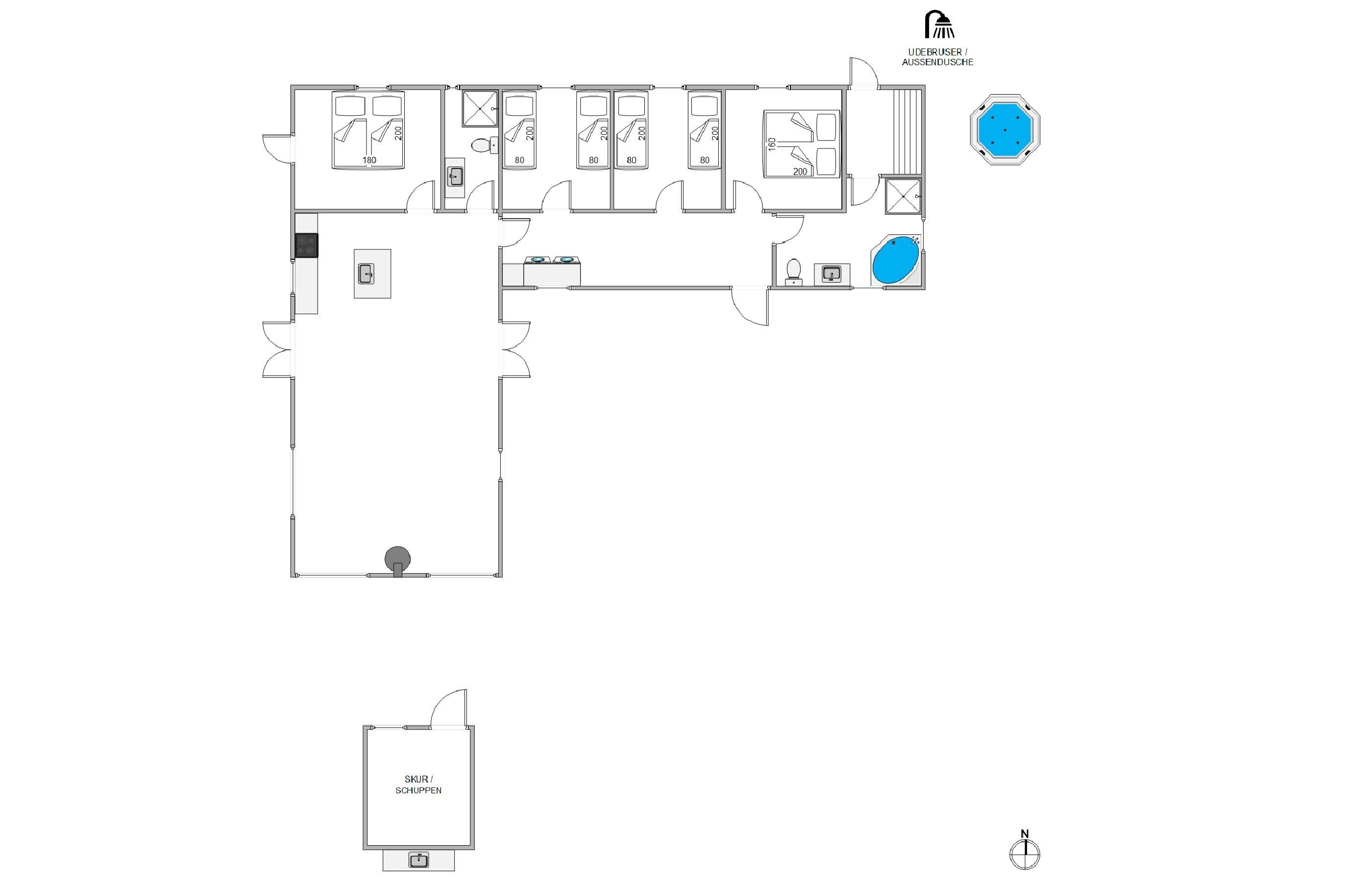 Additionally, the holiday home features an electric car charging point and an outdoor kitchen where you can prepare delicious meals in the open air. All in all, this is a holiday home offering abundant opportunities to create wonderful and unforgettable family memories.